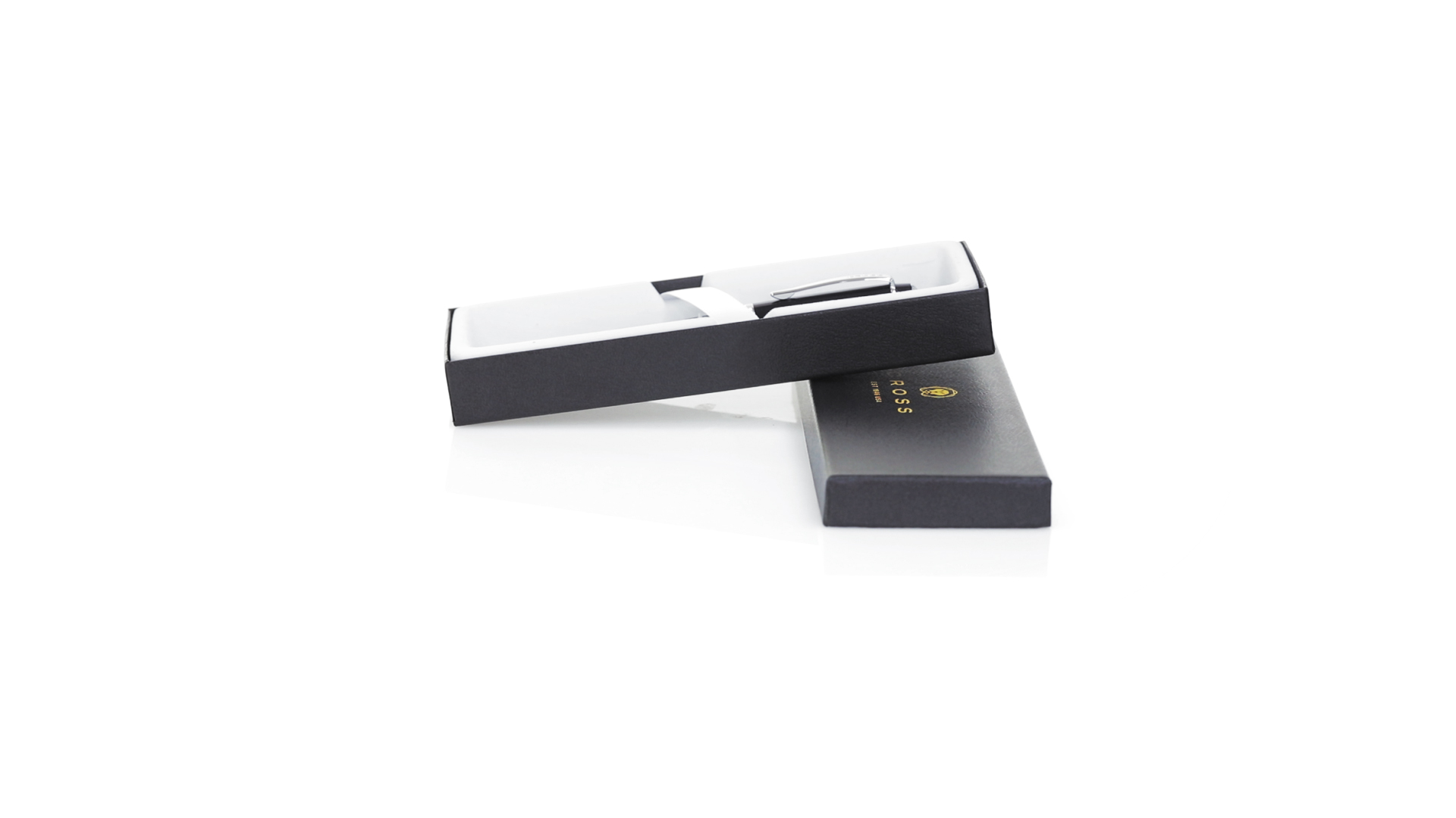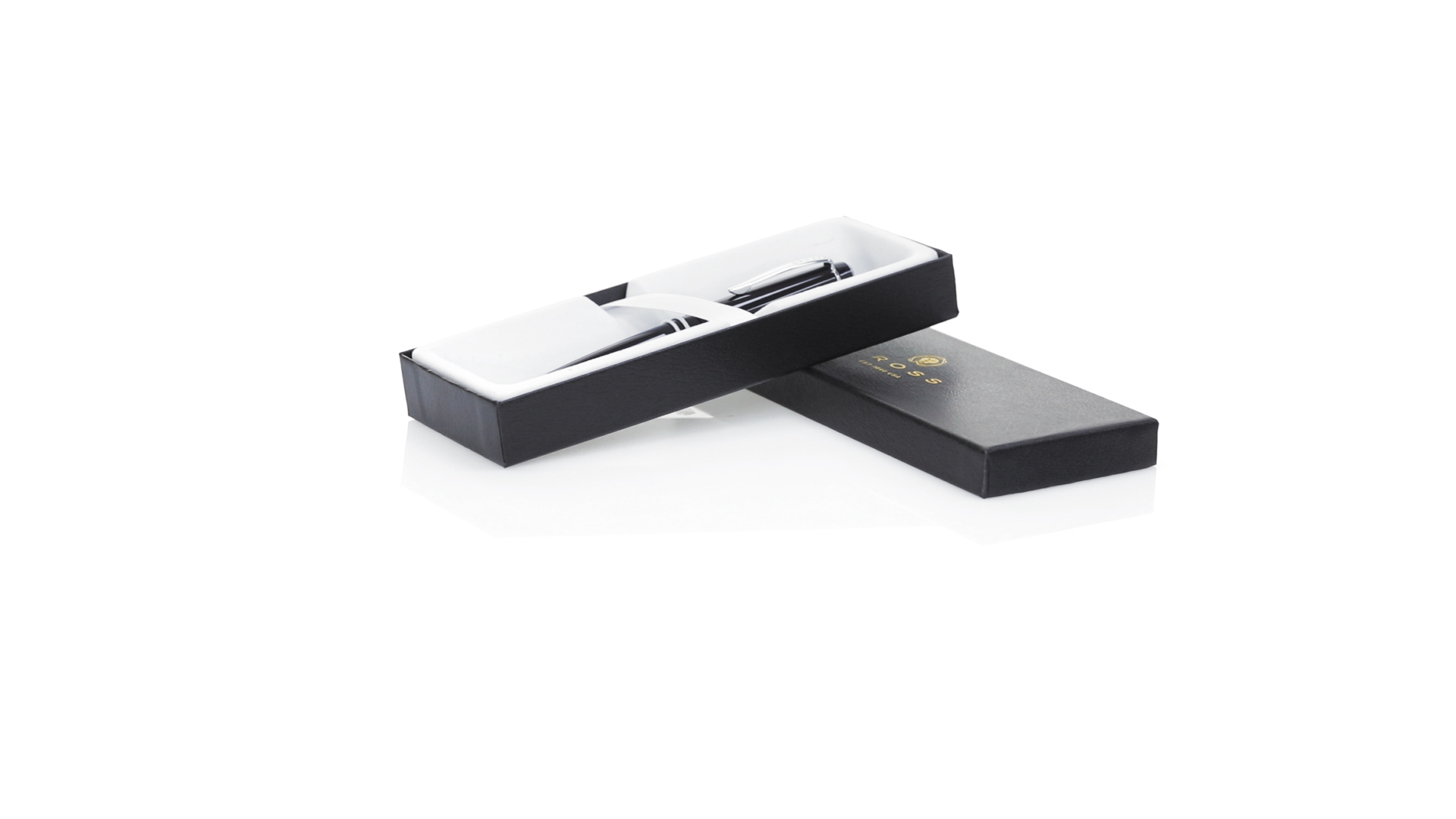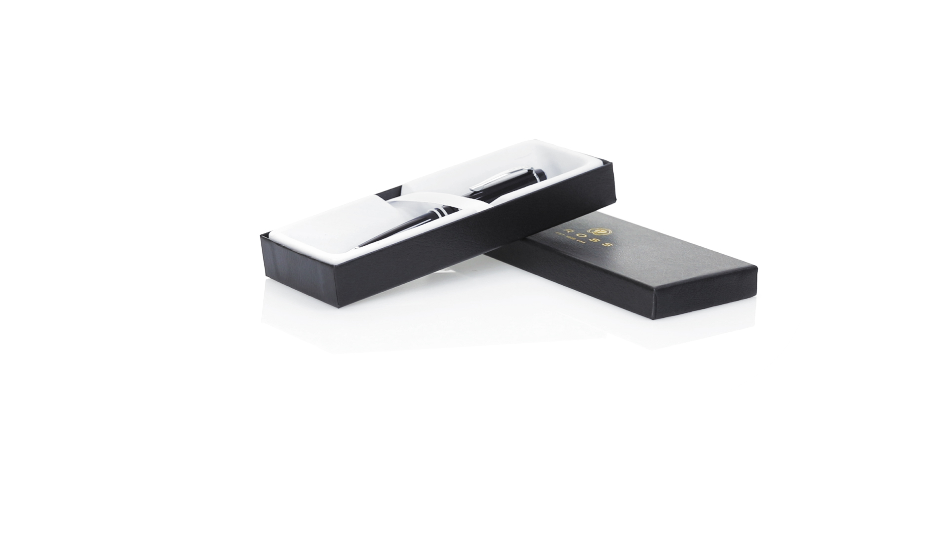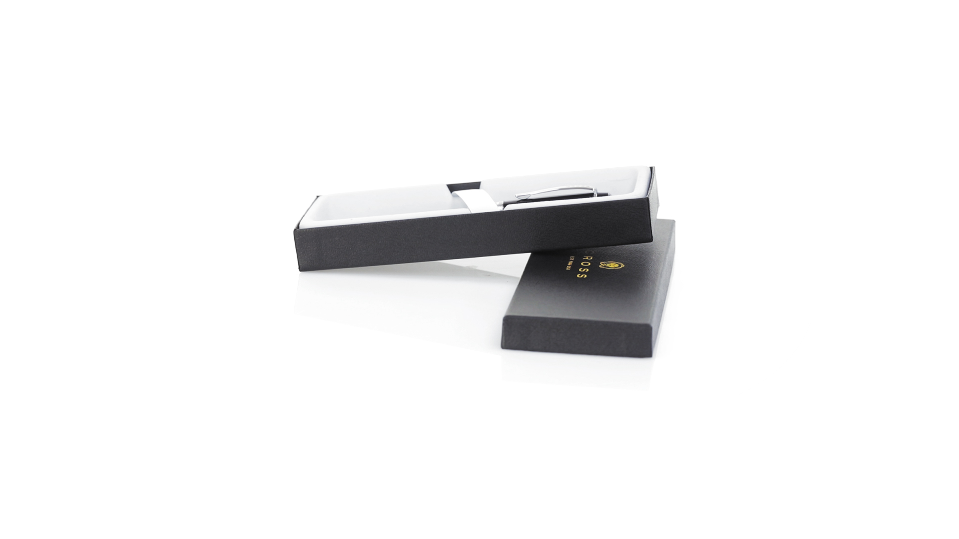 Kugelschreiber Cross Bailey Light, kombiniert ein hochglänzendes Harz mit einem polierten Chrom, metallisches Finish. Jumbo-Patrone in schwarzer Tinte. Präsentiert in einem eleganten, schwarzen Etui mit Markenlogo und weichem Wildlederfutter.