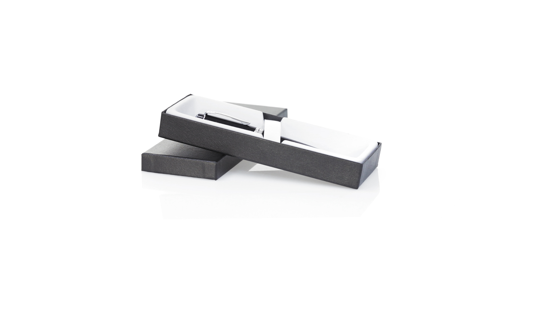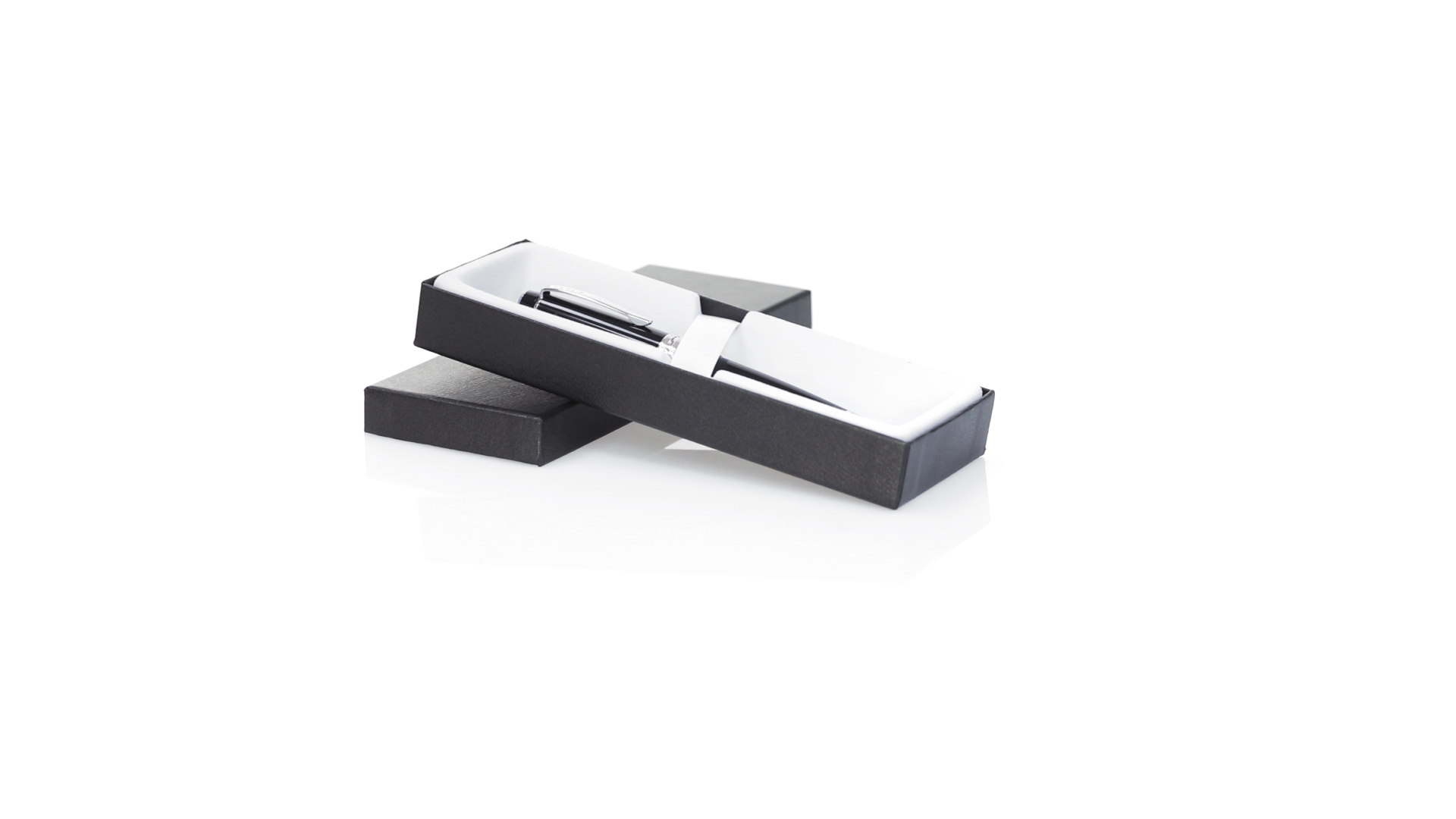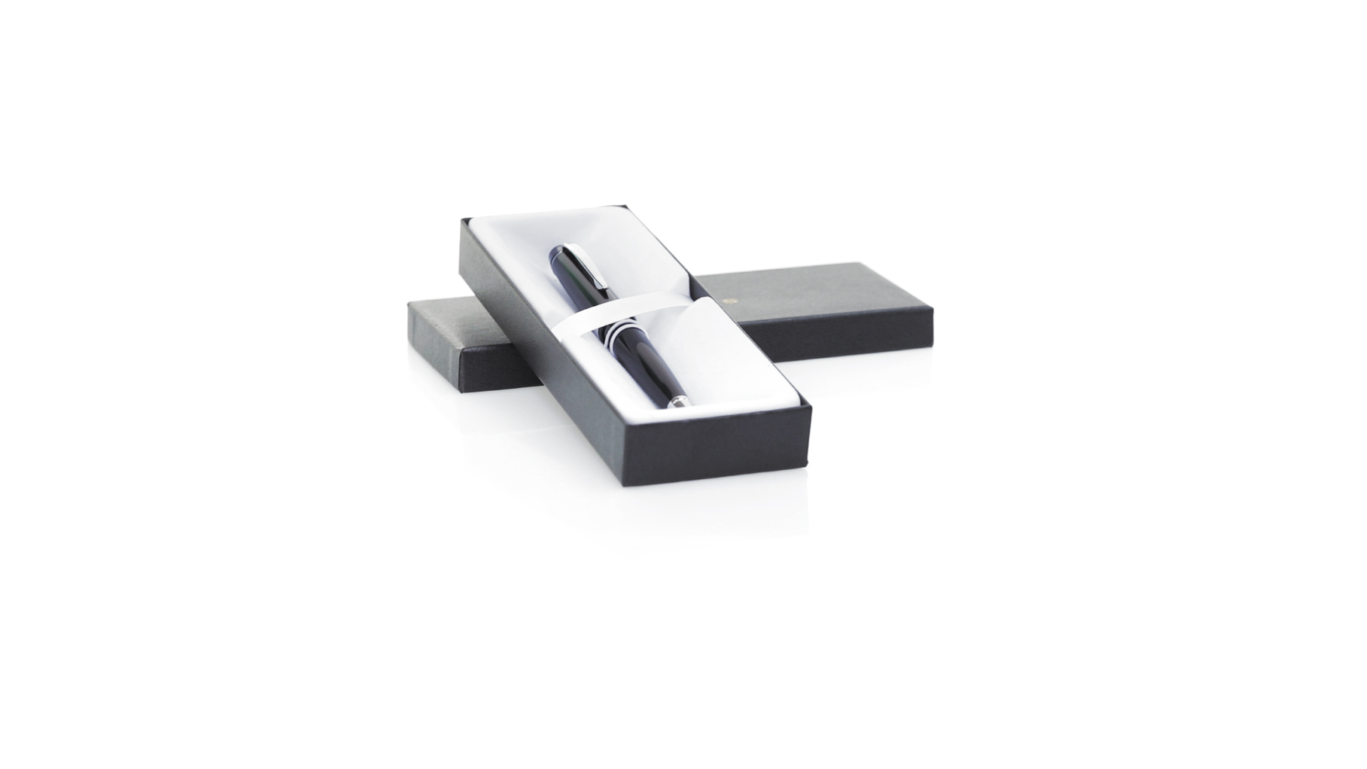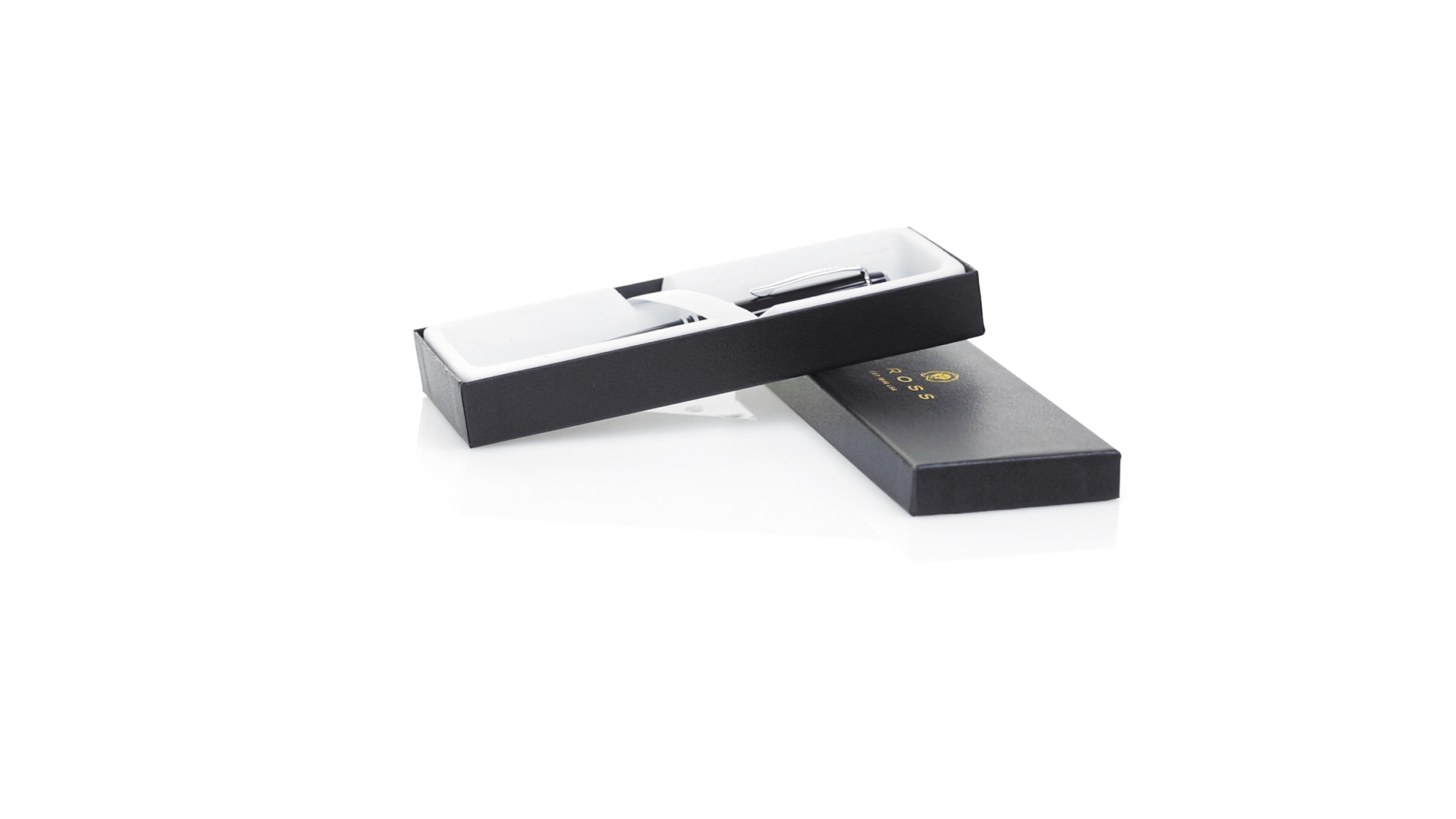Kugelschreiber Cross Bailey Light, kombiniert ein hochglänzendes Harz mit einem polierten Chrom, metallisches Finish. Jumbo-Patrone in schwarzer Tinte. Präsentiert in einem eleganten, schwarzen Etui mit Markenlogo und weichem Wildlederfutter.