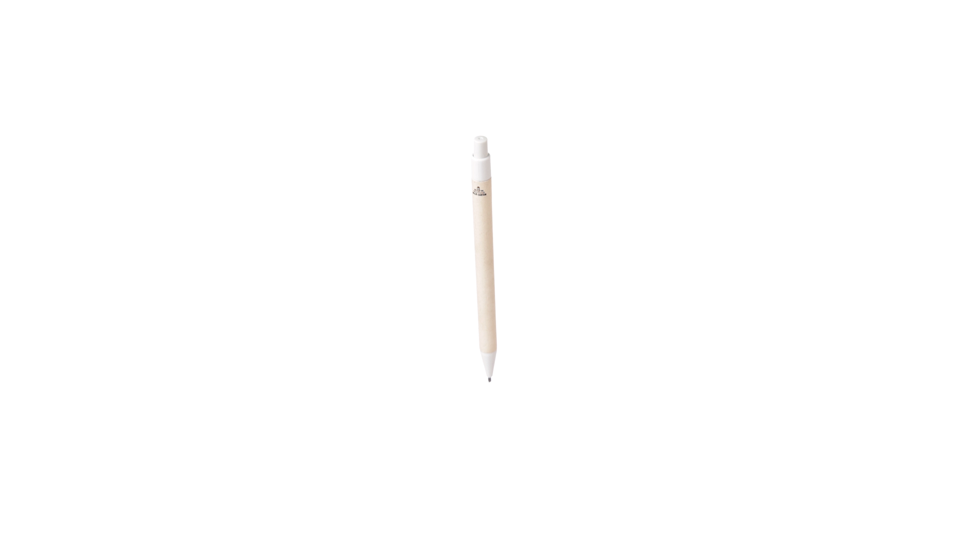 Linie Natur Kugelschreiber mit einem Gehäuse aus recycelten Milchkartons und weissen Beschlägen. Druckknopfmechanik und blauschreibende Tinte, mit dem unverwechselbaren Zeichen der recycelten Milchkartons auf dem Gehäuse.Milchkartons bestehen meist aus Karon und Aluminium. Währen des Recyclingprozesses werden die verschiedenen Verpackungsmaterialien für die Wiederverwendung und Wiederverwertung getrennt und tragen so zu den unendlichen Möglichkeiten der Kreislaufwirtschaft bei. Dieses Material ist bekannt für seine hohe Wiederverwertbarkeit sowie für sein geringes Gewicht und seine Widerstandsfähigkeit.