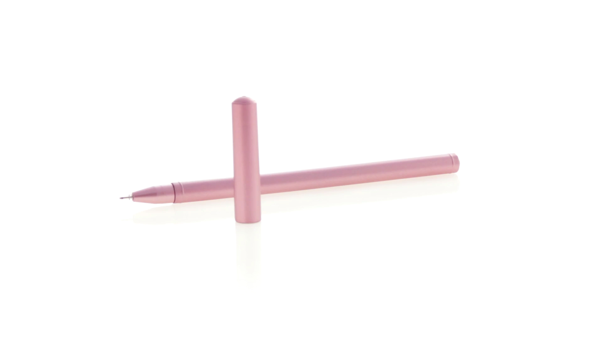 Kugelschreiber mit Kappe und Gel-Tinte. In eleganter matter Metall-Ausführung. Erhältlich in den Farben Gold, Silber und Roségold. Jumbo-Patrone mit blauer Tinte.