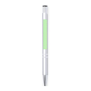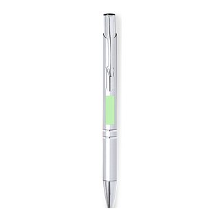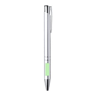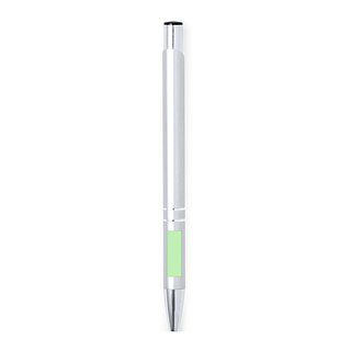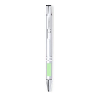 Origineller Kugelschreiber mit Druckknopfmechanismus in elegantem zweifarbigen Design. Gestanzter Aluminiumschaft mit glatter Oberfläche in verschiedenen Farben. Origineller Clip, Ringe und Spitze in Silber. Mit Jumbo-Mine und blauer Tinte.