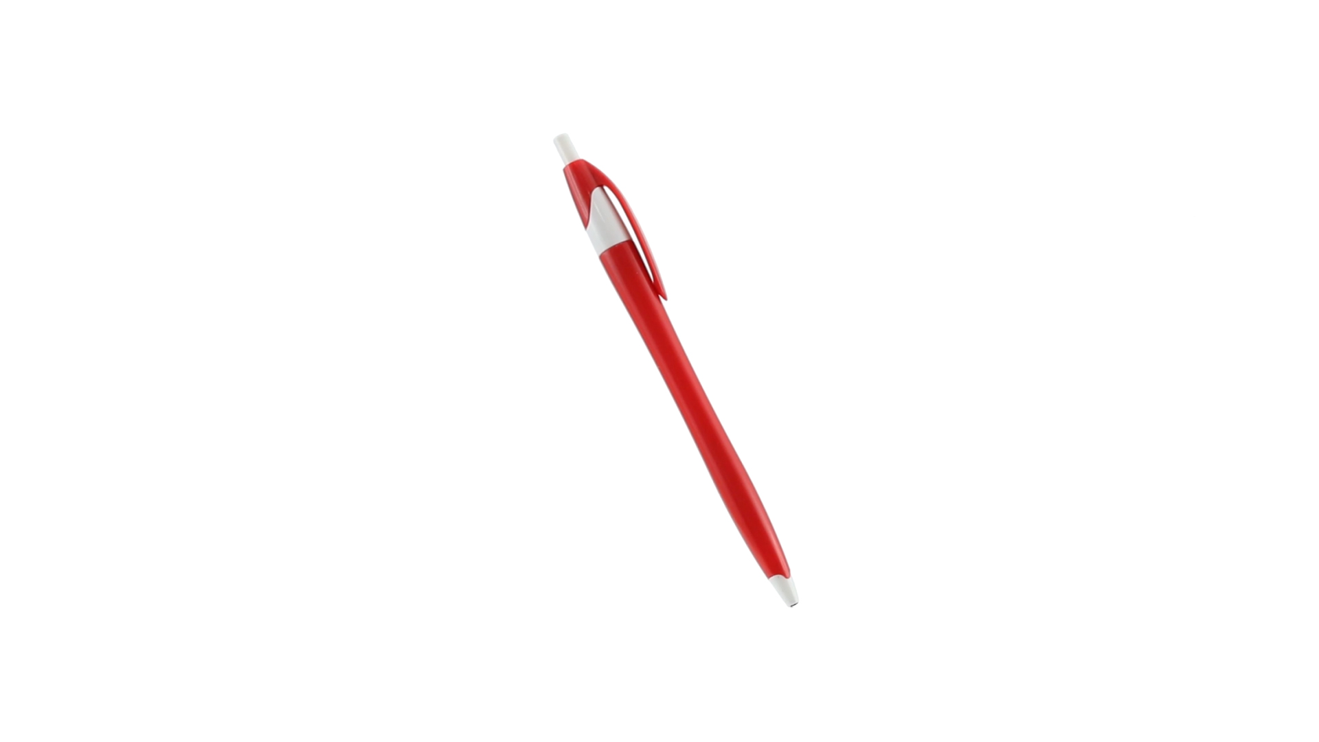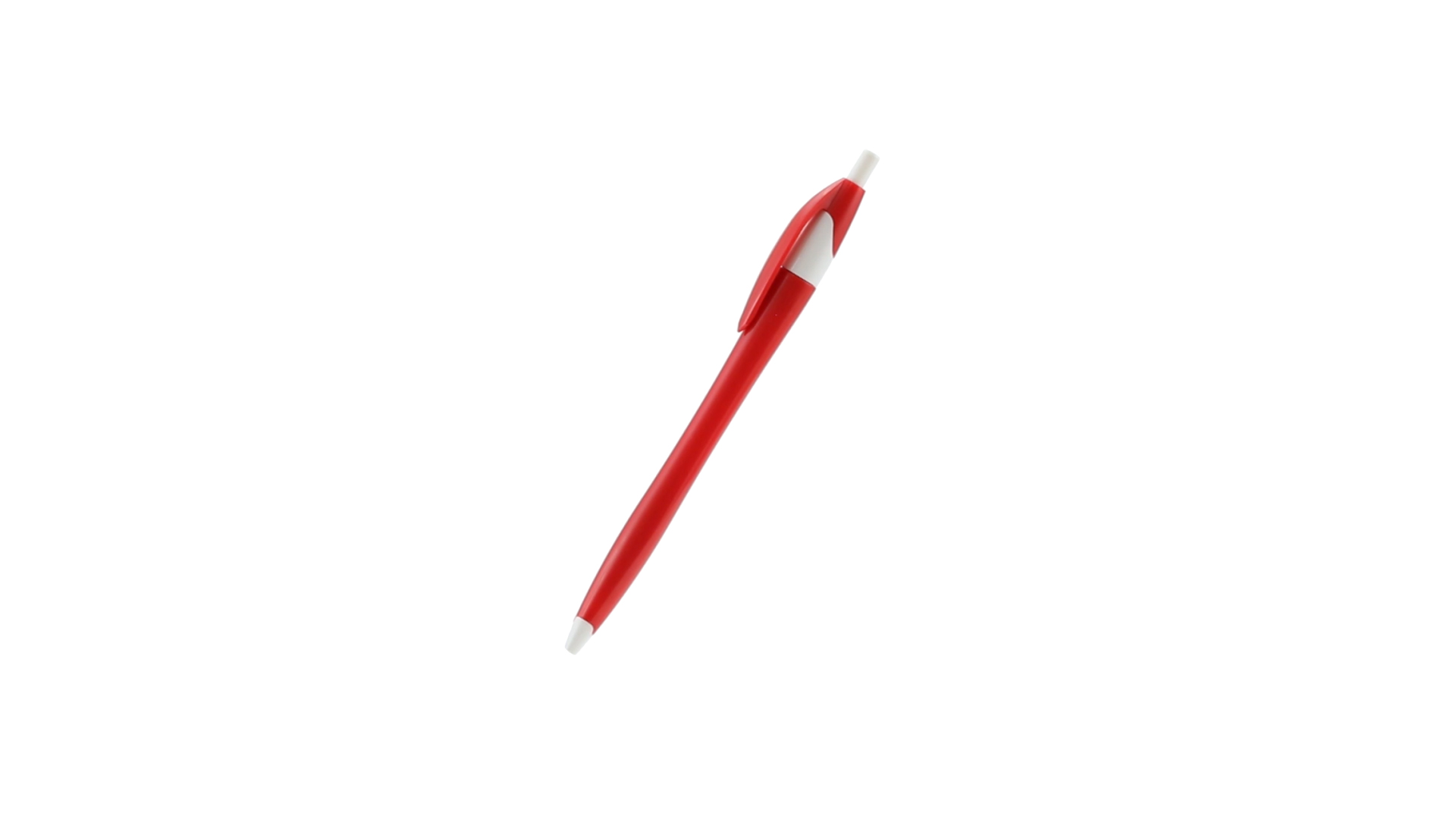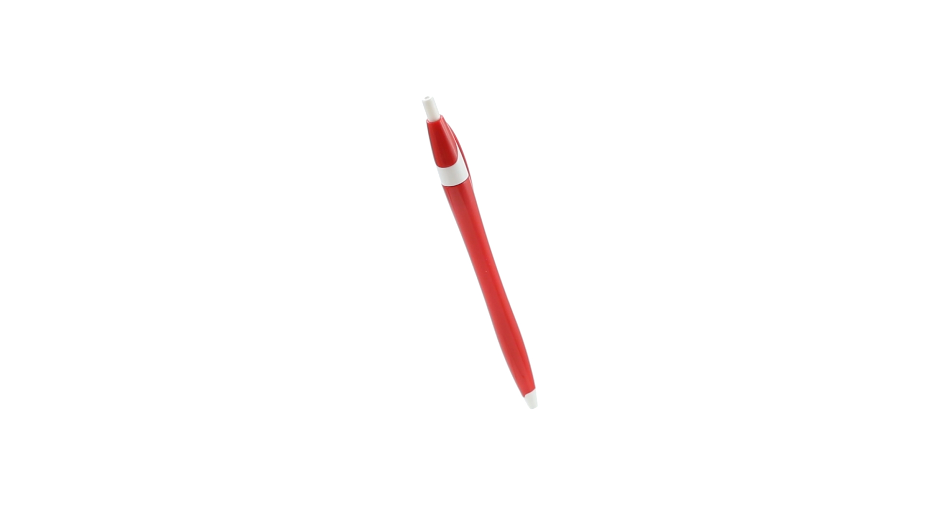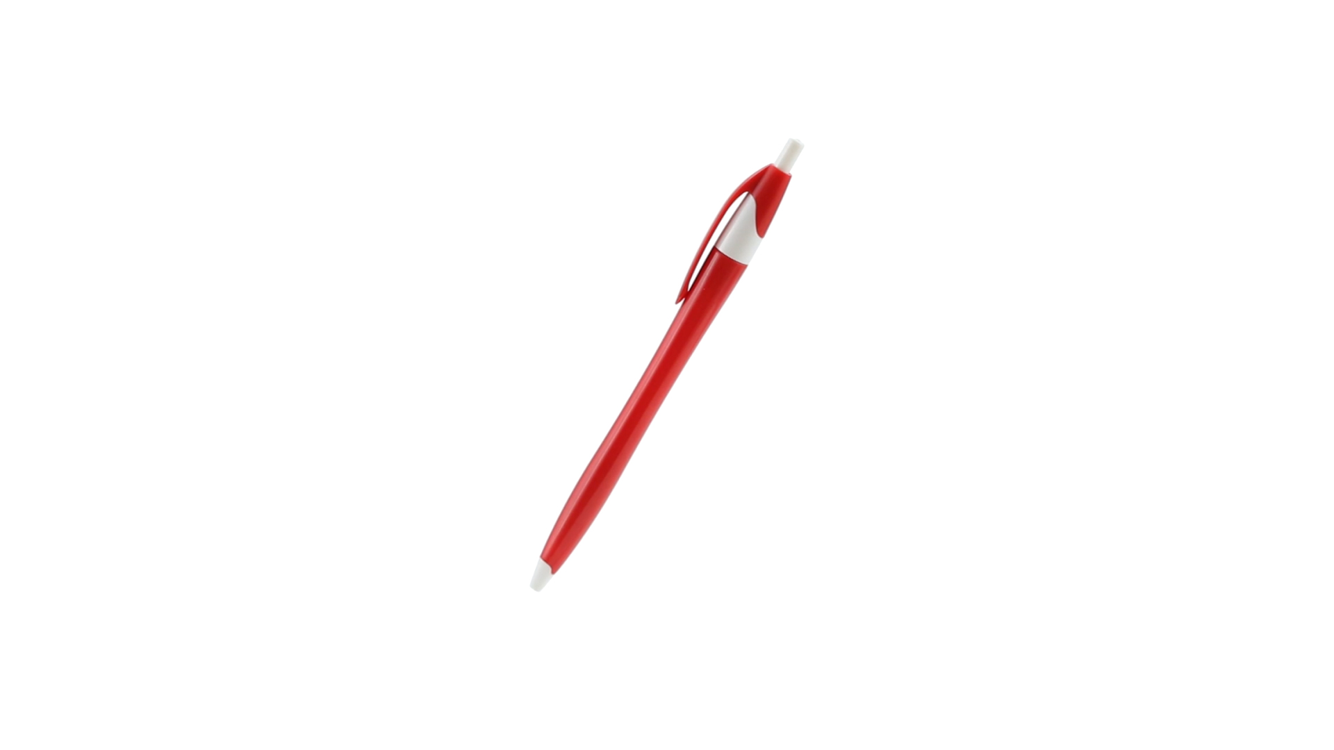 Druck-Kugelschreiber mit zweifarbigem Design und geschwungenem Körper in fröhlichen kräftigen Farben. Mit farblich passendem Clip und blauer Tinte.