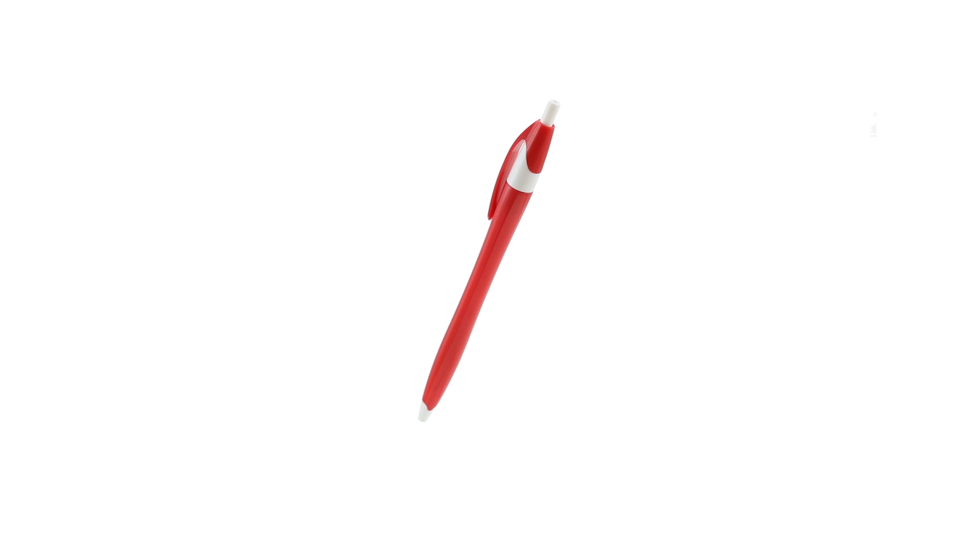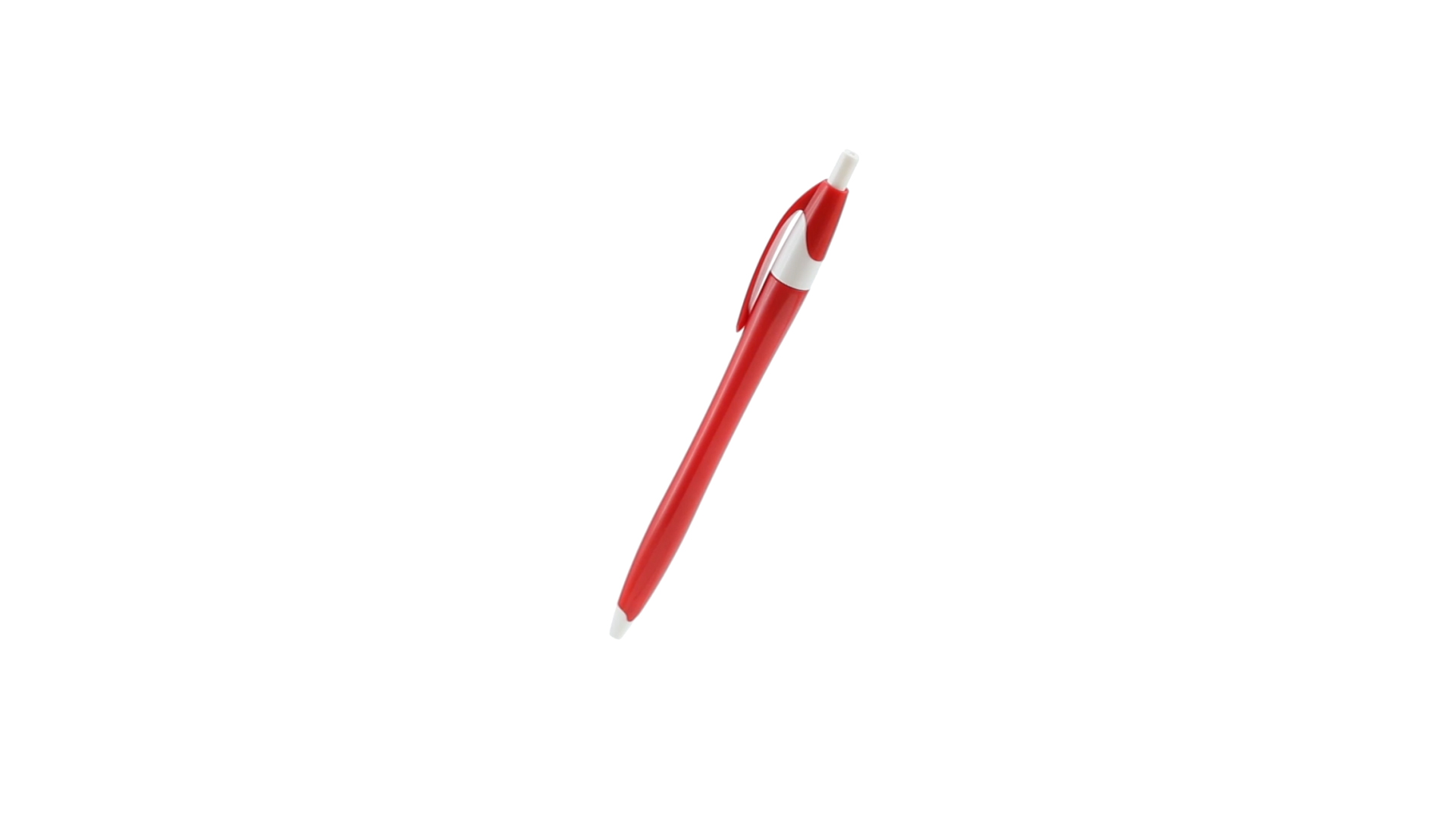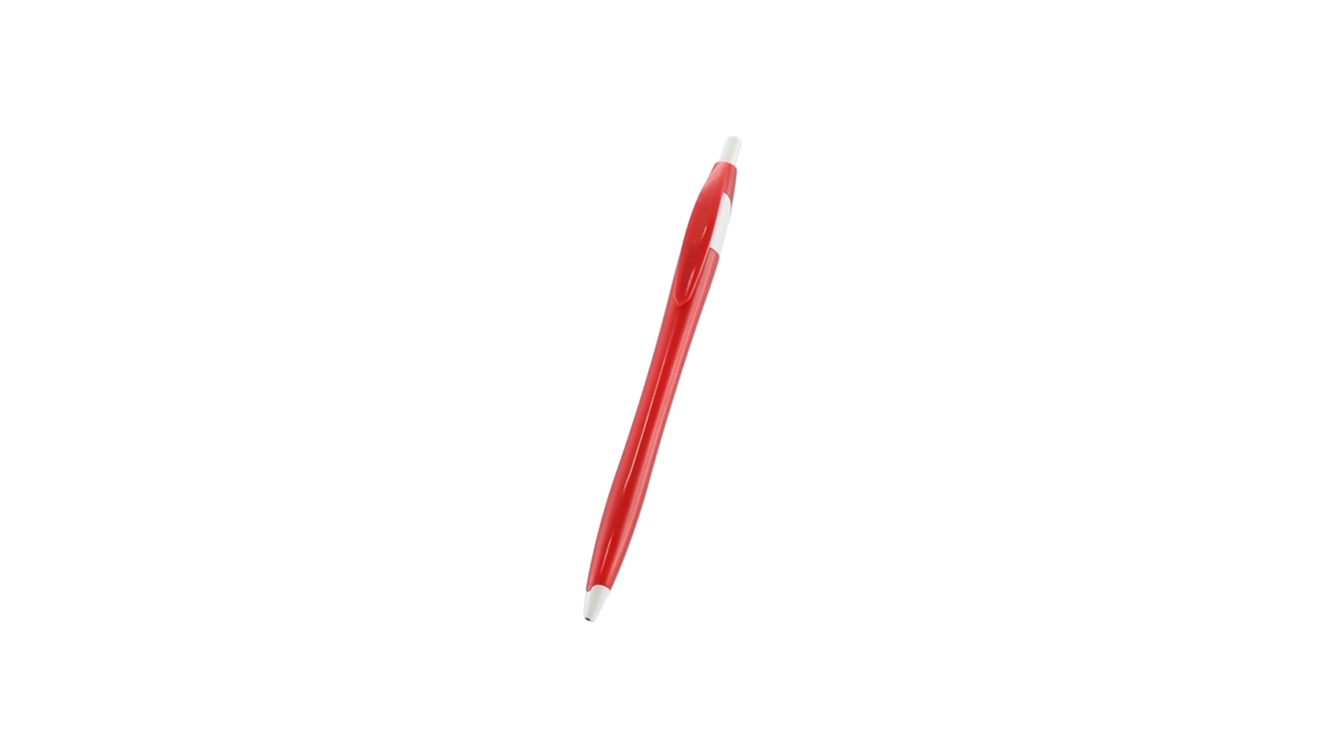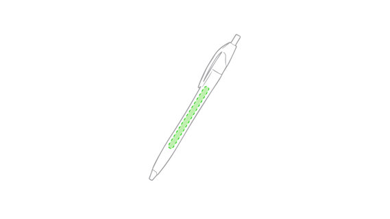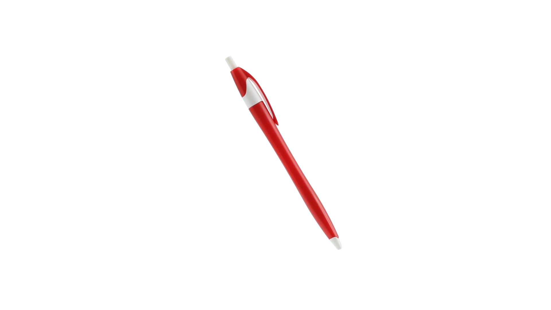 Druck-Kugelschreiber mit zweifarbigem Design und geschwungenem Körper in fröhlichen kräftigen Farben. Mit farblich passendem Clip und blauer Tinte.