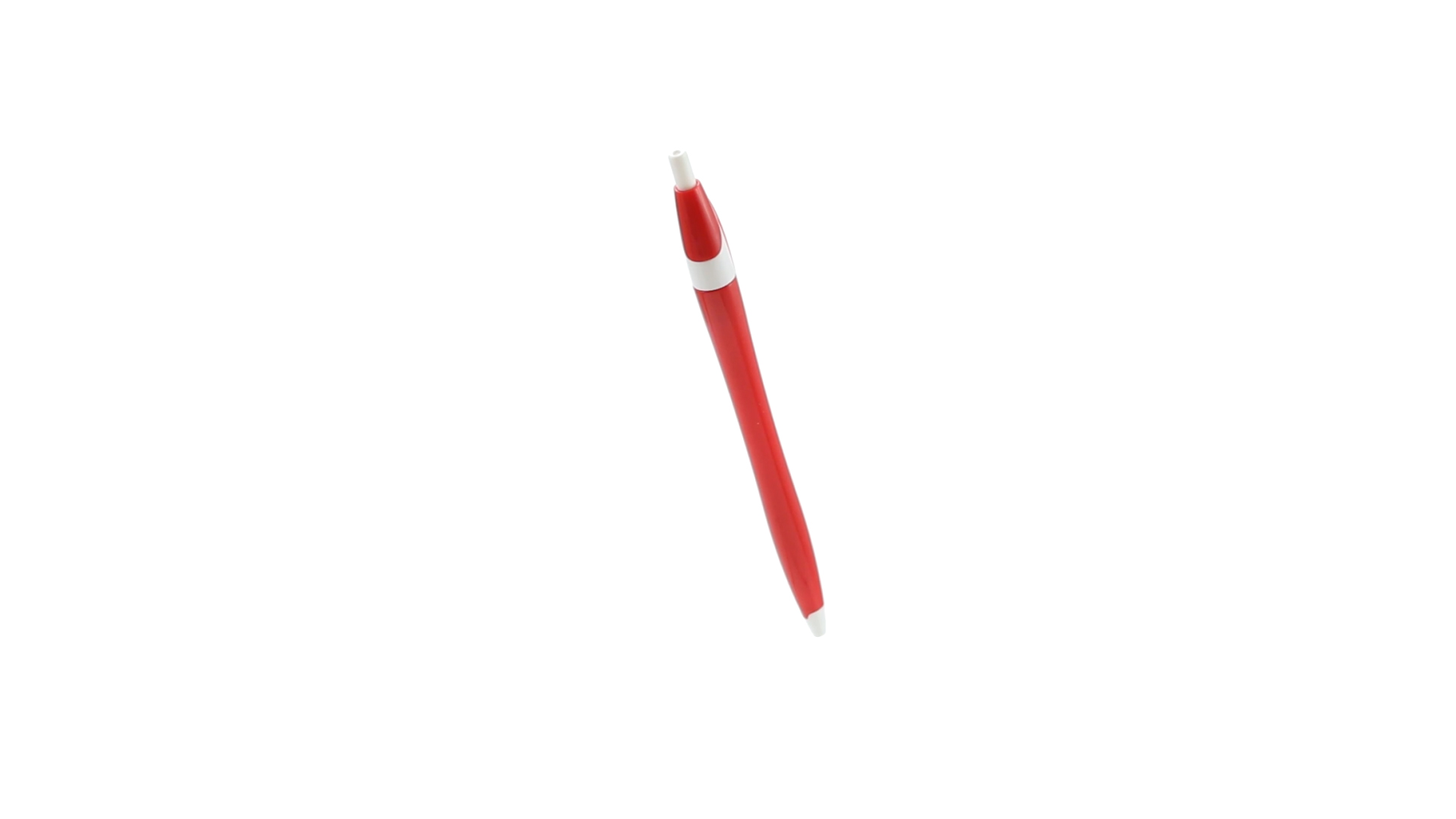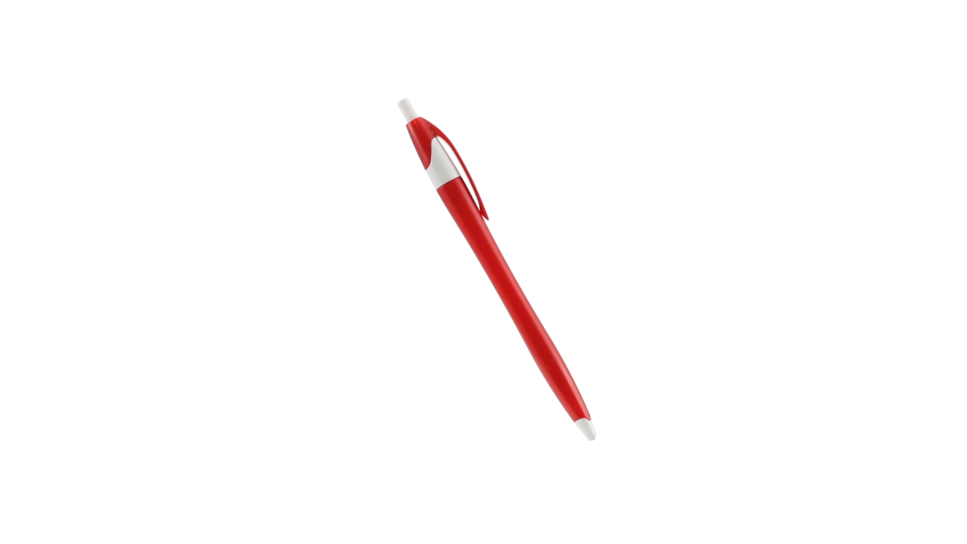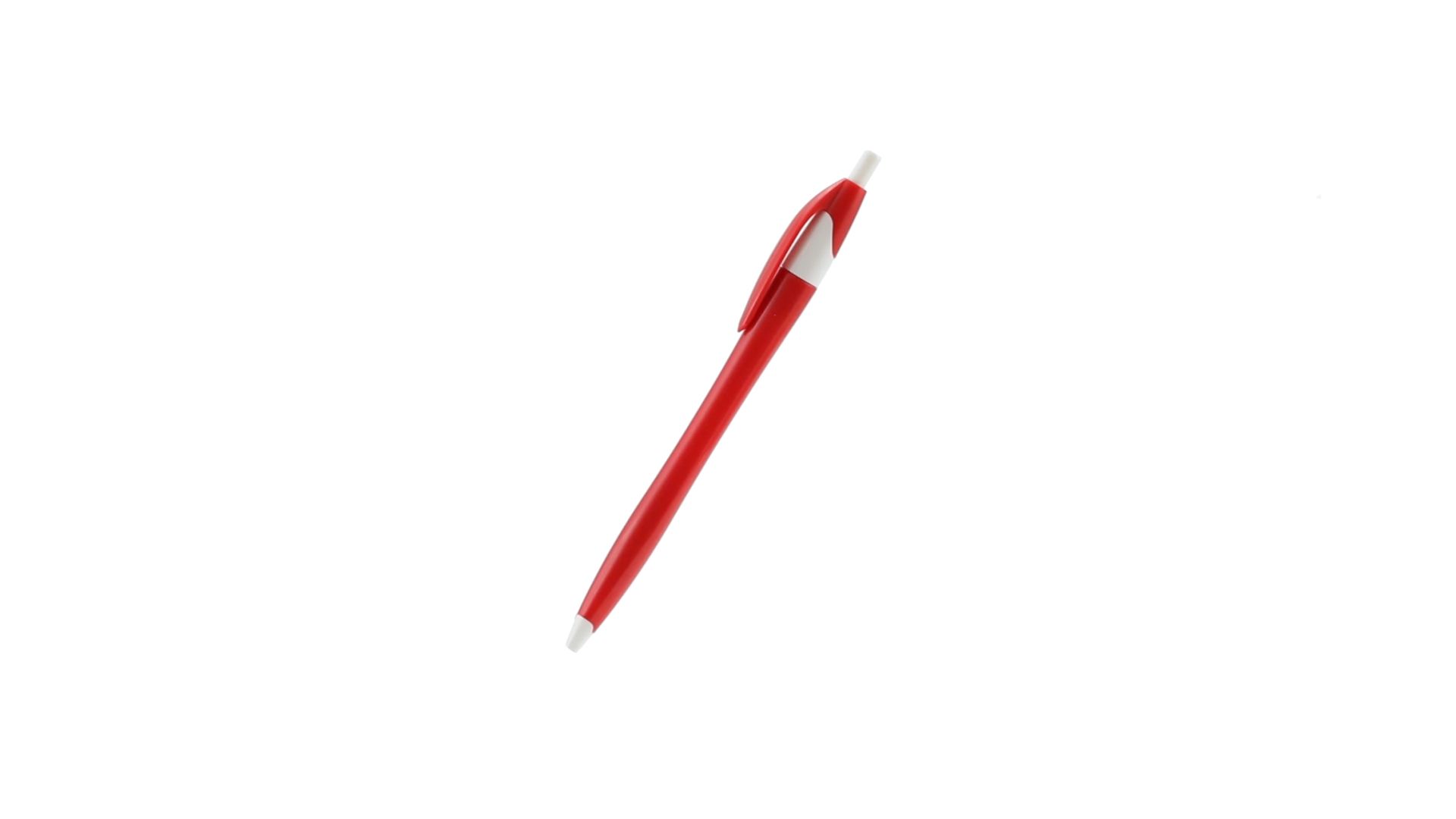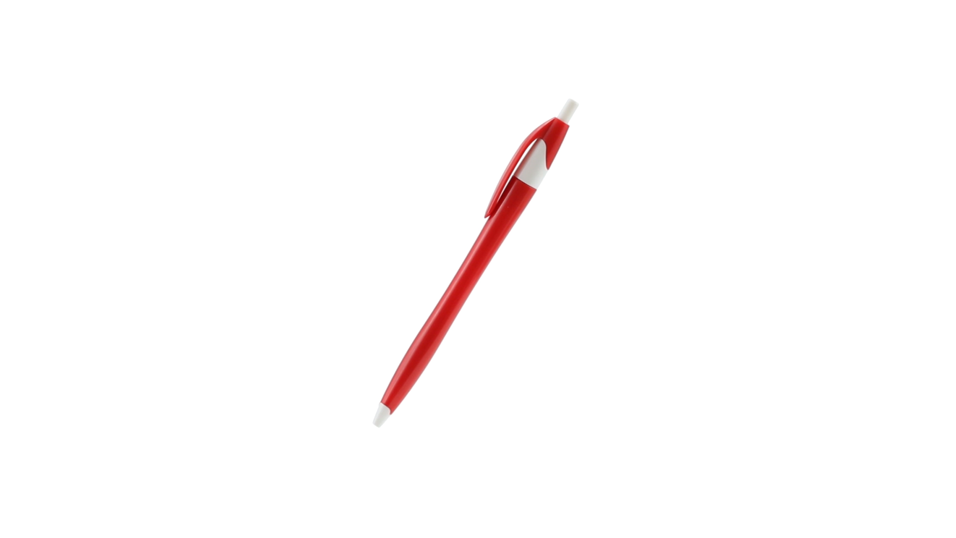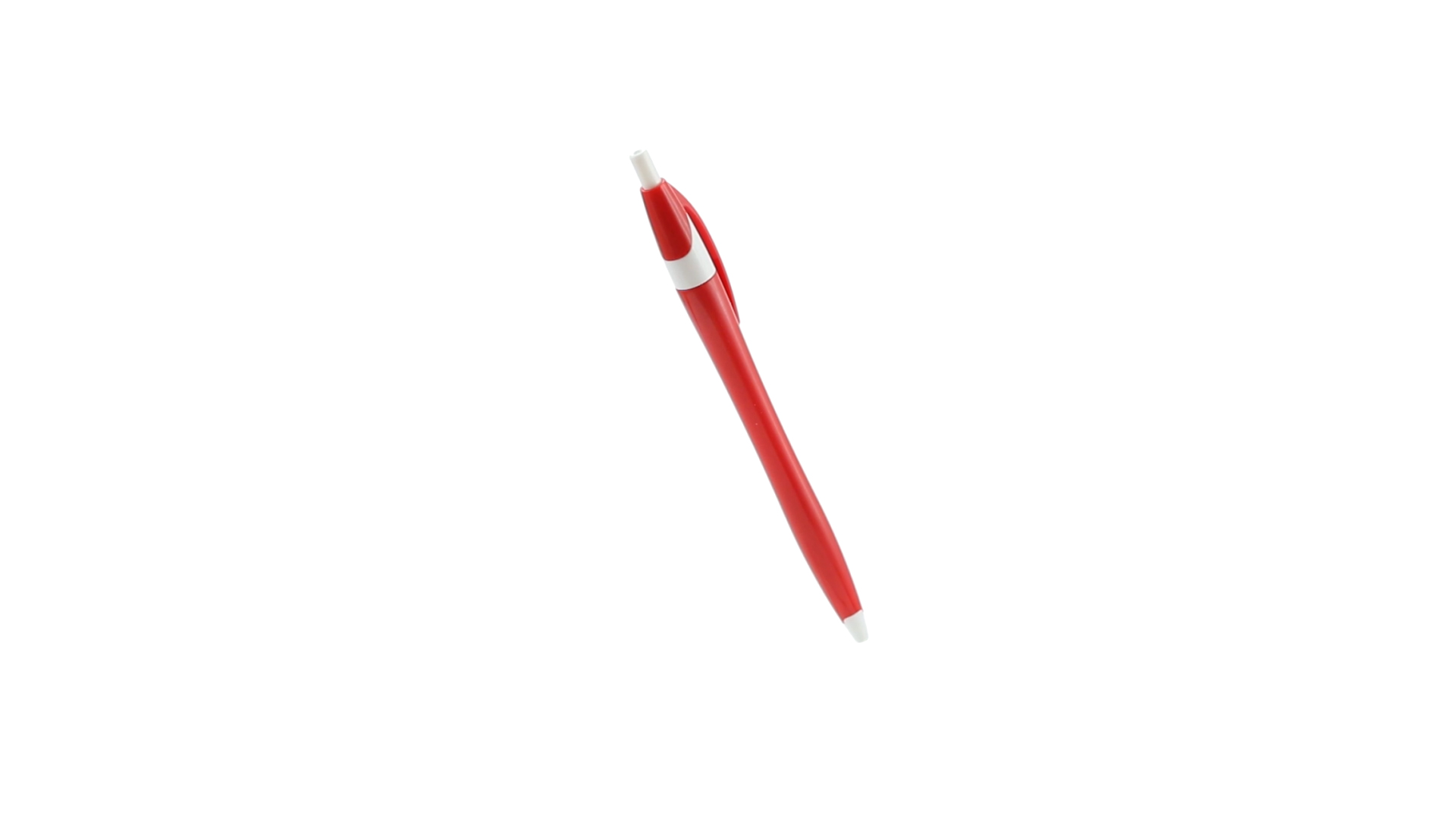 Druck-Kugelschreiber mit zweifarbigem Design und geschwungenem Körper in fröhlichen kräftigen Farben. Mit farblich passendem Clip und blauer Tinte.