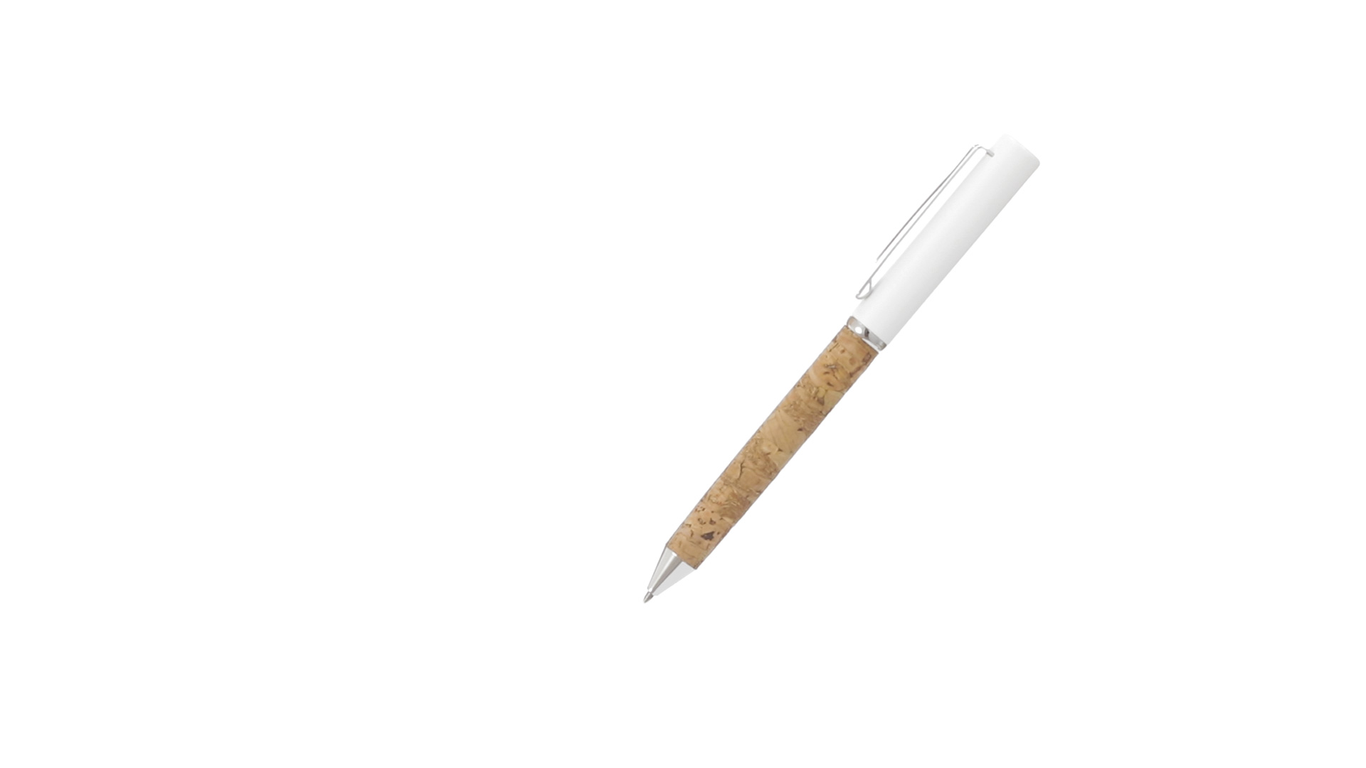 Nature Line Kugelschreiber in einer Kombination aus Naturkork und Metall. Mit Original-Metallclip in verchromter Ausführung, passender Spitze und Ring. Oberteil in weiss, mit Drehmechanismus und blauer Tinte. Präsentiert in individueller Ökodesign-Box.
