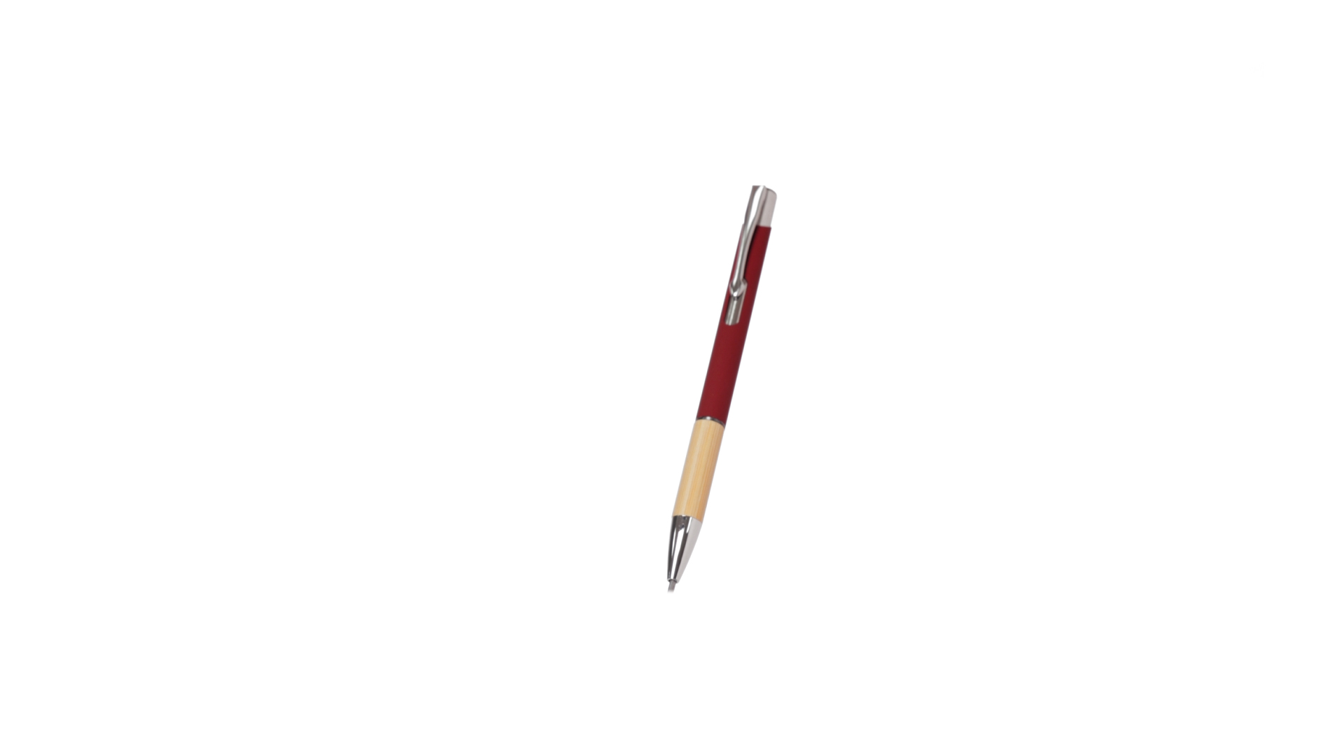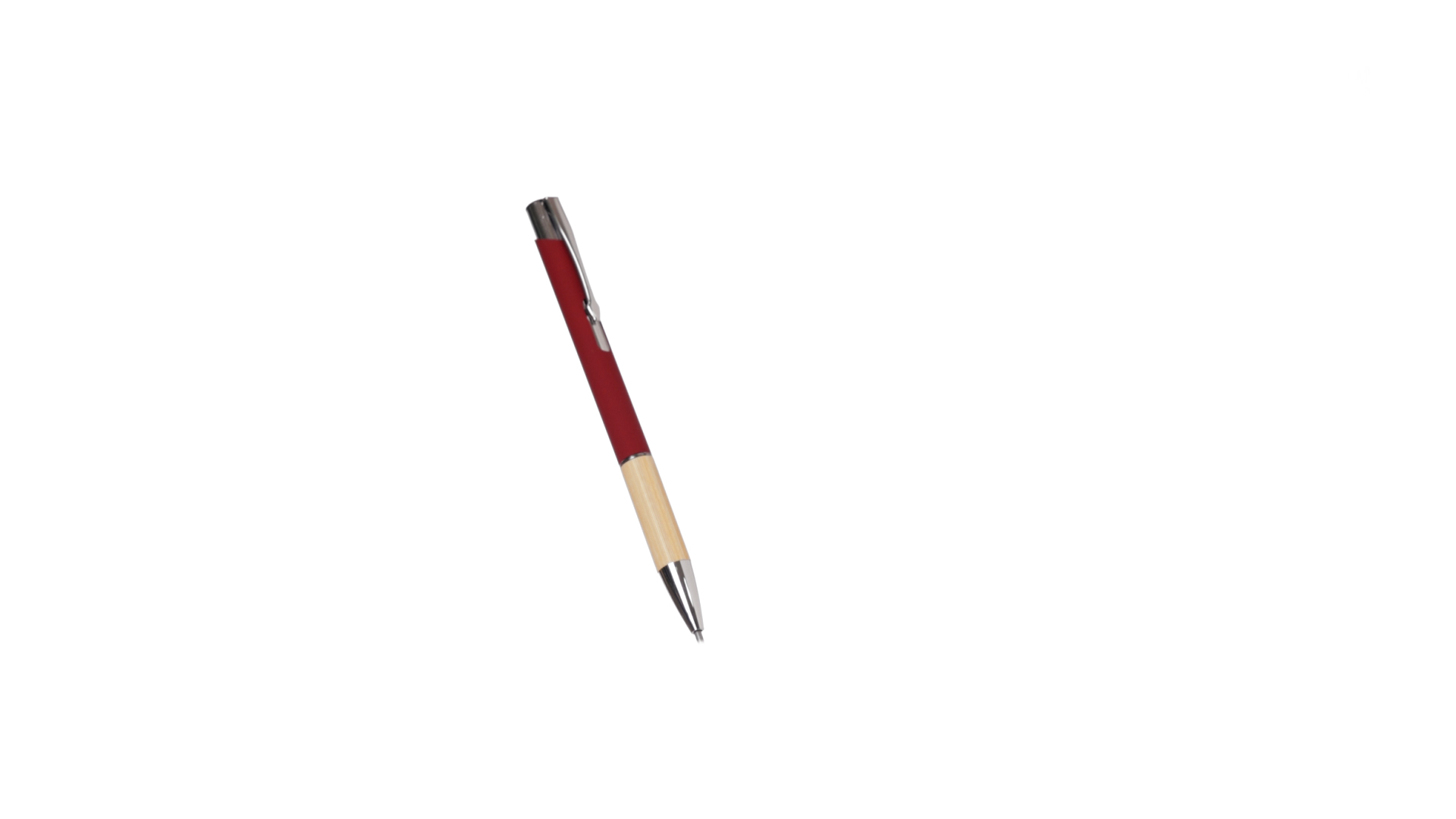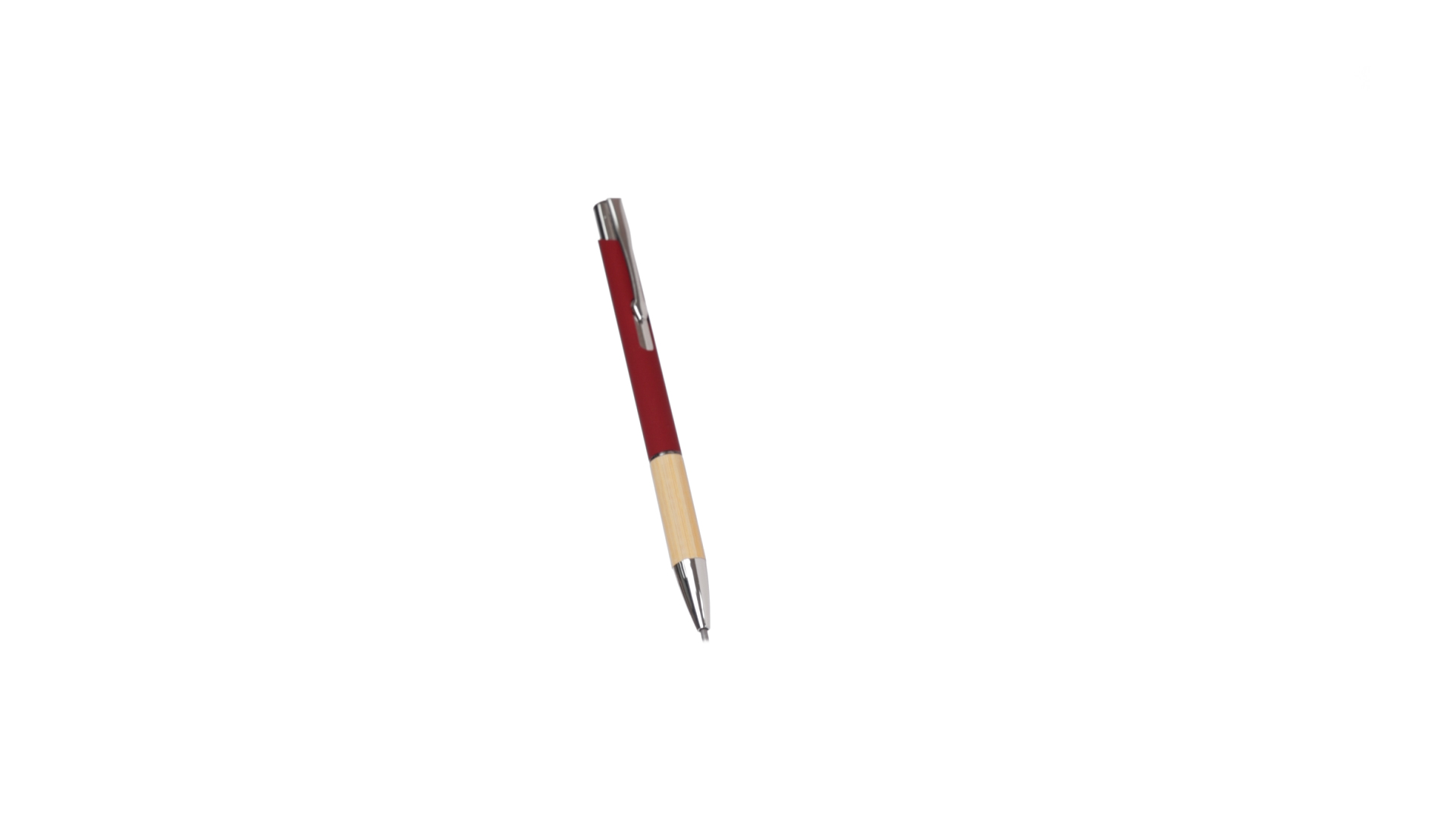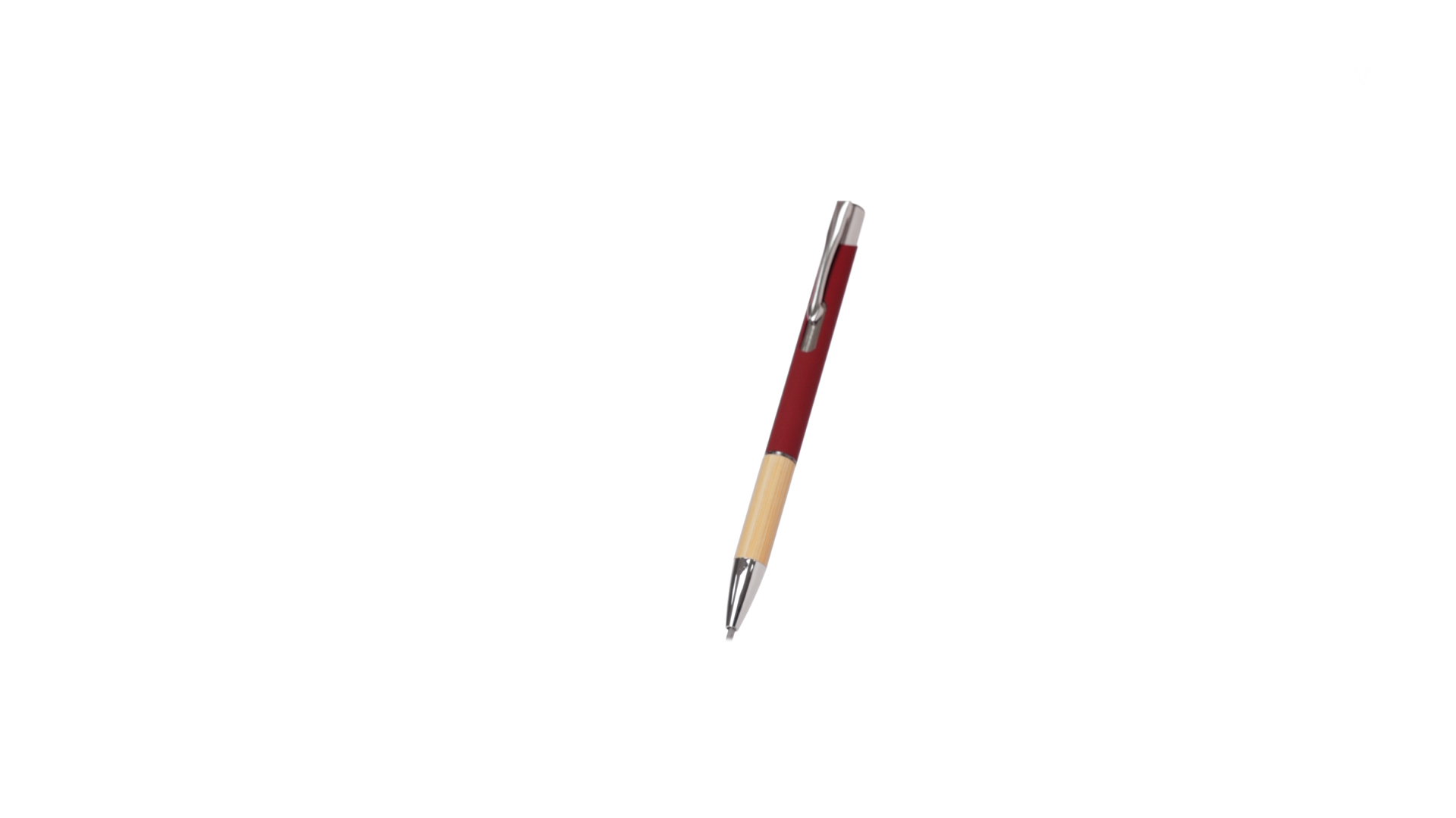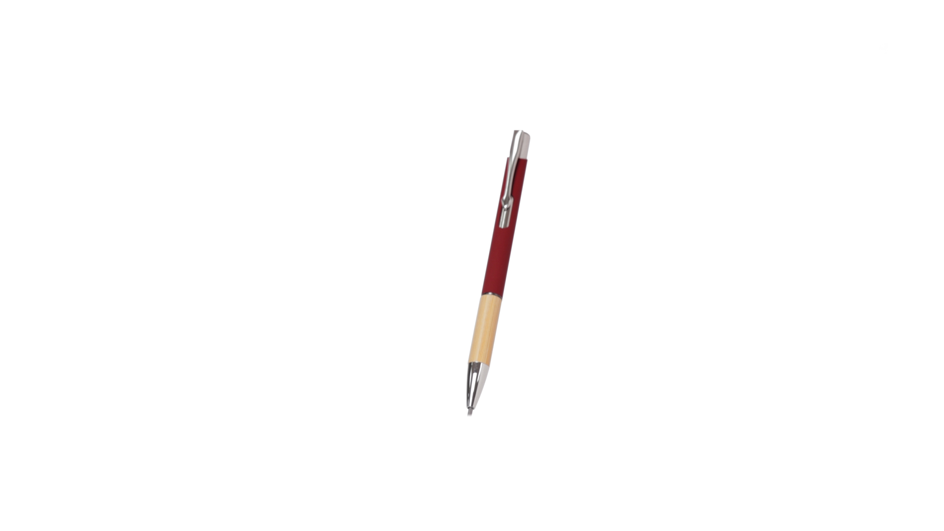 Eleganter Kugelschreiber mit Naturlinie und Druckknopfmechanik. Strapazierfähiger Aluminiumschaft mit gummierter Oberfläche und Bambusgriff, mit Schaft in einer breiten Palette von unverwechselbaren Farben. Metallclip, Druckknopfmechanik und blaue Tinte.