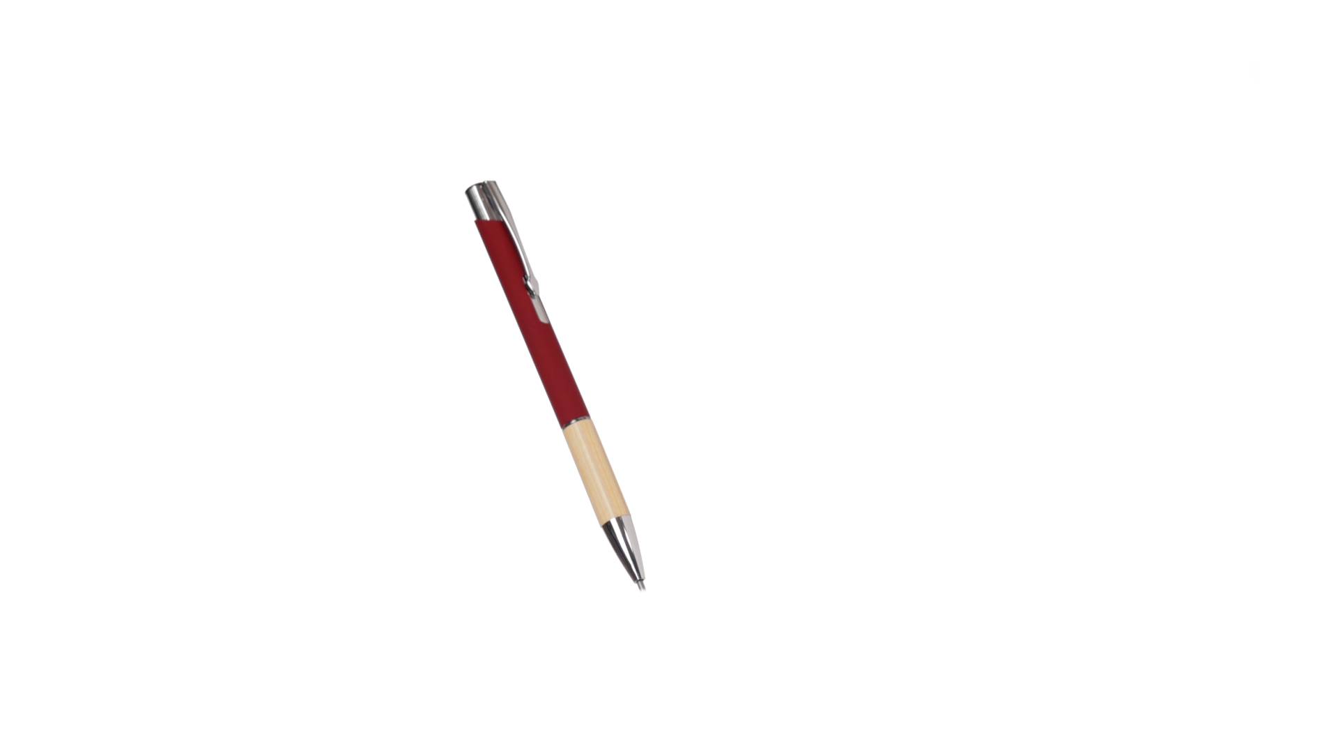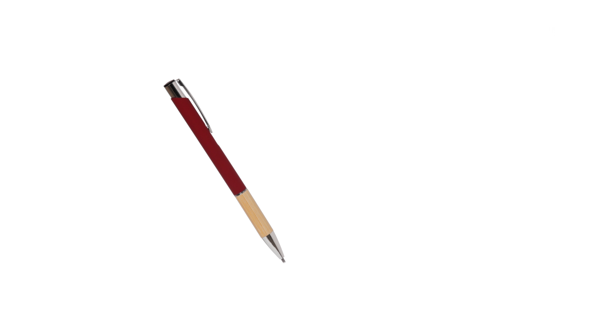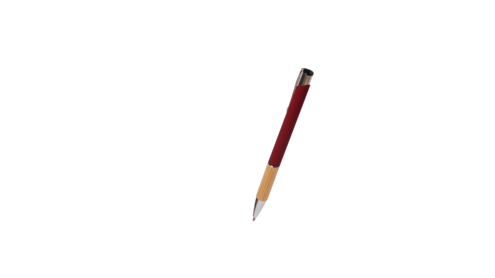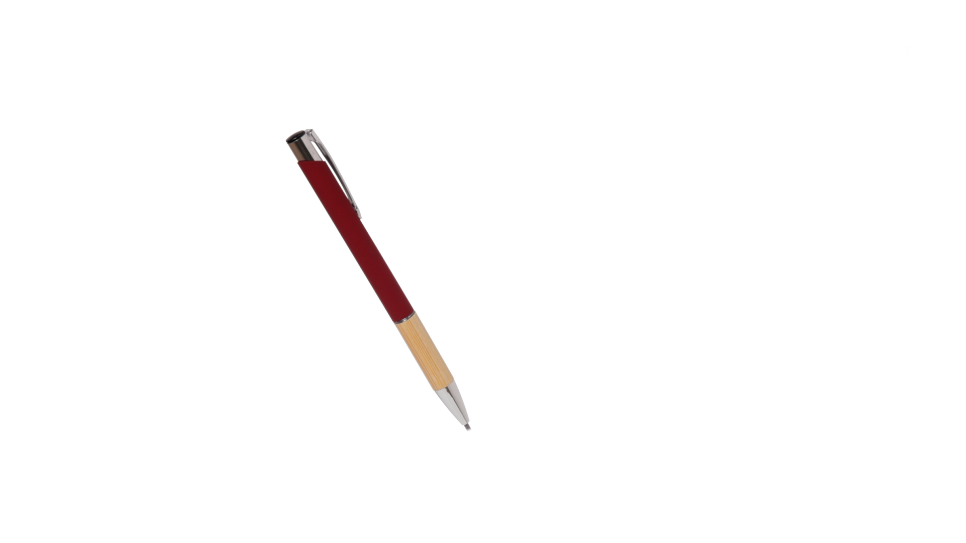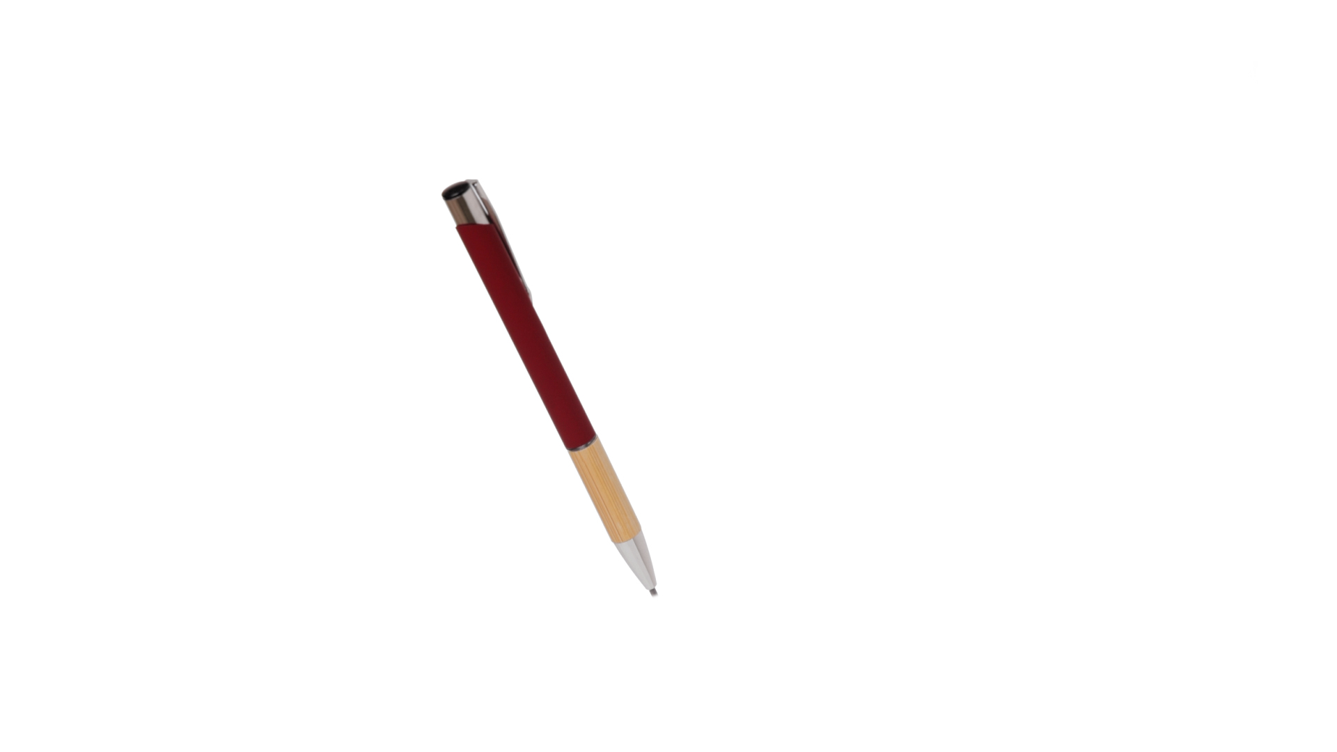 Eleganter Kugelschreiber mit Naturlinie und Druckknopfmechanik. Strapazierfähiger Aluminiumschaft mit gummierter Oberfläche und Bambusgriff, mit Schaft in einer breiten Palette von unverwechselbaren Farben. Metallclip, Druckknopfmechanik und blaue Tinte.