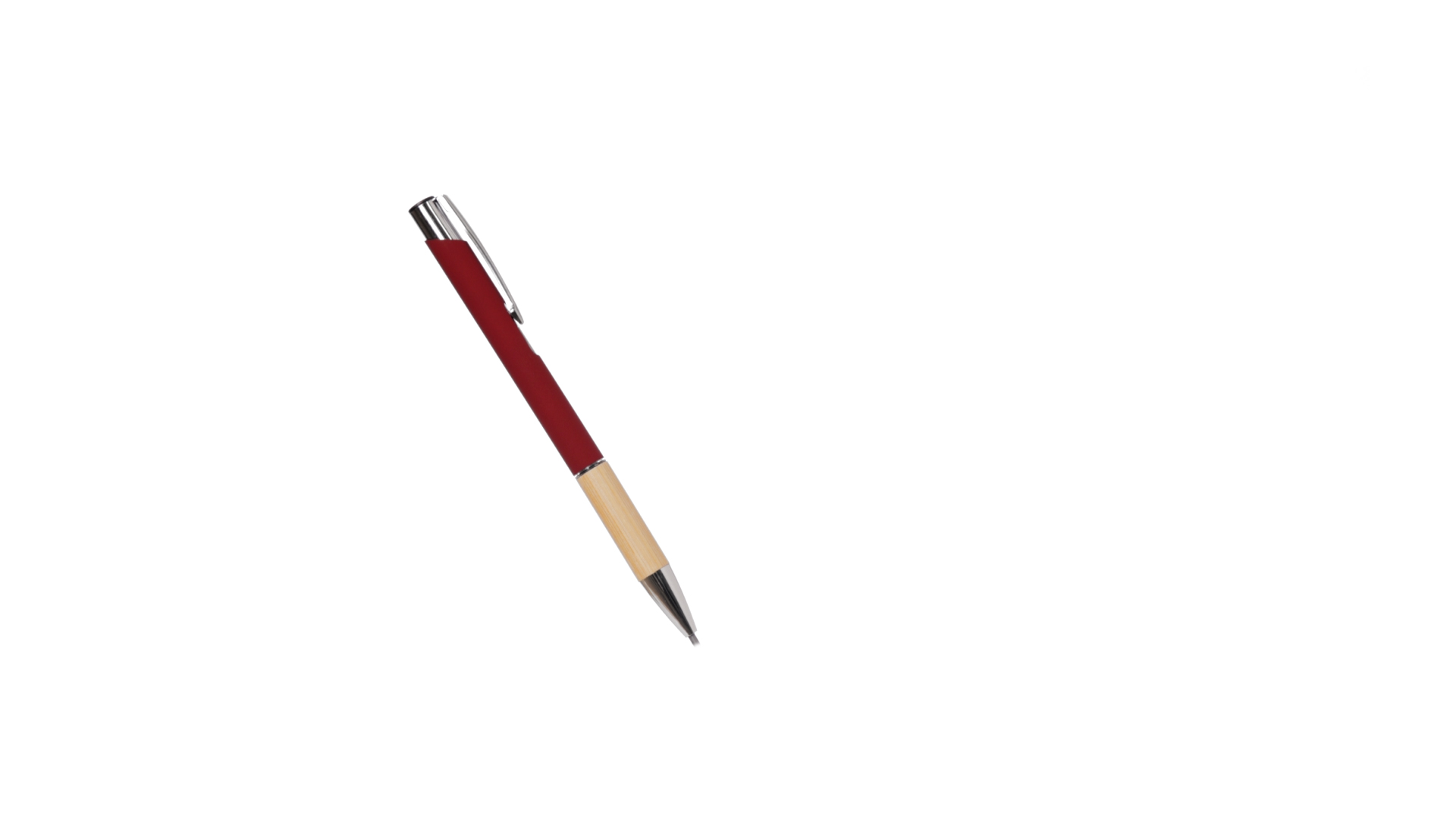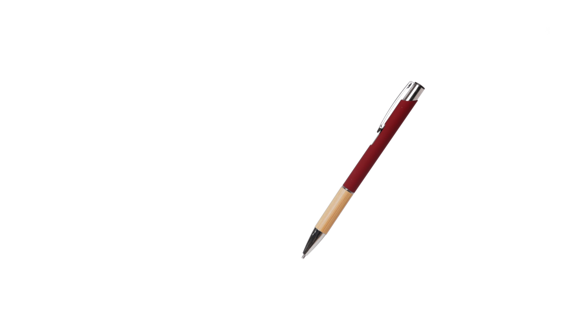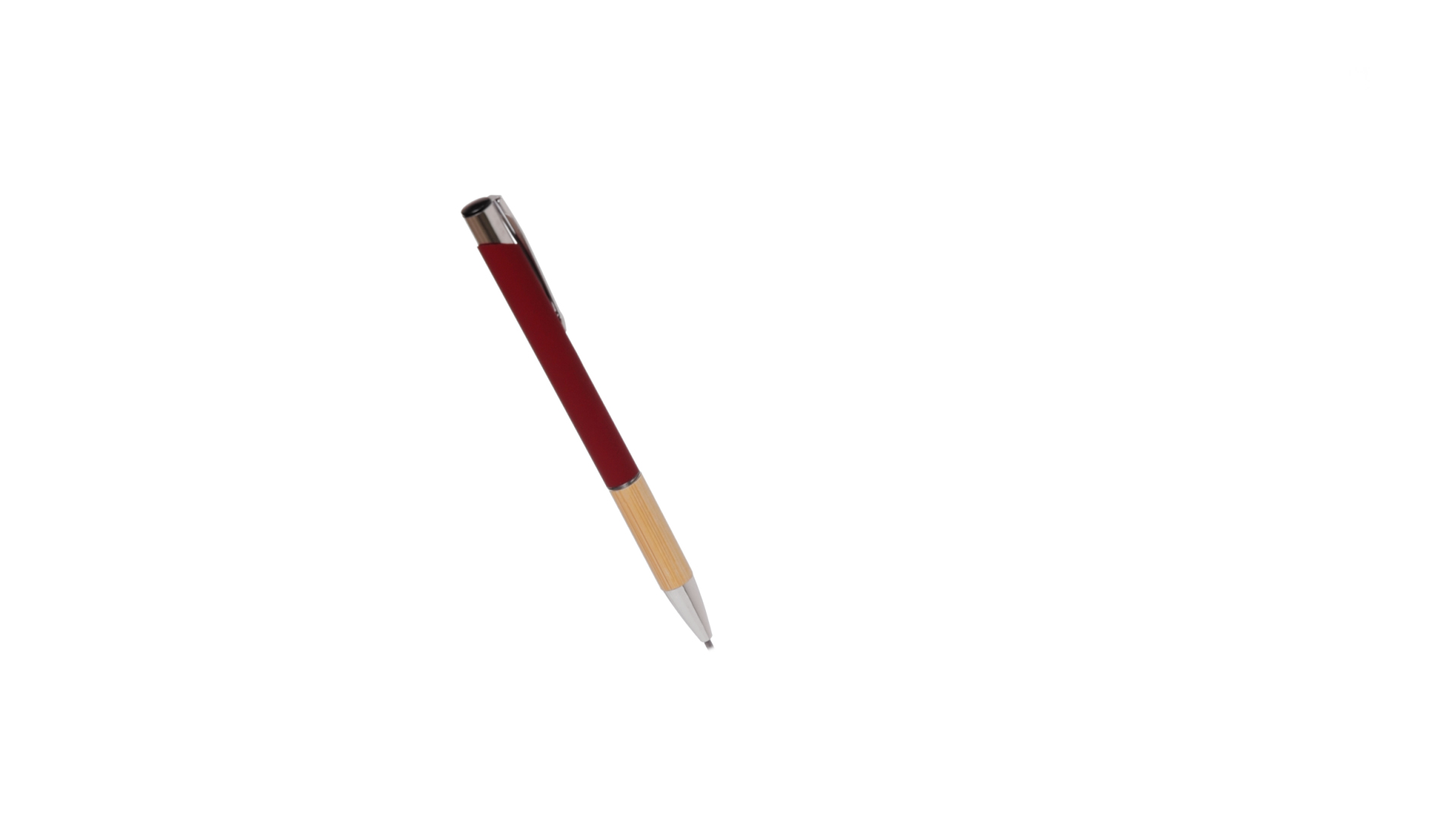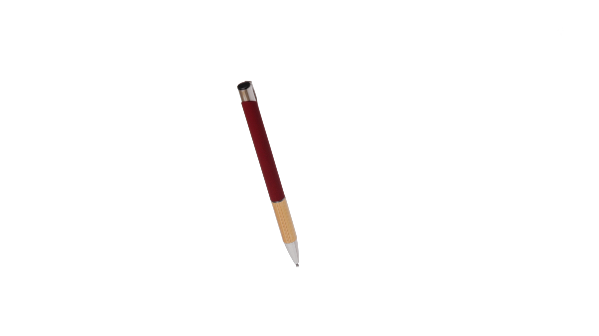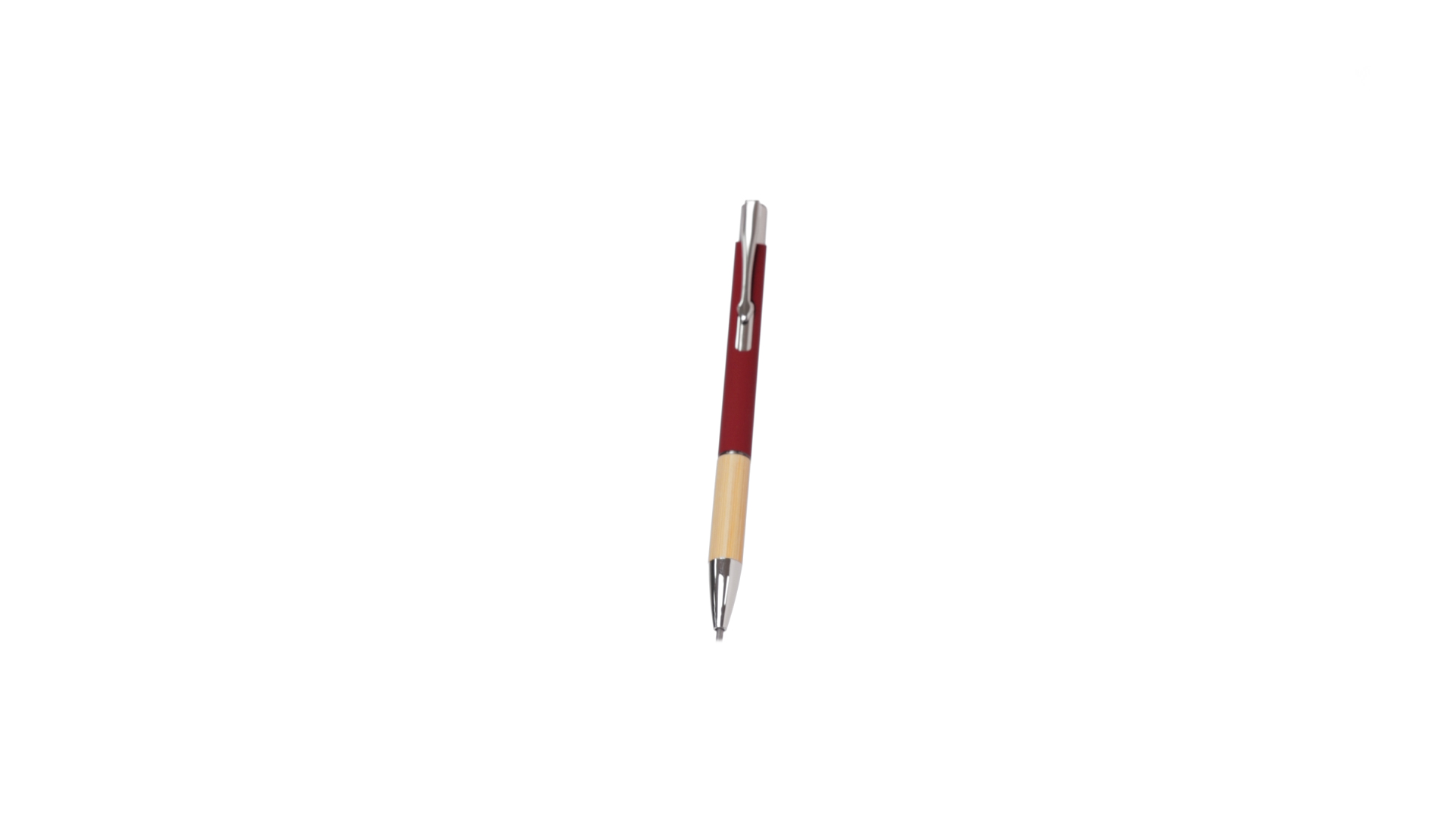 Eleganter Kugelschreiber mit Naturlinie und Druckknopfmechanik. Strapazierfähiger Aluminiumschaft mit gummierter Oberfläche und Bambusgriff, mit Schaft in einer breiten Palette von unverwechselbaren Farben. Metallclip, Druckknopfmechanik und blaue Tinte.
