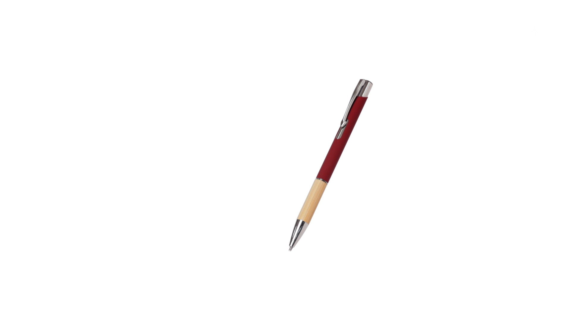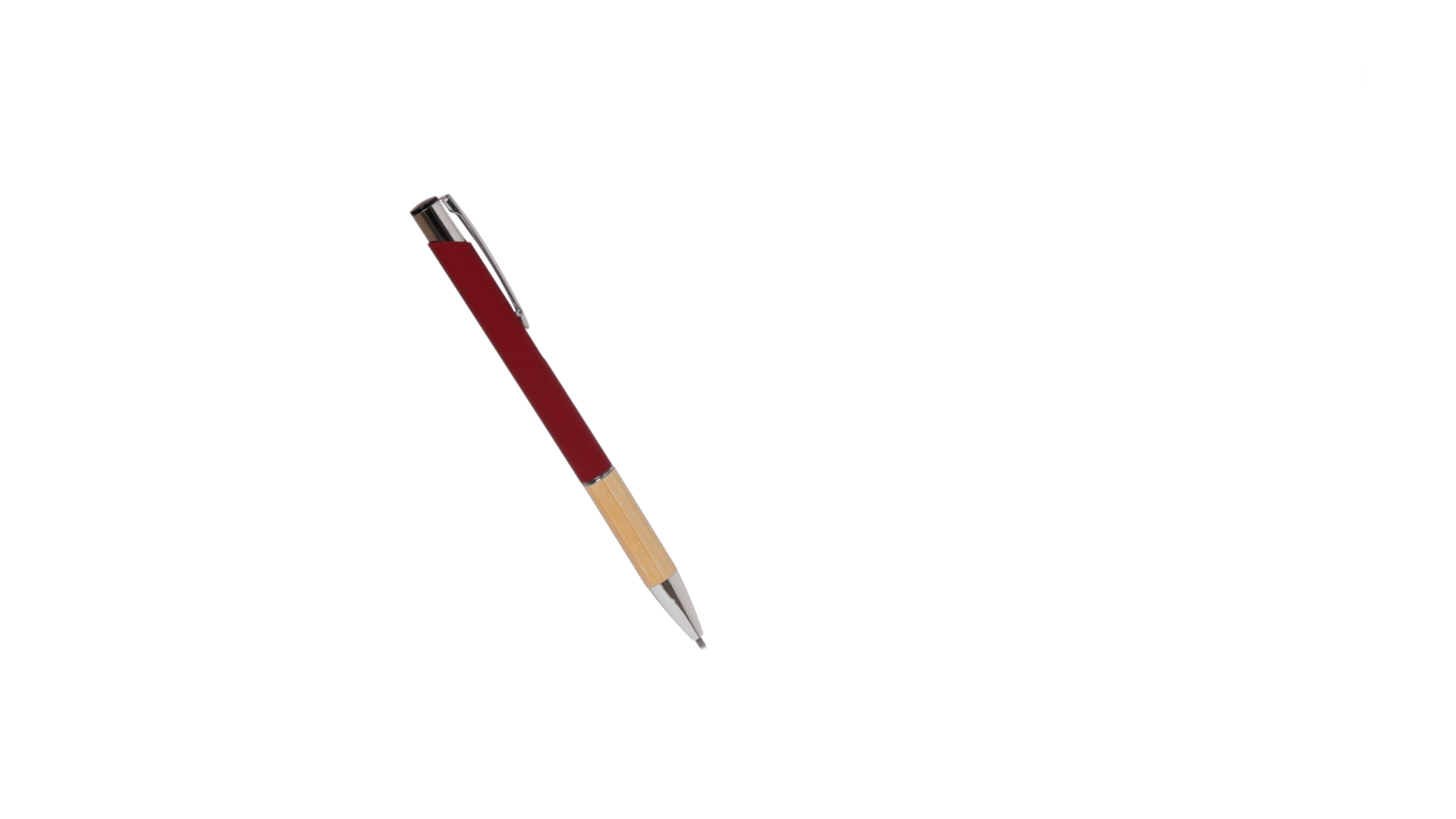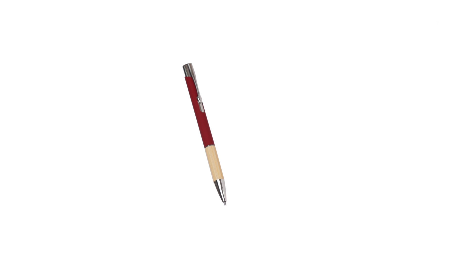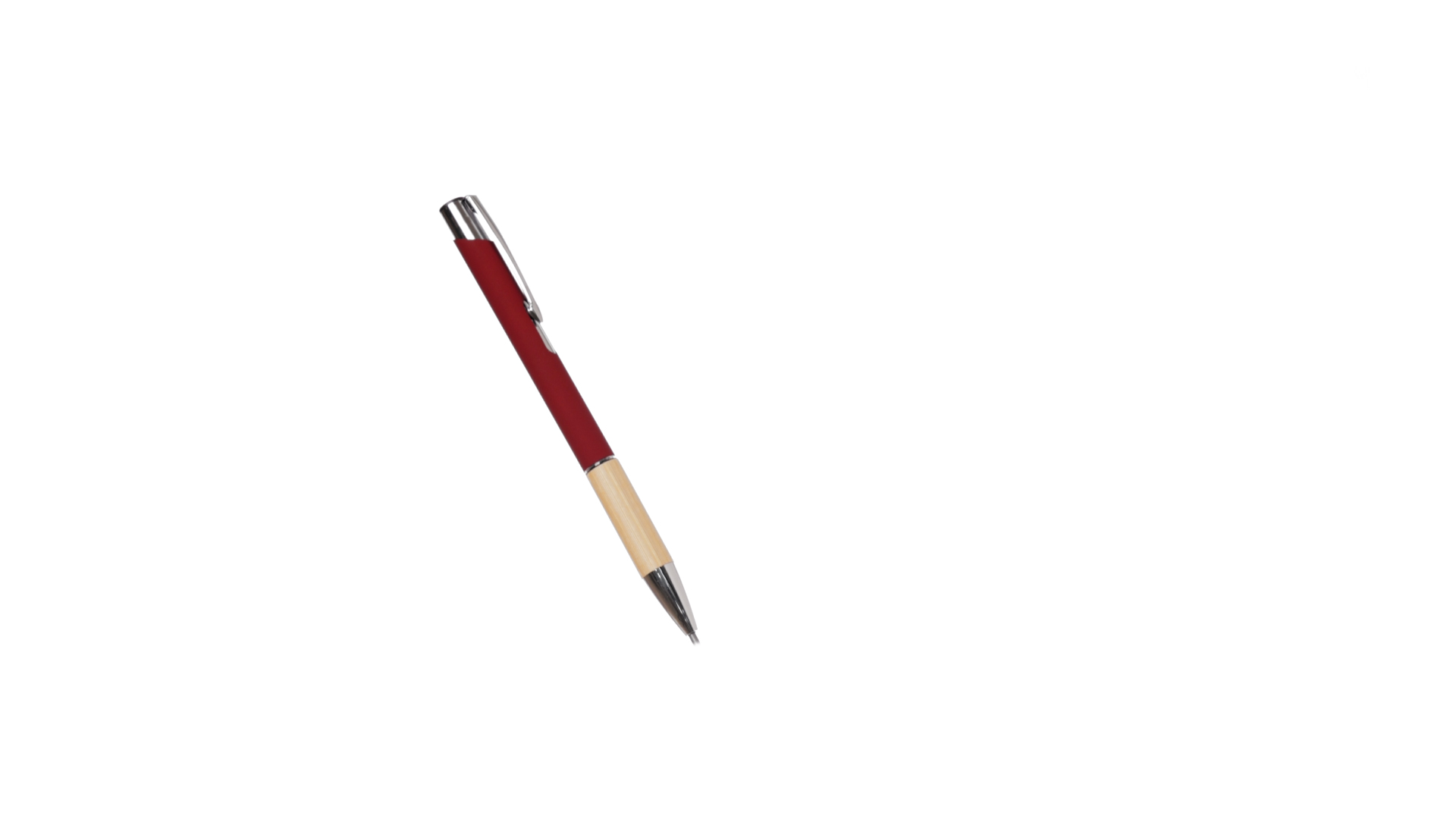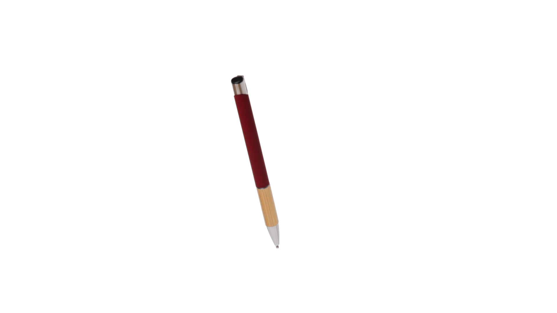 Eleganter Kugelschreiber mit Naturlinie und Druckknopfmechanik. Strapazierfähiger Aluminiumschaft mit gummierter Oberfläche und Bambusgriff, mit Schaft in einer breiten Palette von unverwechselbaren Farben. Metallclip, Druckknopfmechanik und blaue Tinte.