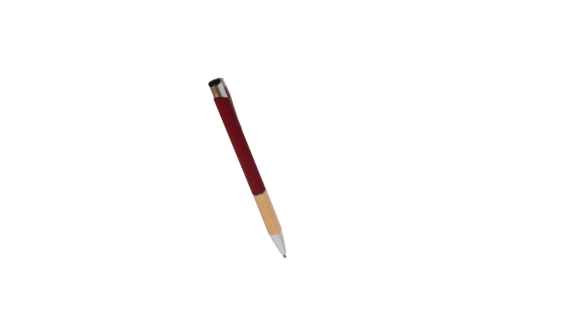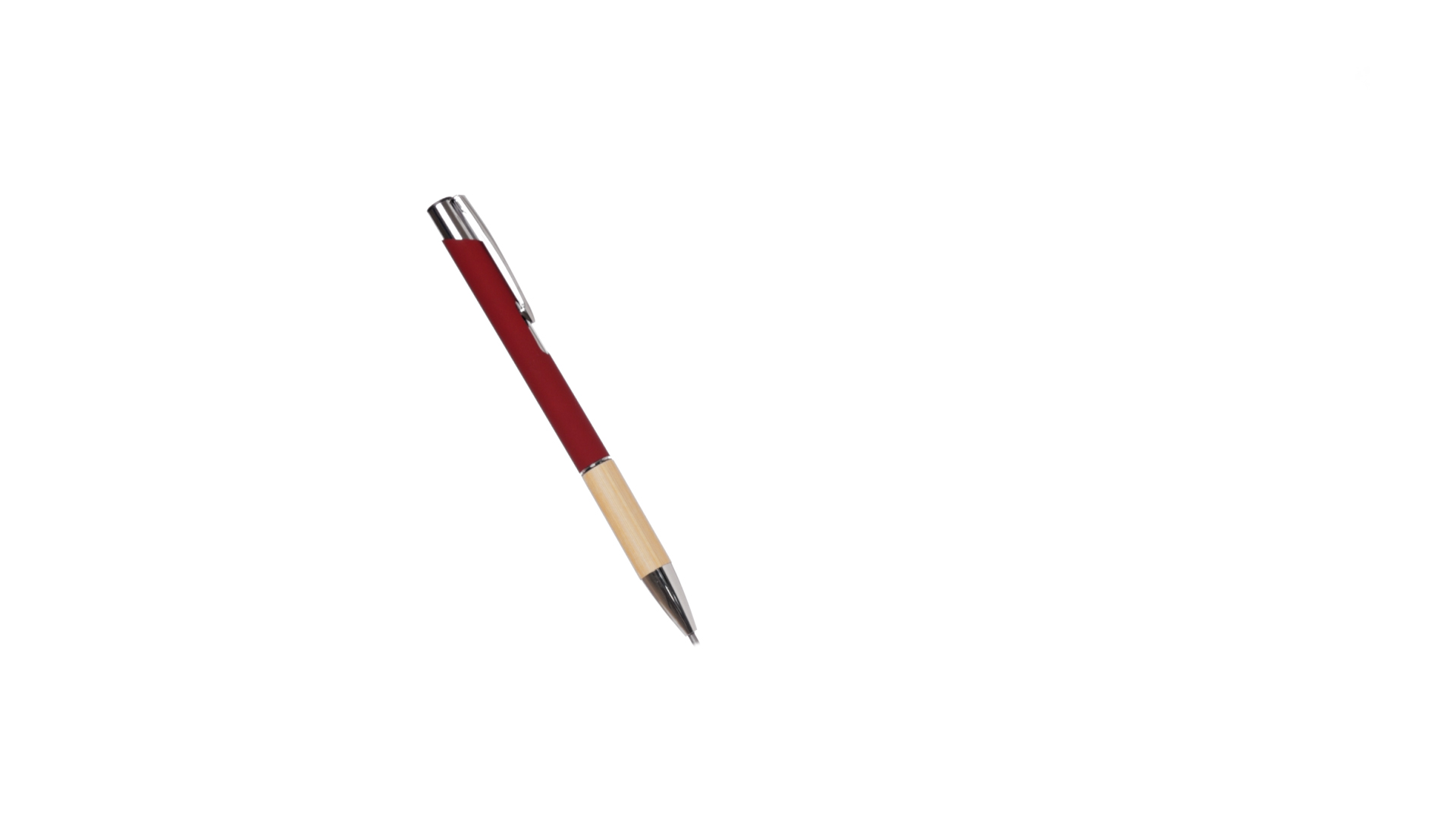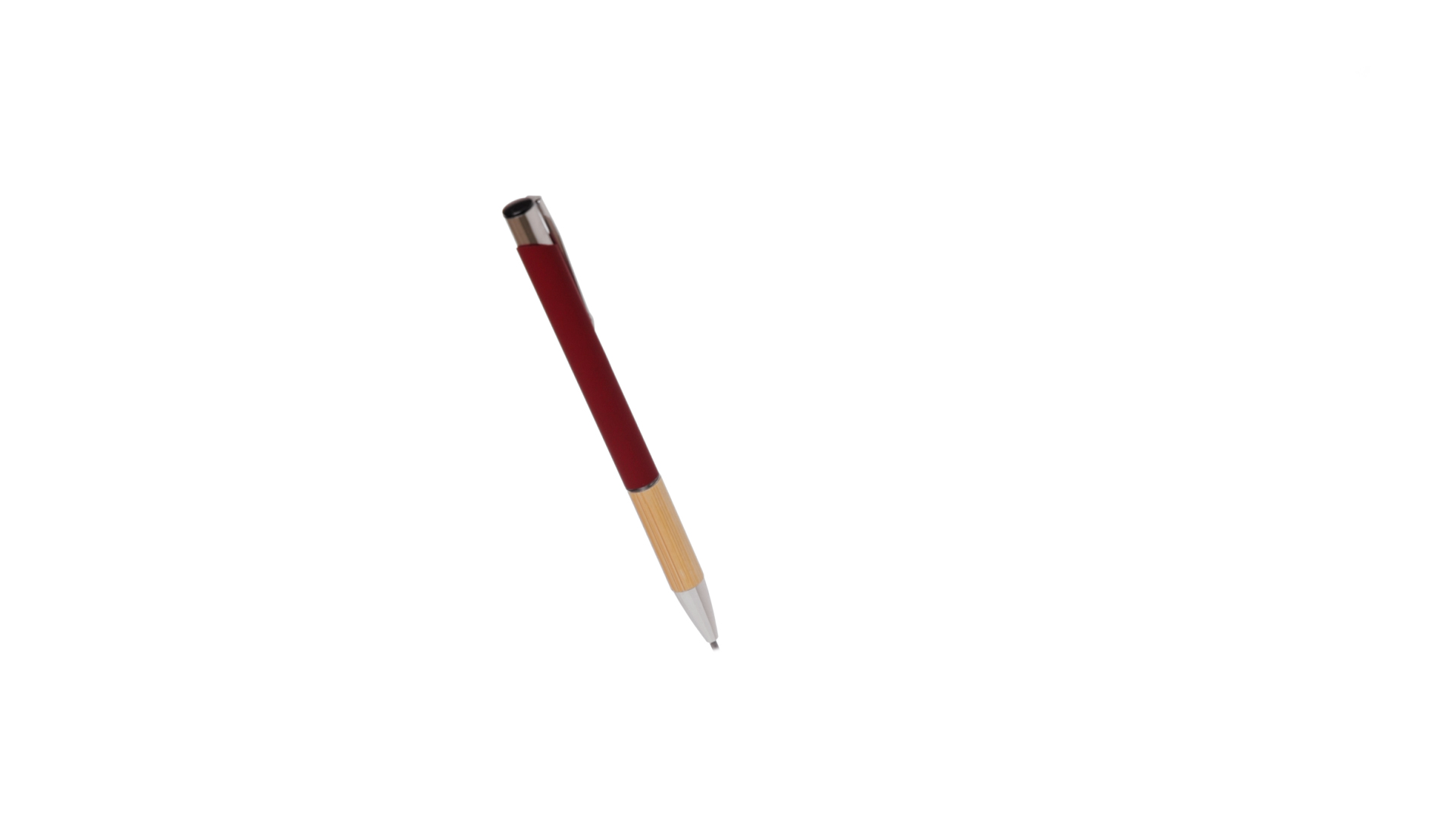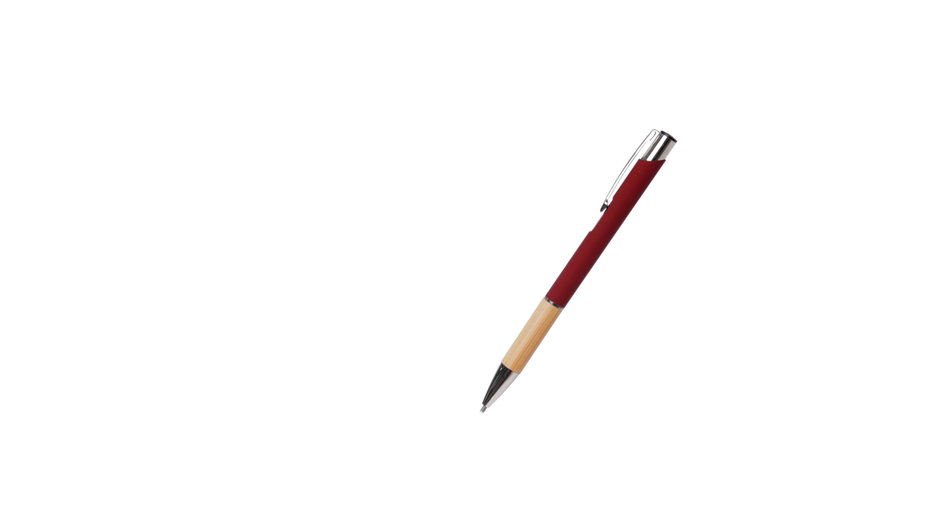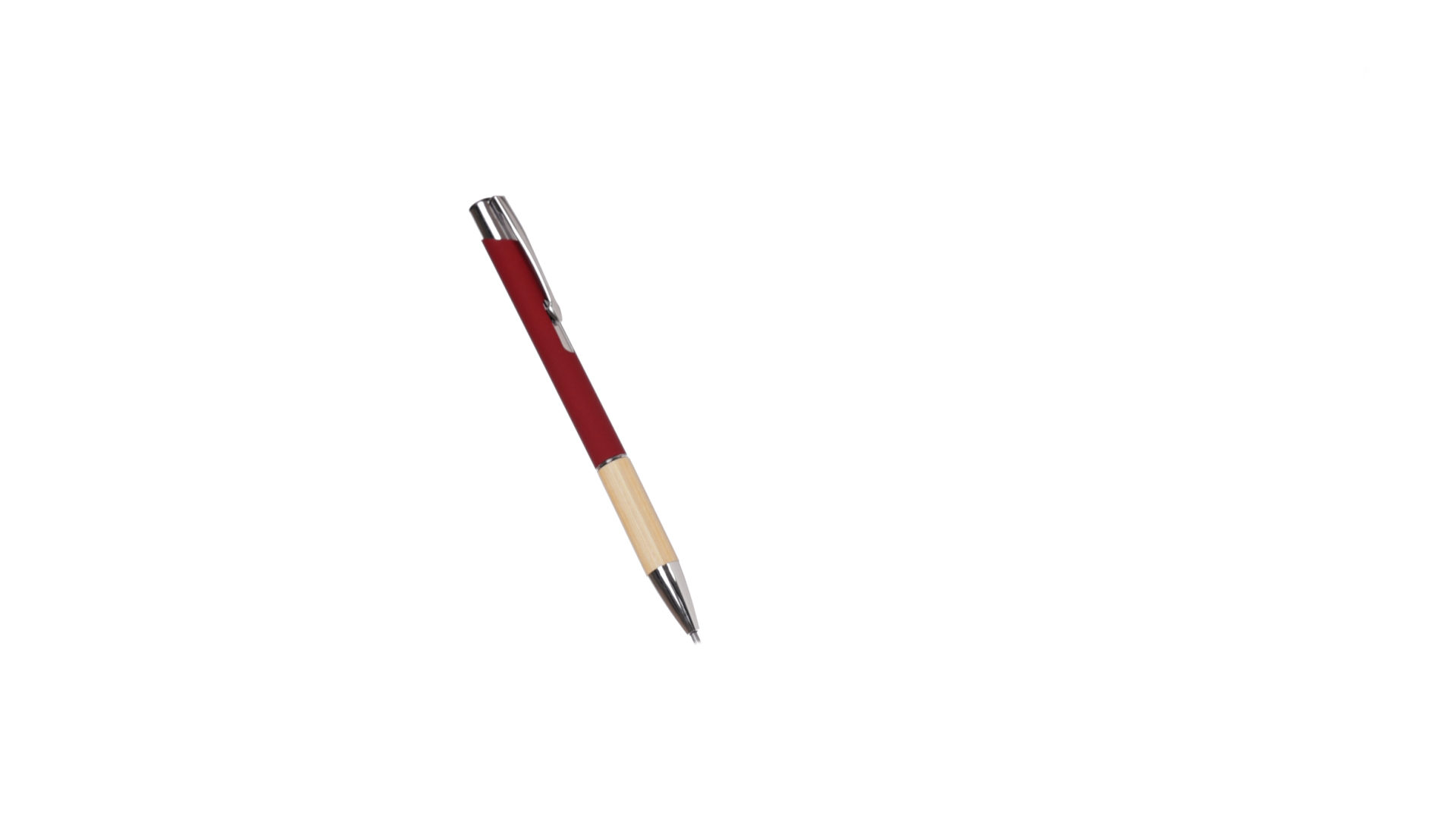 Eleganter Kugelschreiber mit Naturlinie und Druckknopfmechanik. Strapazierfähiger Aluminiumschaft mit gummierter Oberfläche und Bambusgriff, mit Schaft in einer breiten Palette von unverwechselbaren Farben. Metallclip, Druckknopfmechanik und blaue Tinte.