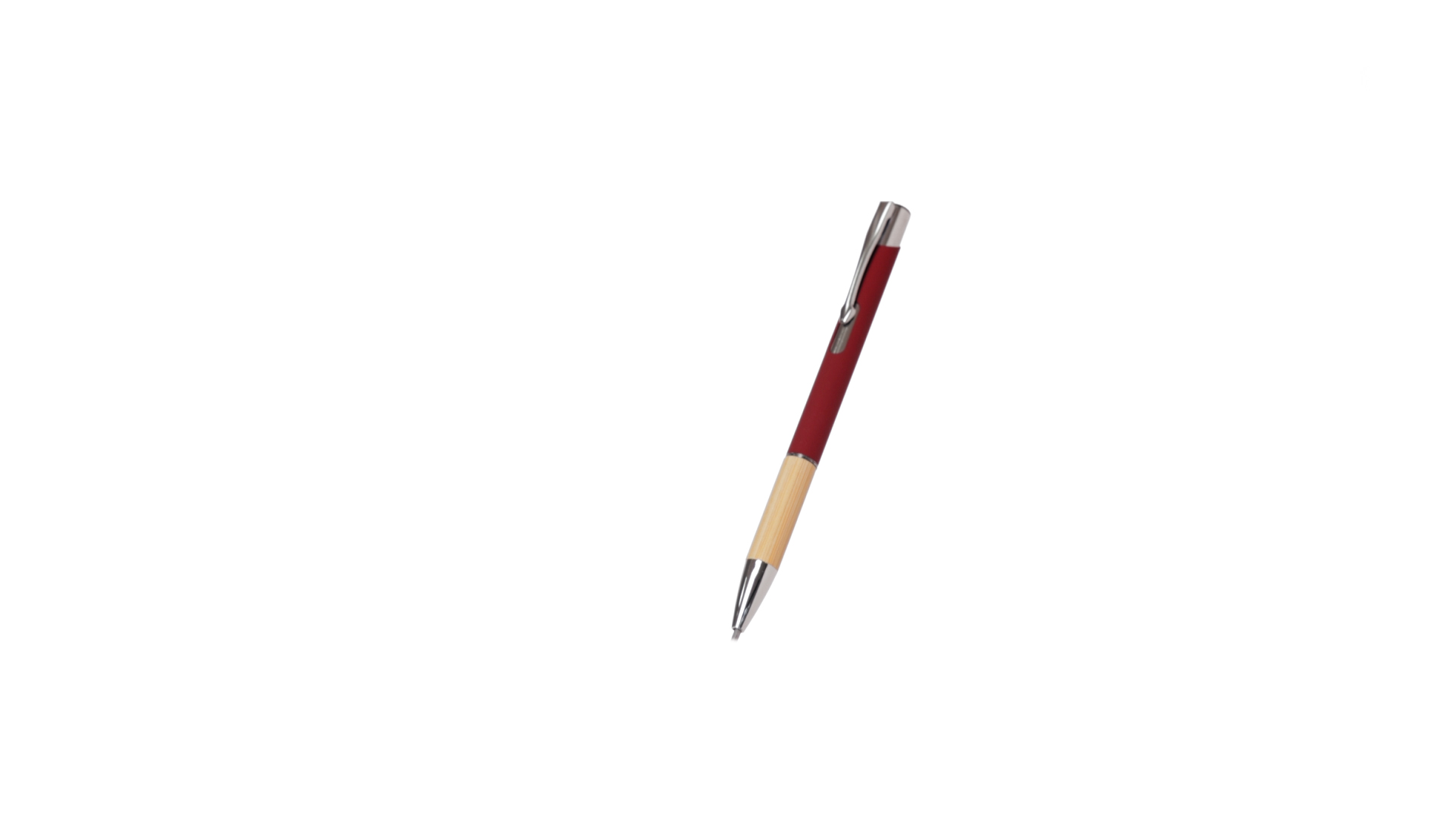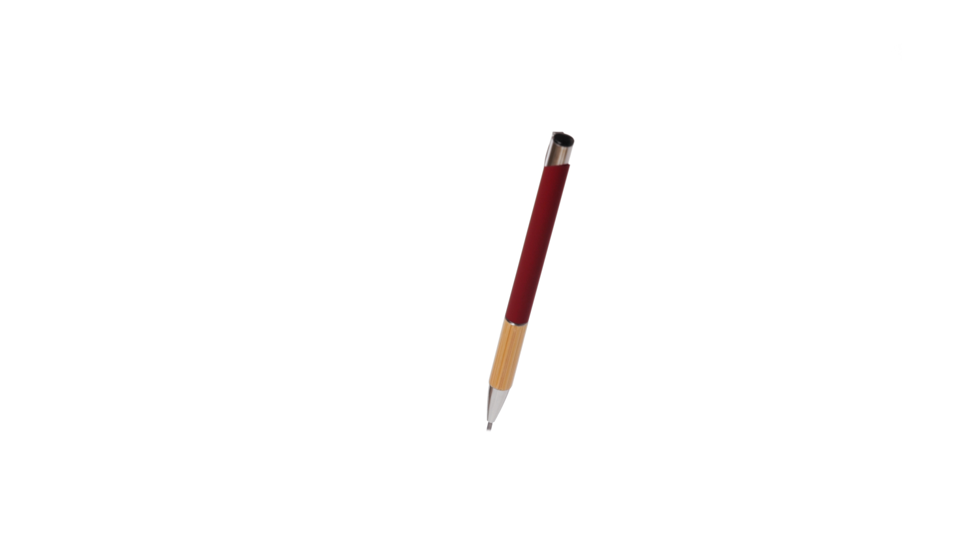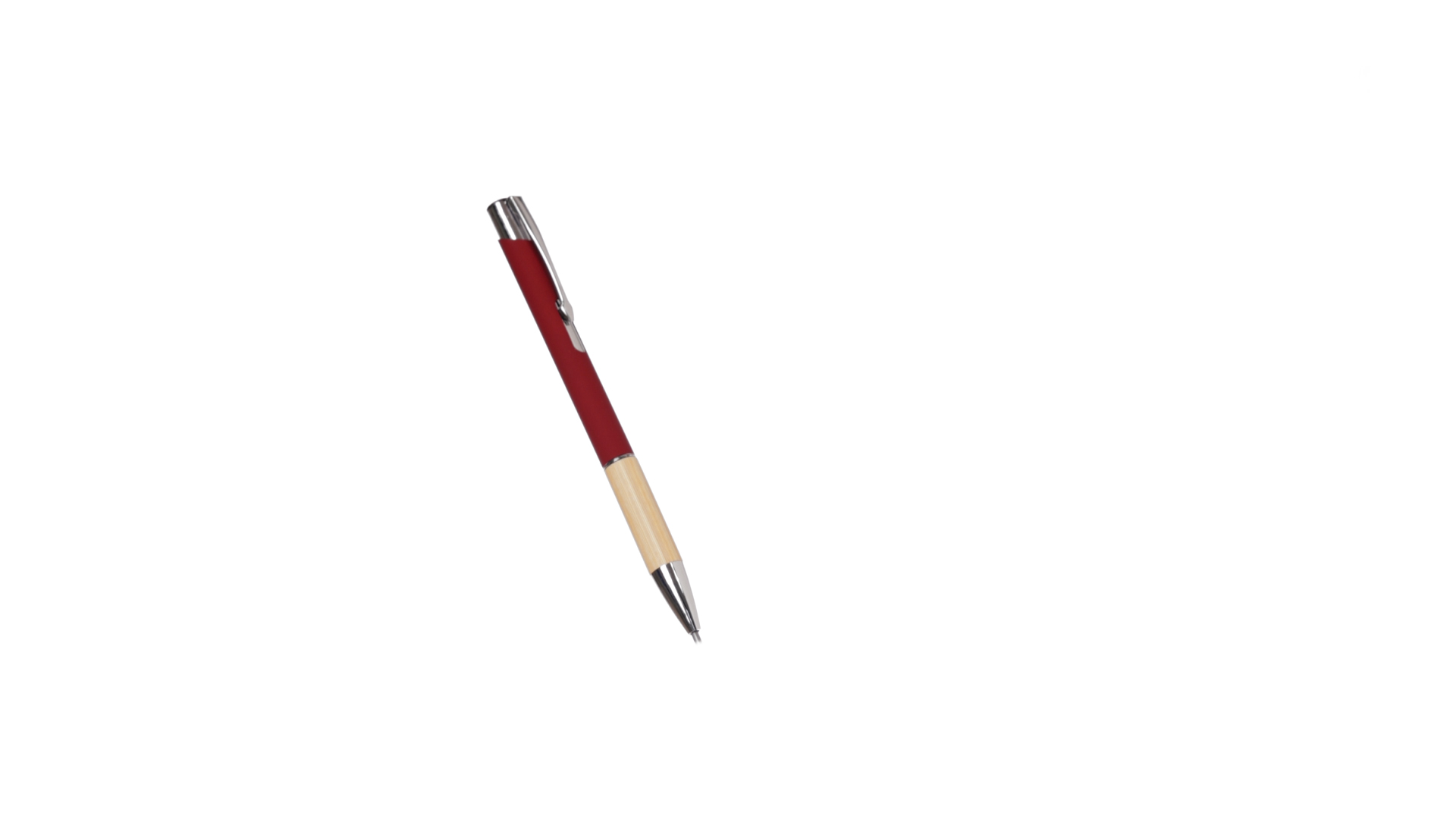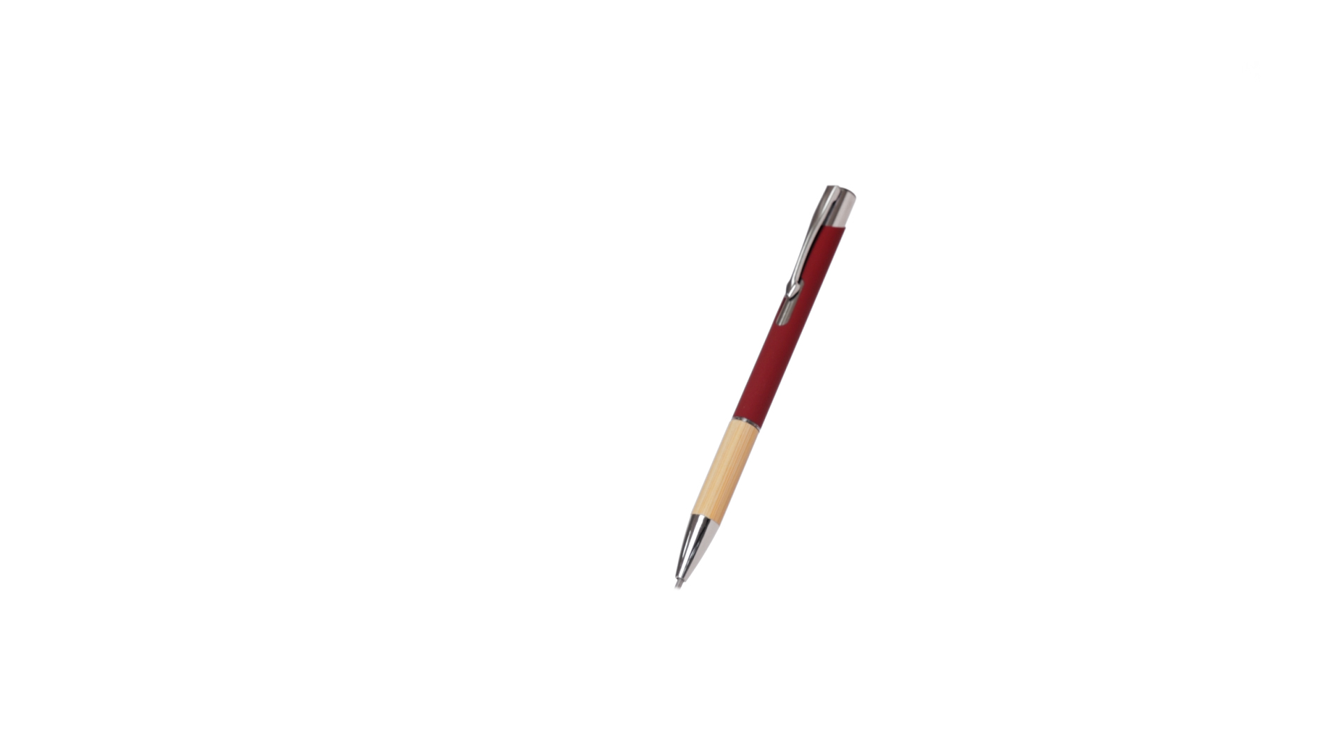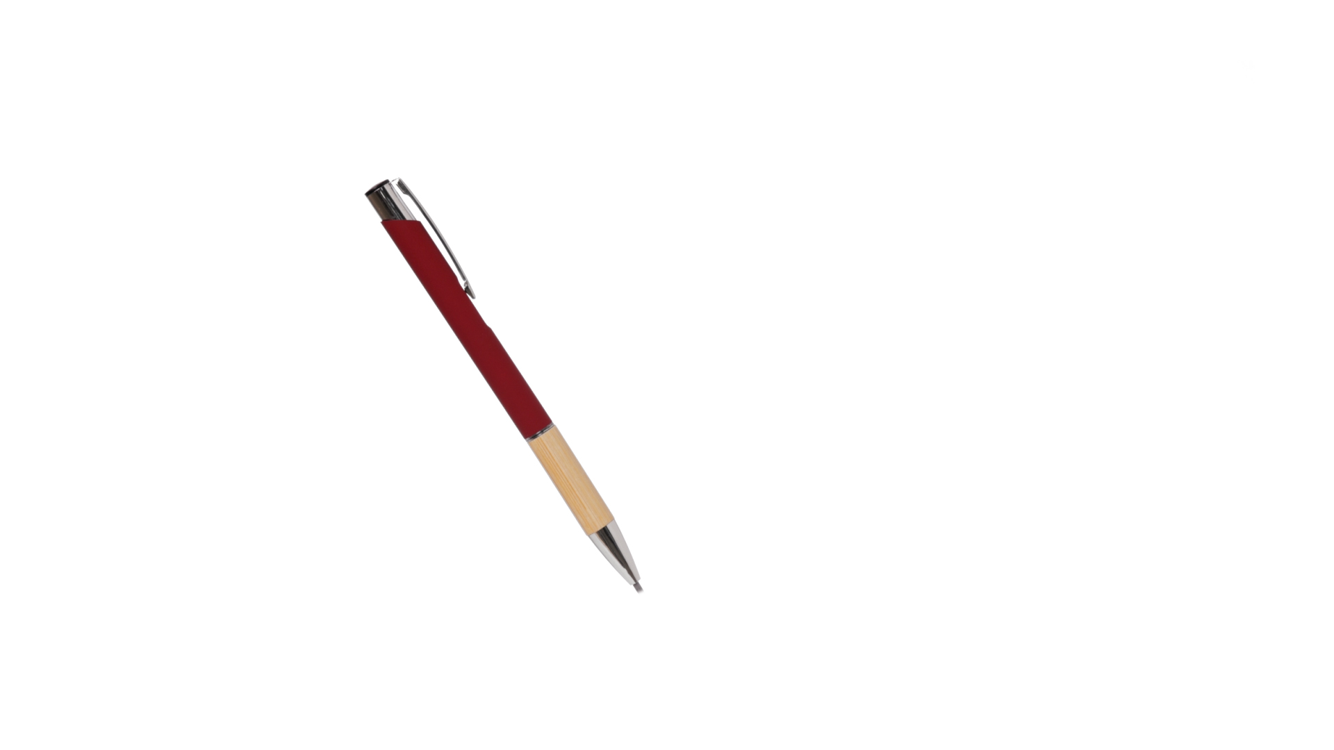 Eleganter Kugelschreiber mit Naturlinie und Druckknopfmechanik. Strapazierfähiger Aluminiumschaft mit gummierter Oberfläche und Bambusgriff, mit Schaft in einer breiten Palette von unverwechselbaren Farben. Metallclip, Druckknopfmechanik und blaue Tinte.