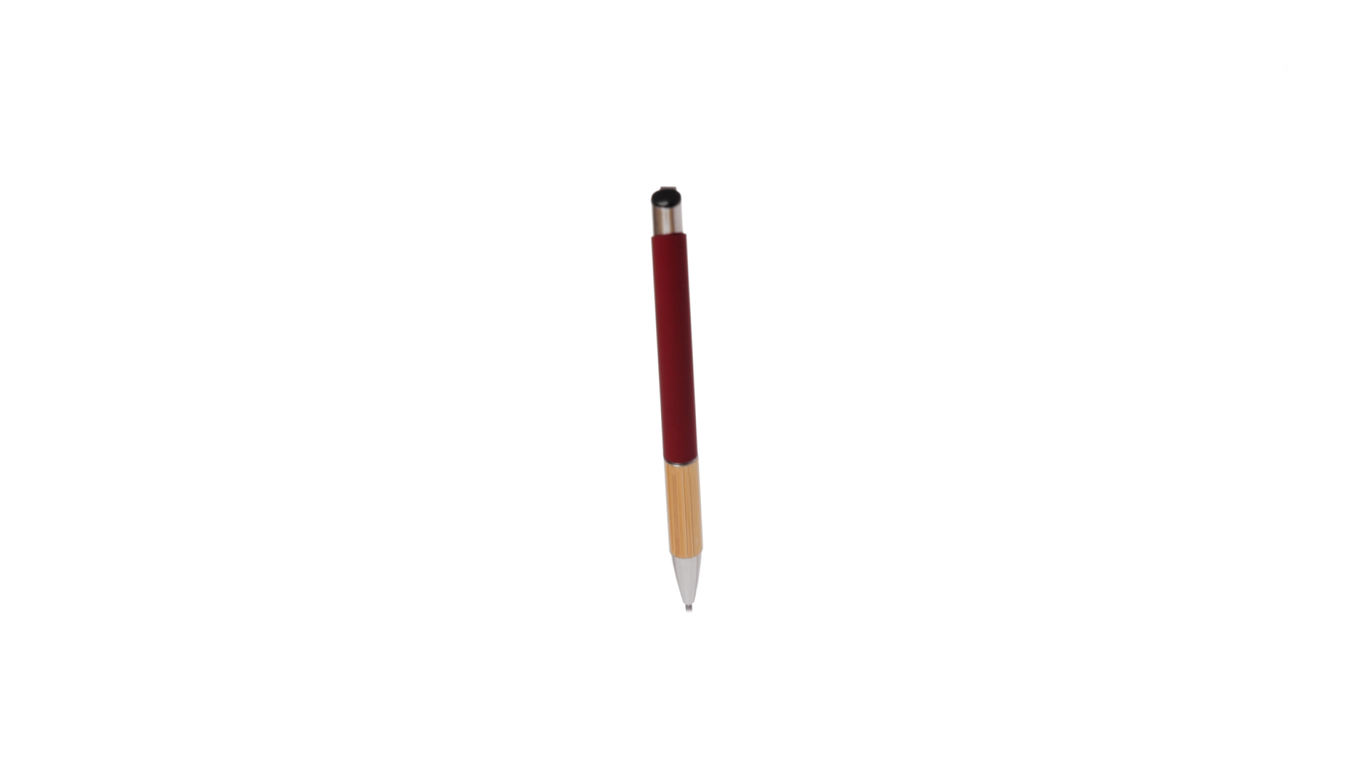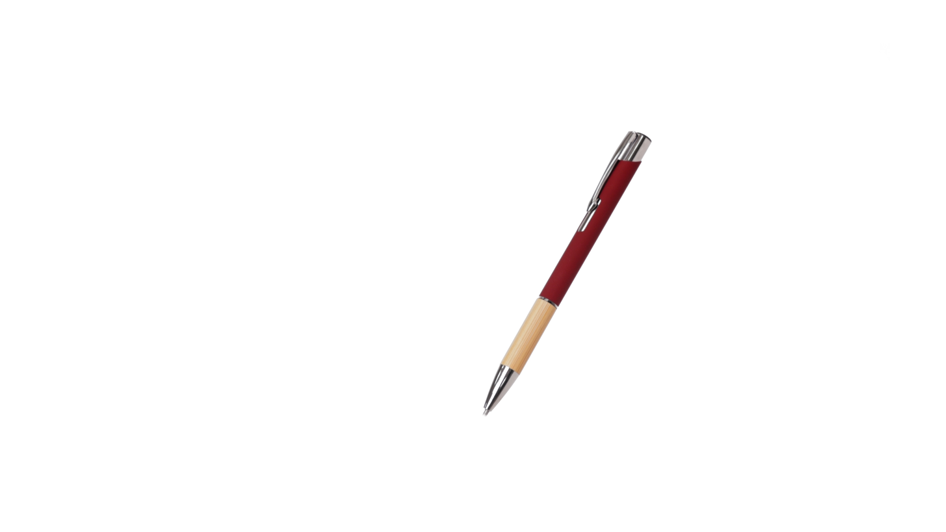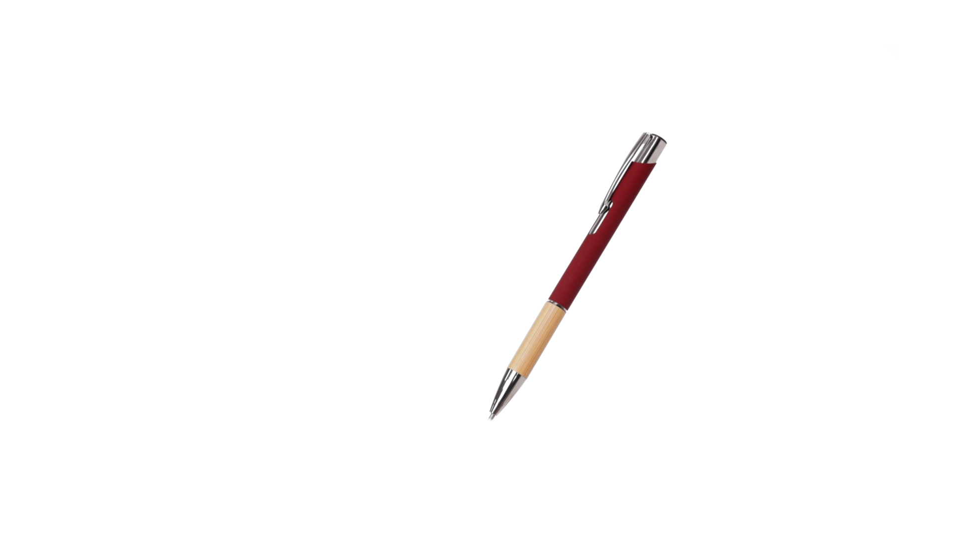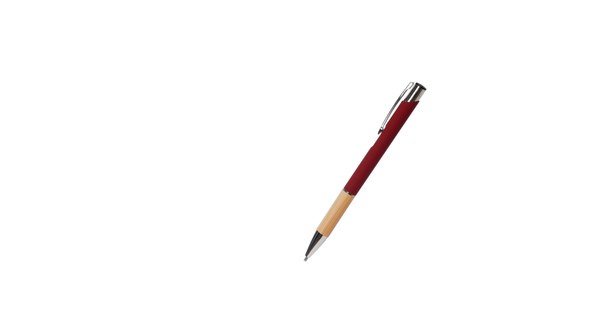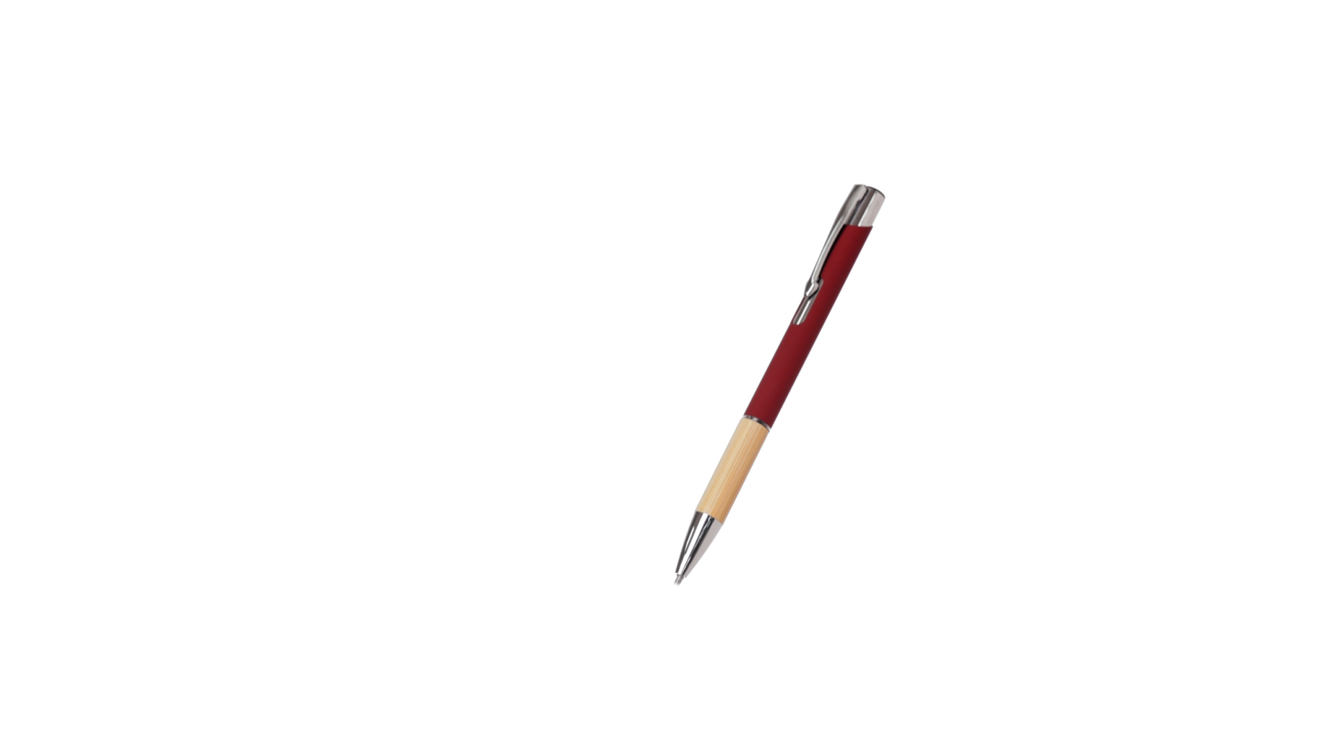 Eleganter Kugelschreiber mit Naturlinie und Druckknopfmechanik. Strapazierfähiger Aluminiumschaft mit gummierter Oberfläche und Bambusgriff, mit Schaft in einer breiten Palette von unverwechselbaren Farben. Metallclip, Druckknopfmechanik und blaue Tinte.