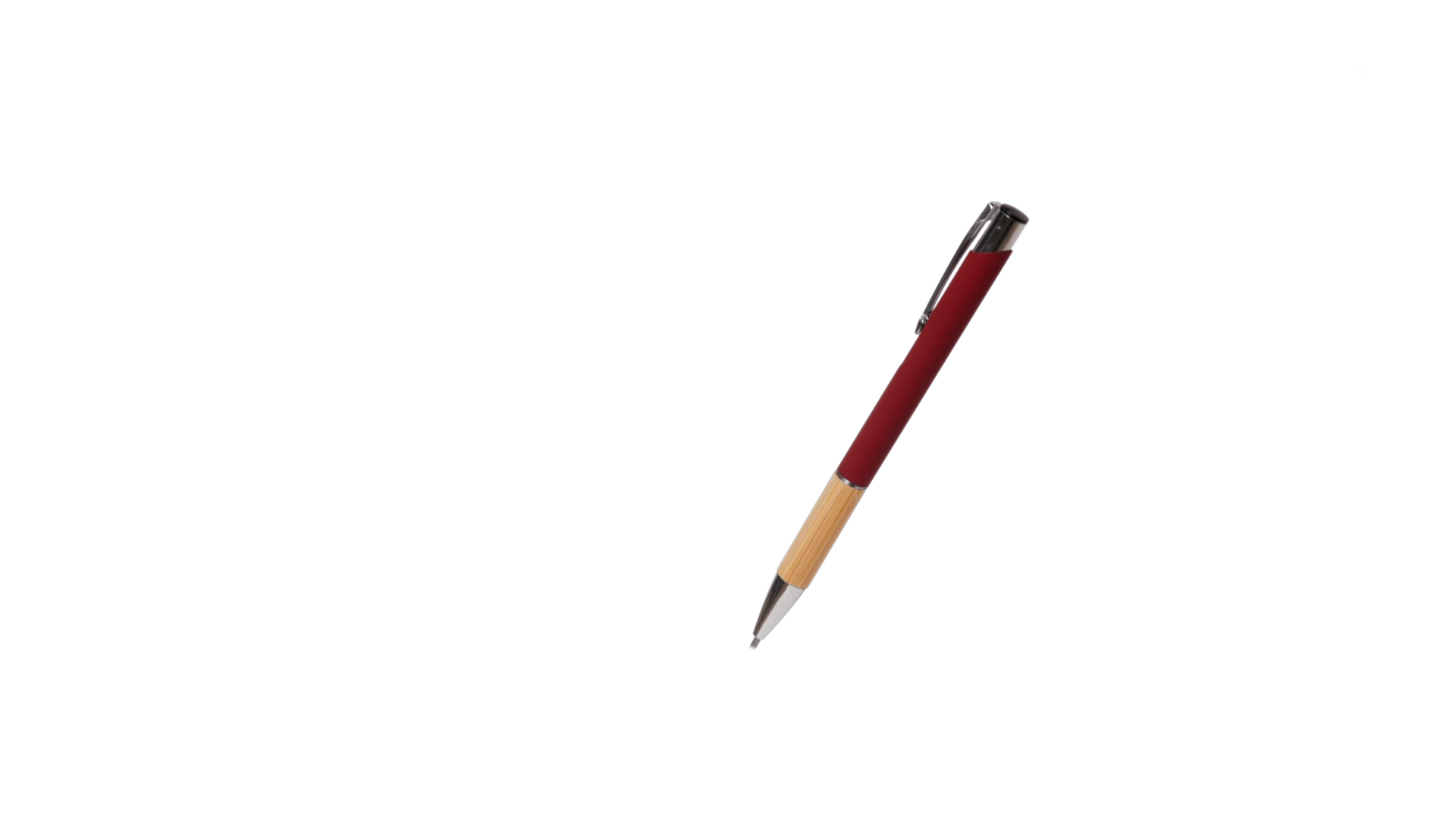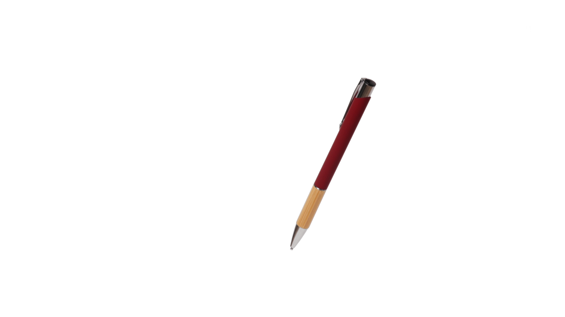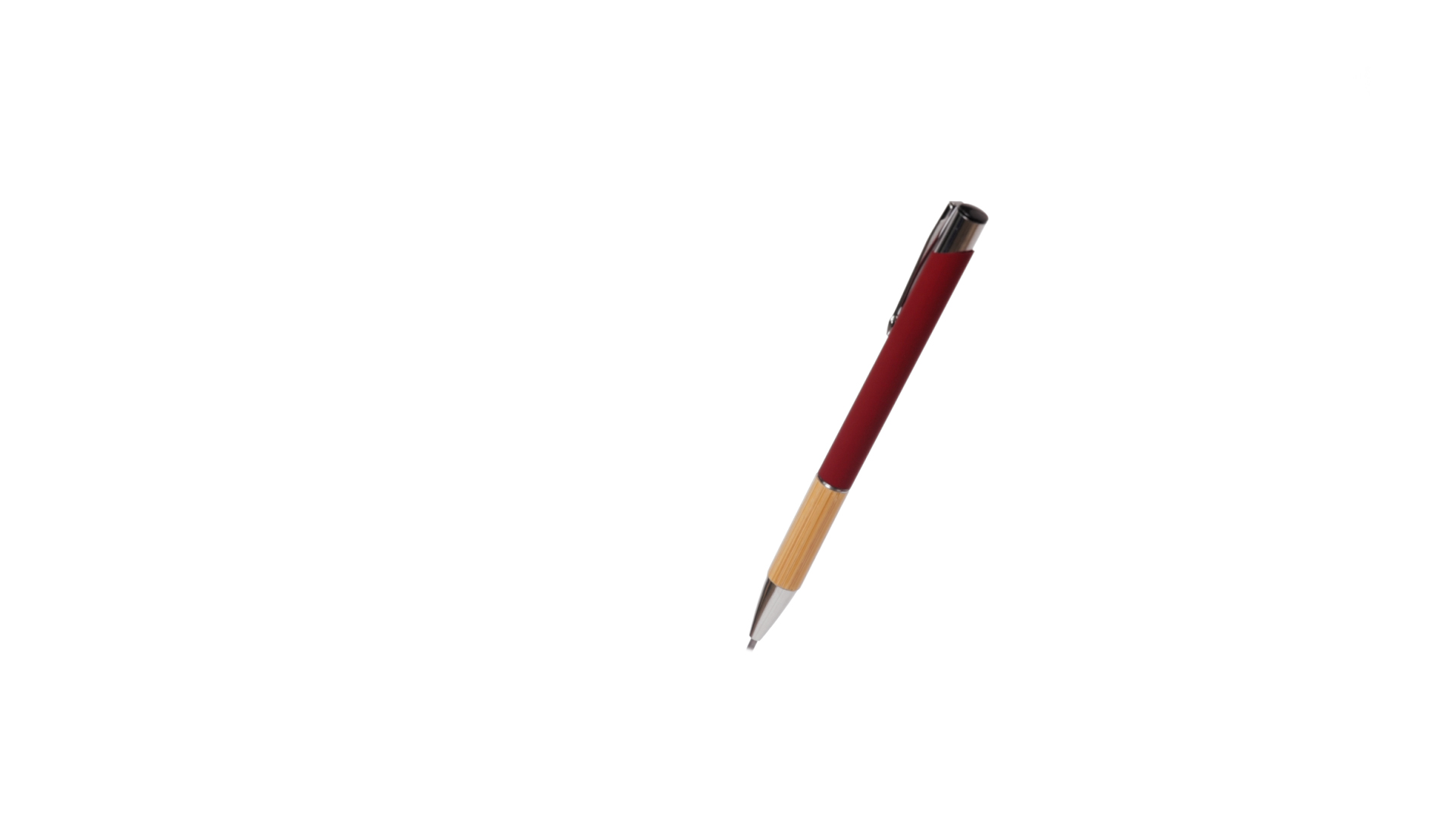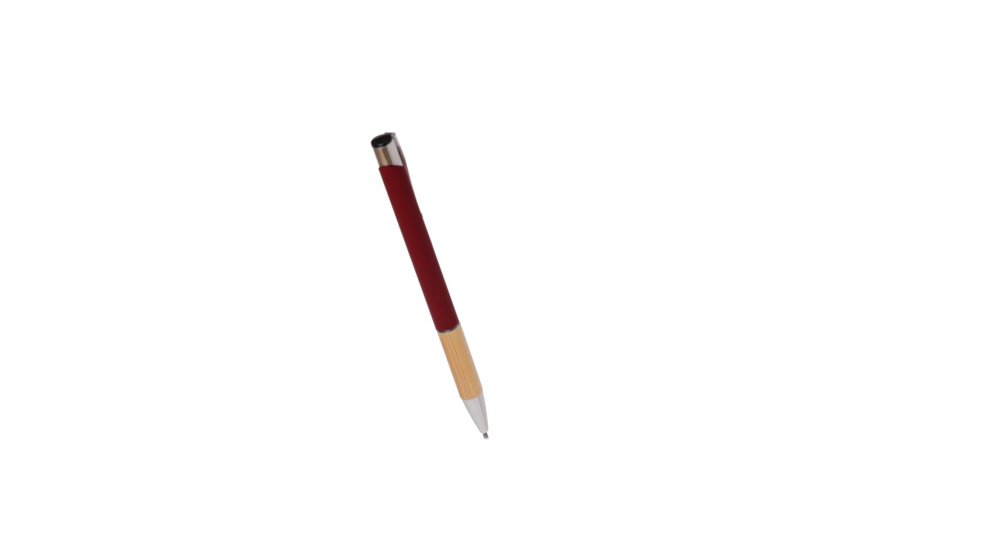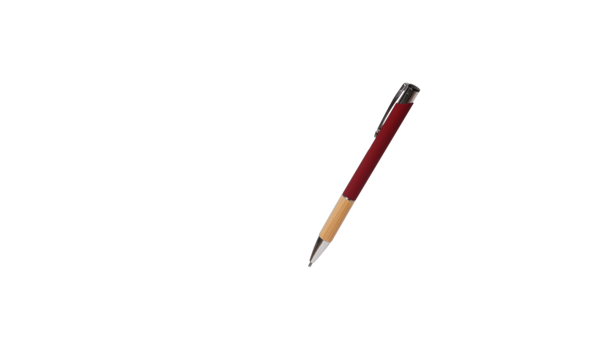 Eleganter Kugelschreiber mit Naturlinie und Druckknopfmechanik. Strapazierfähiger Aluminiumschaft mit gummierter Oberfläche und Bambusgriff, mit Schaft in einer breiten Palette von unverwechselbaren Farben. Metallclip, Druckknopfmechanik und blaue Tinte.
