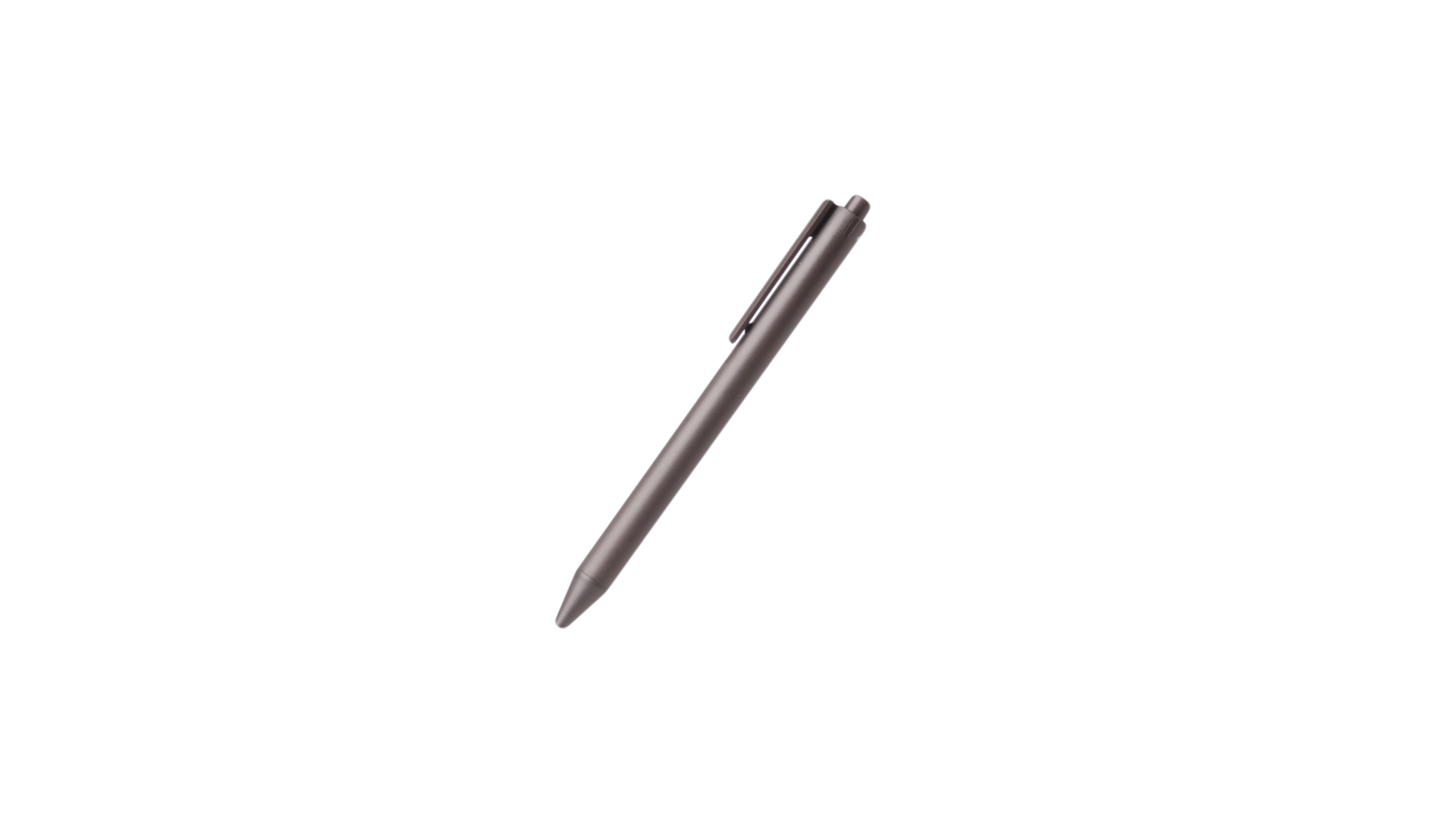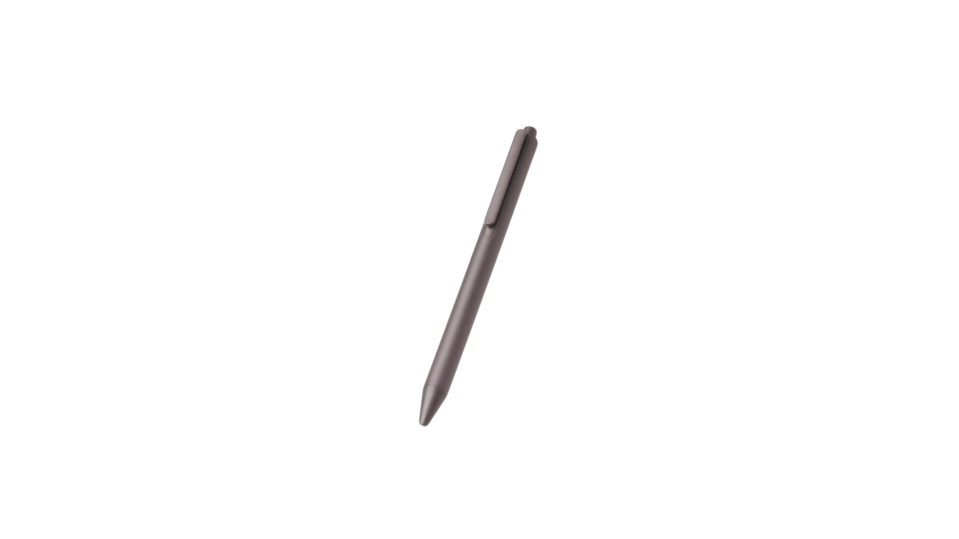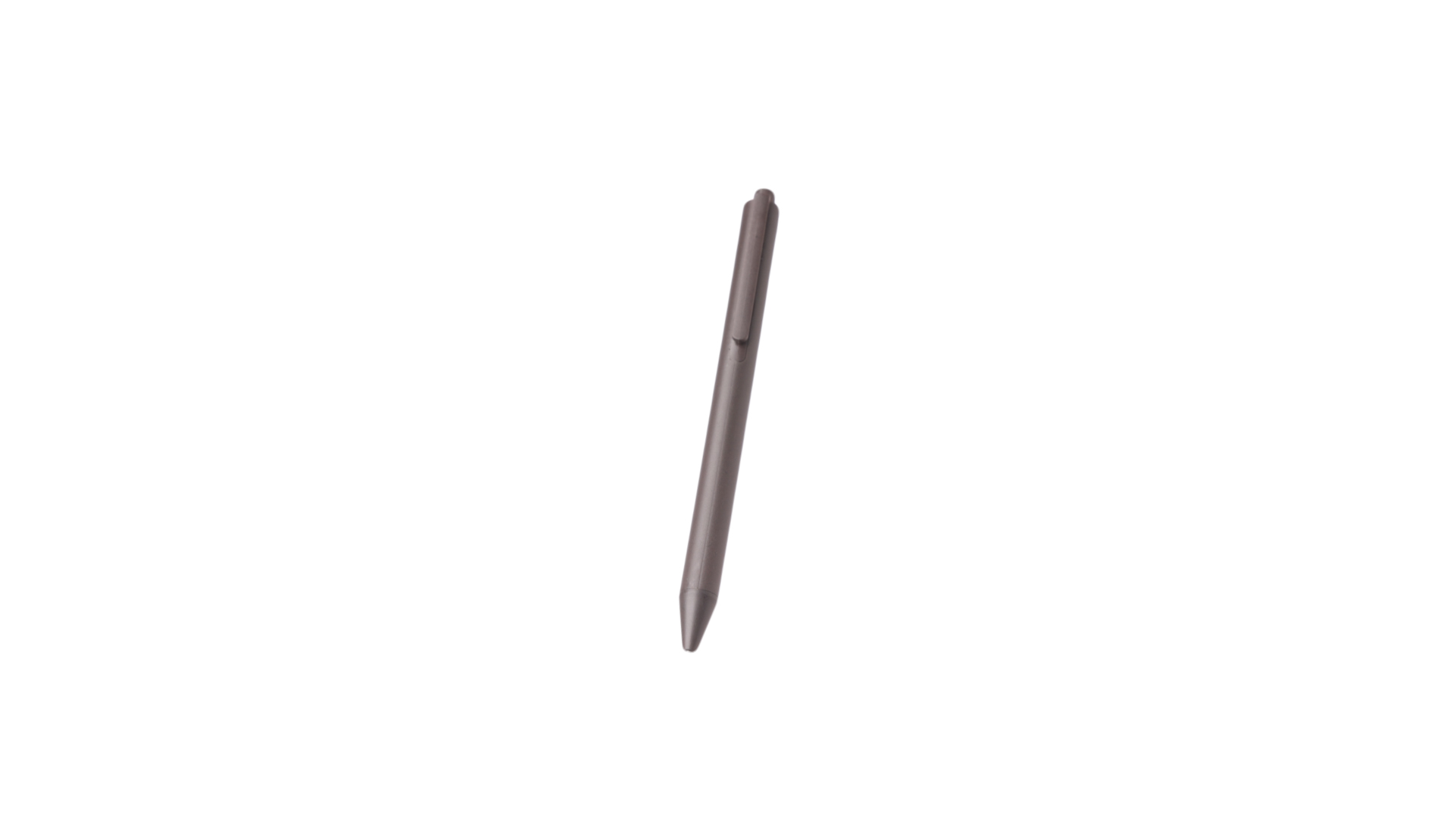 Naturfaser-Stift mit einem Gehäuse aus Kaffeefasern und passenden Details. Mit Druckmechanismus und blauer Tinte sowie einem Kaffeefaser-Emblem am Gehäuse.