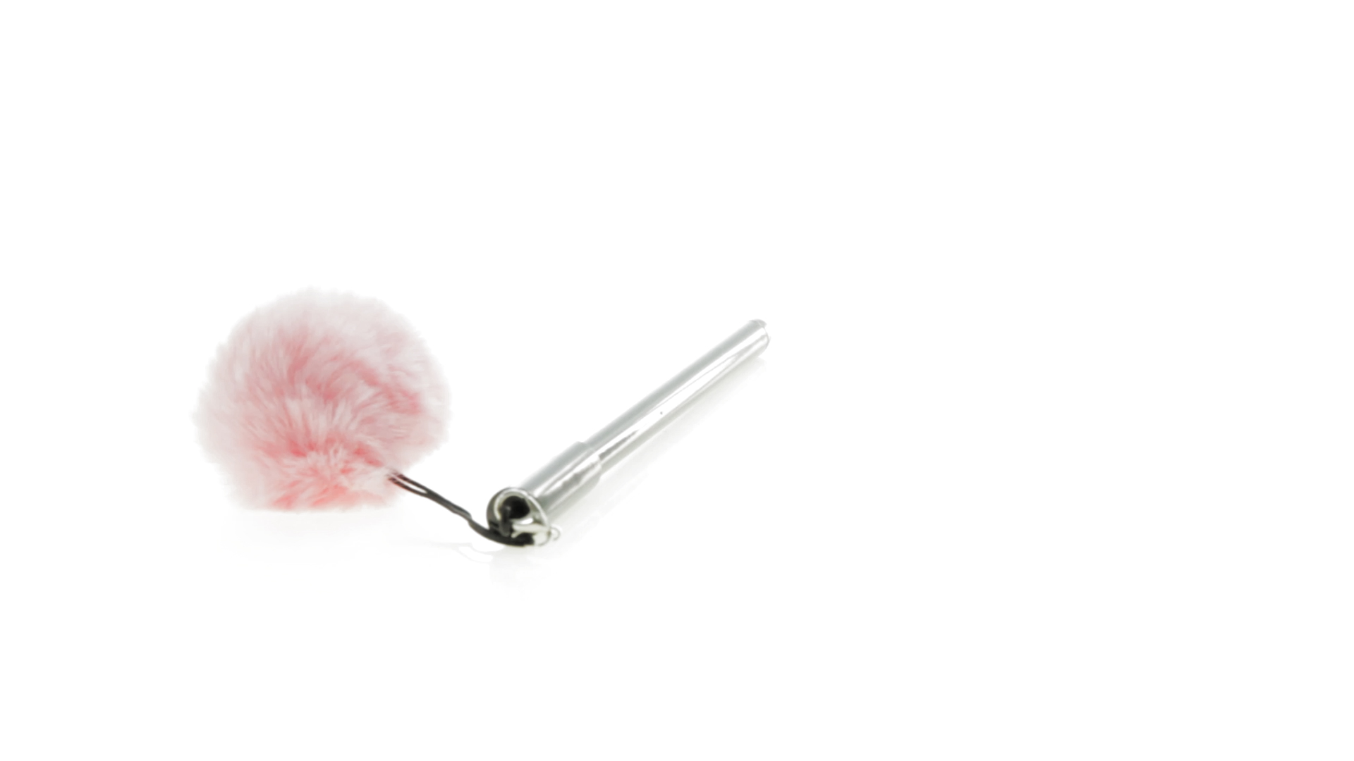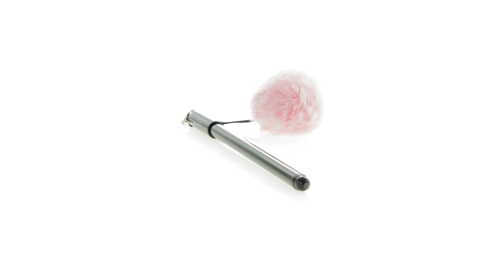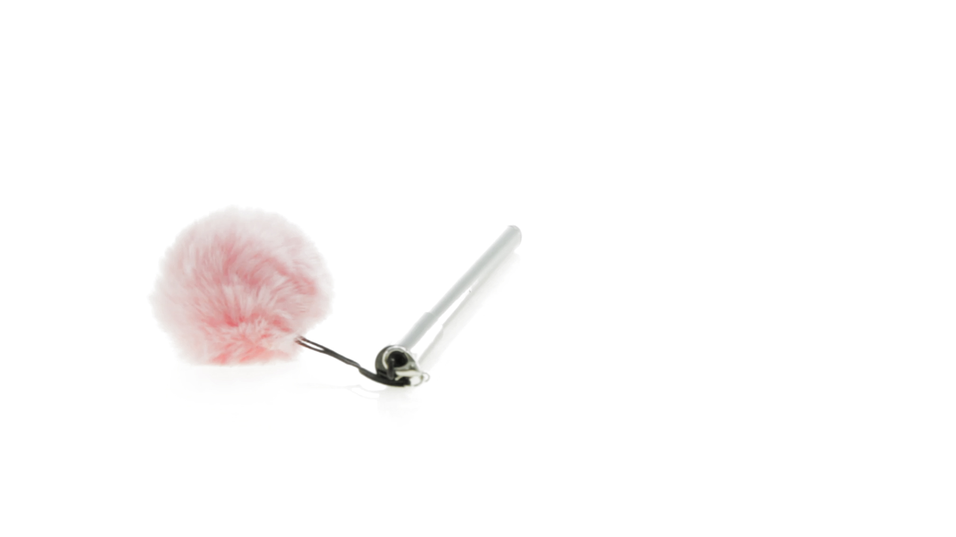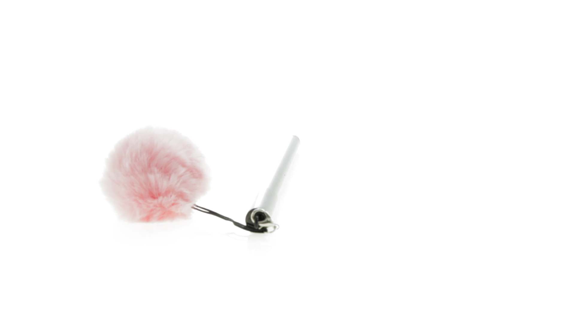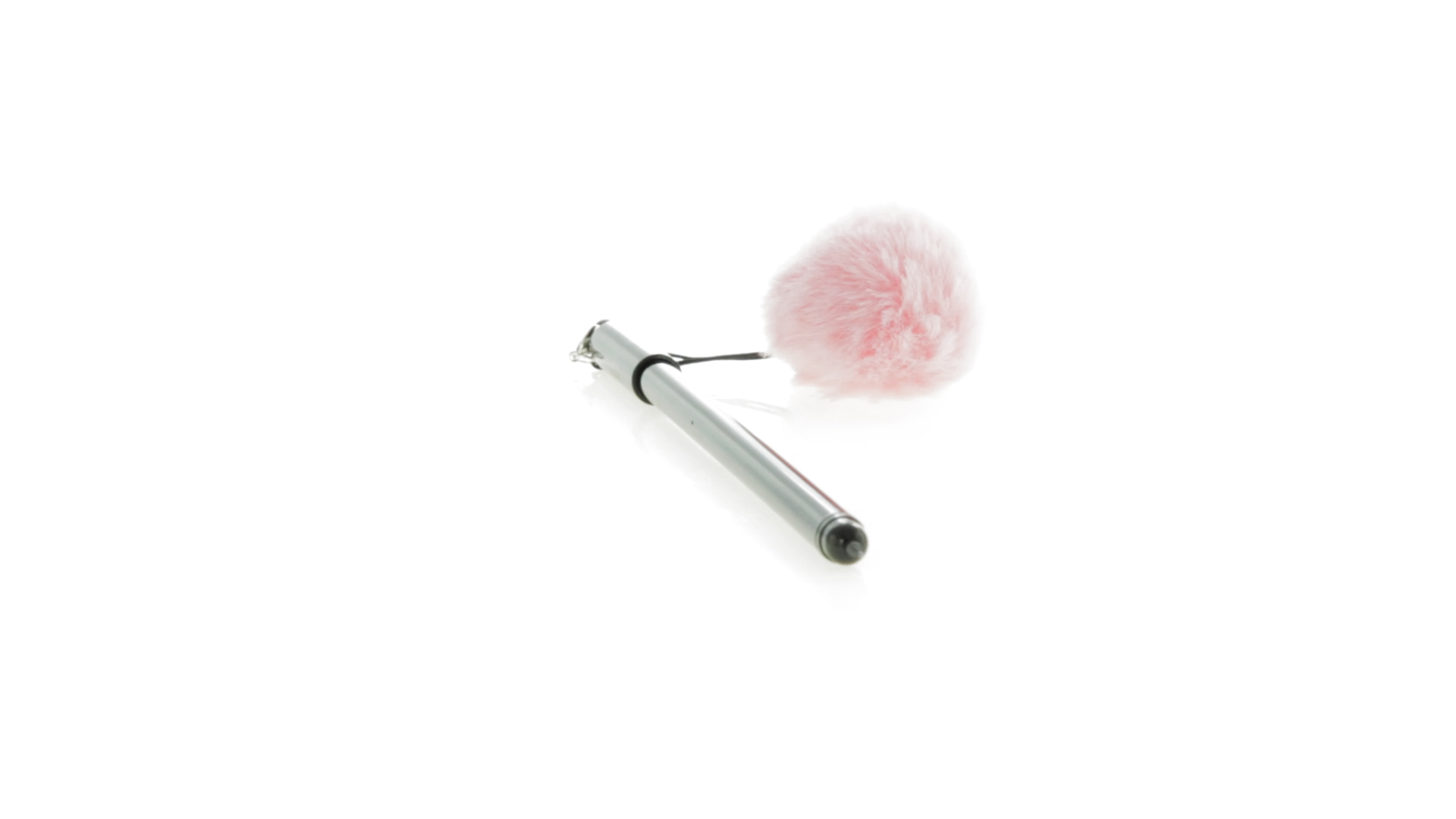 Auffälliger Kugelschreiber mit Kappe, Gel-Tinte und Bommel. Mit Gehäuse in mattem Schwarz und Bommel in Weiss oder Rosa. Jumbo-Patrone mit blauer Tinte.