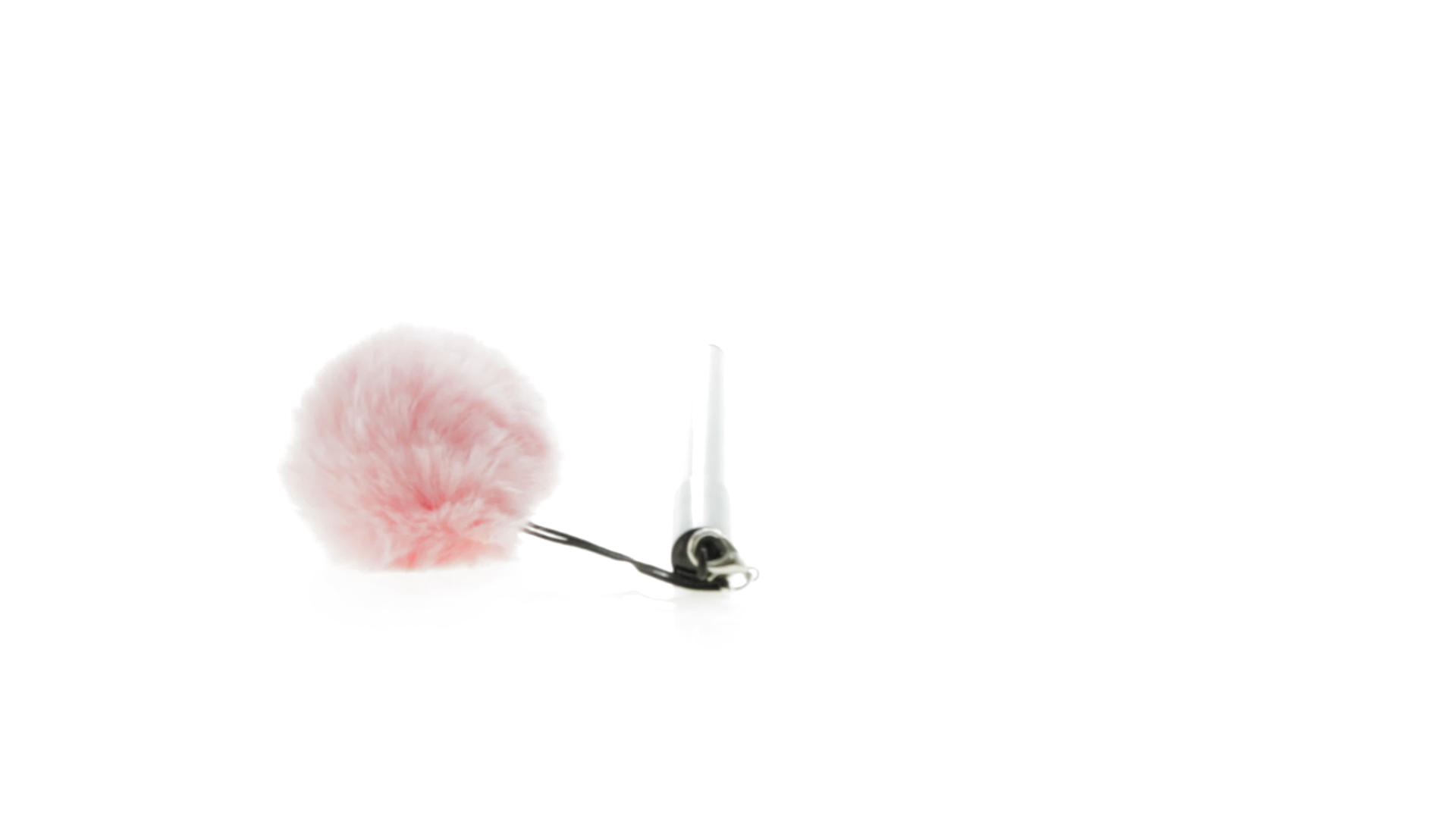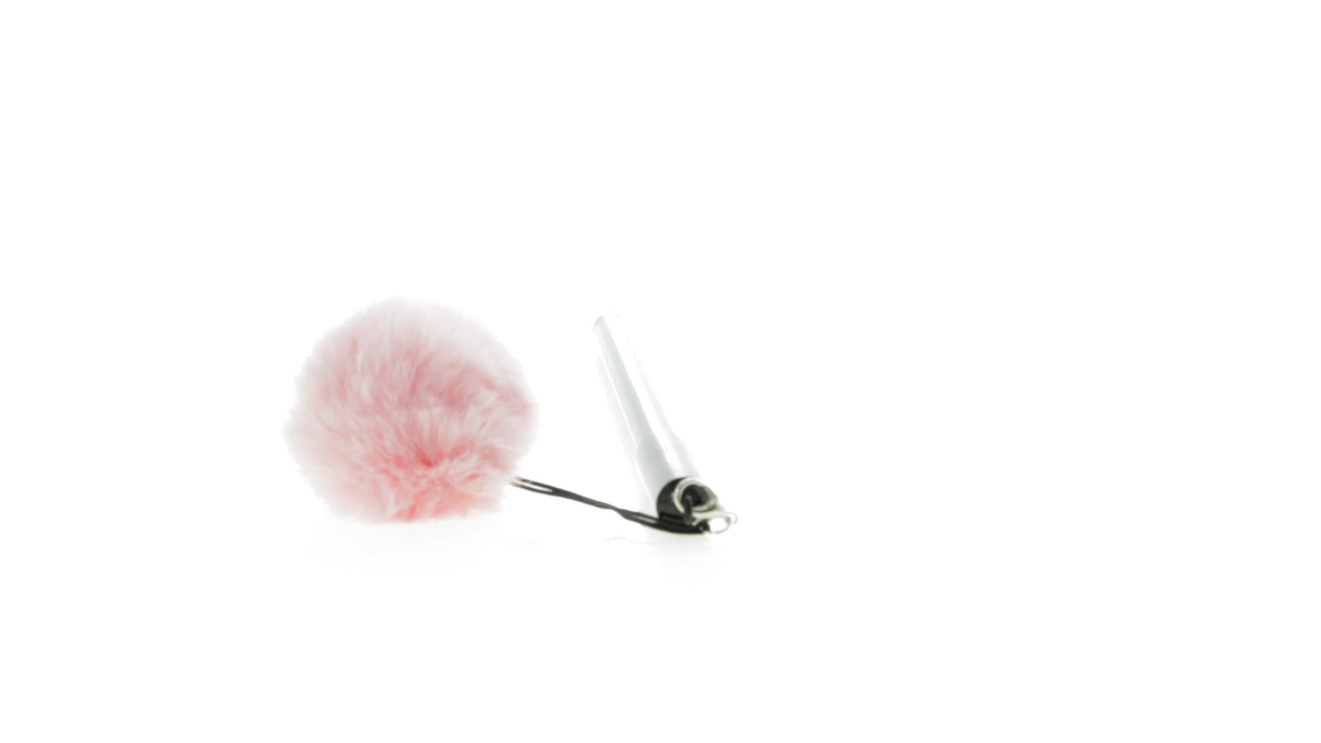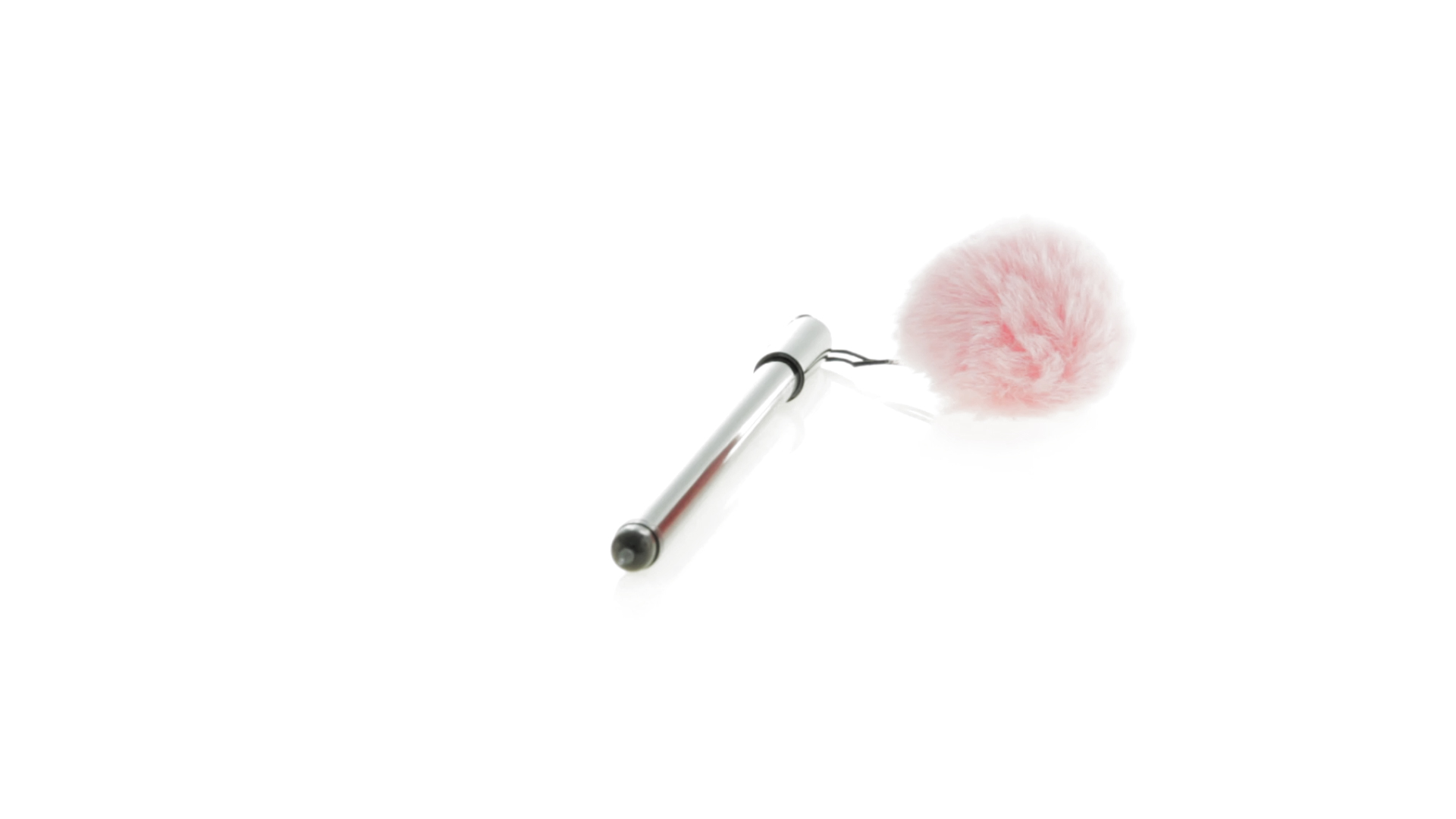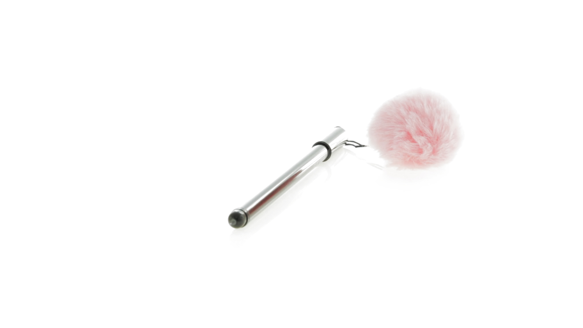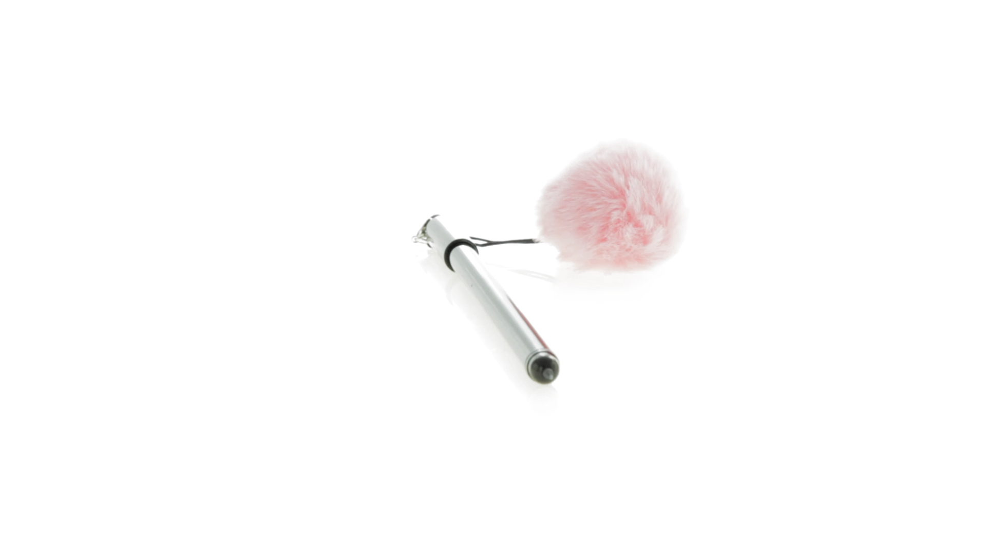 Auffälliger Kugelschreiber mit Kappe, Gel-Tinte und Bommel. Mit Gehäuse in mattem Schwarz und Bommel in Weiss oder Rosa. Jumbo-Patrone mit blauer Tinte.