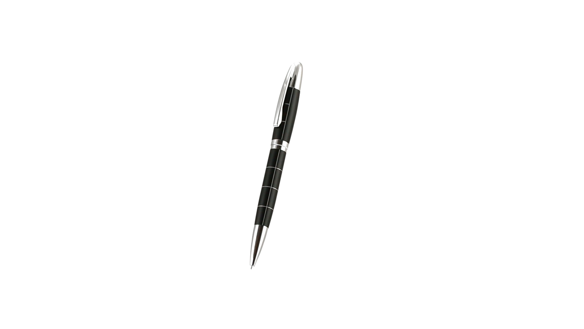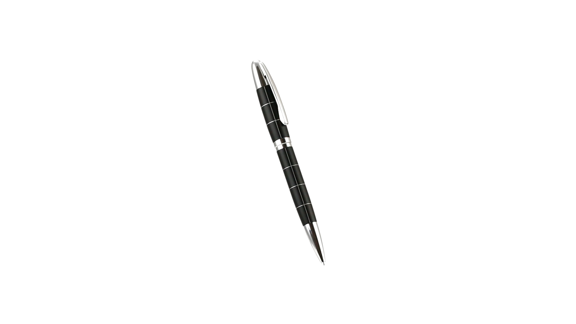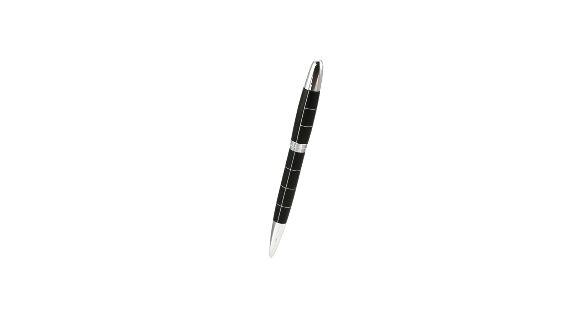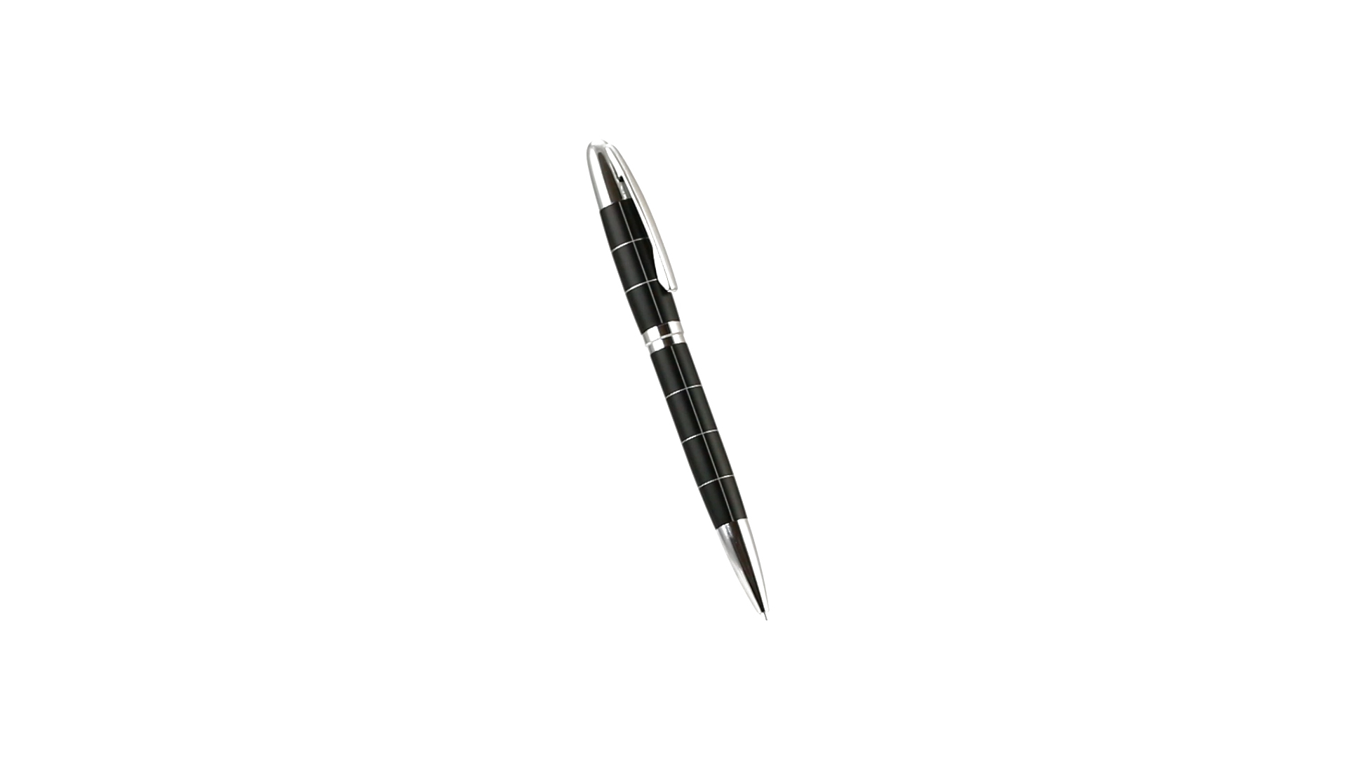 Eleganter Dreh-Kugelschreiber mit schlichtem zweifarbigem Design. Geschmeidiger Metallschaft mit Kontrastdetails in Silber. Präsentiert in einer eleganten, individuellen Box in Schwarz mit Magnetverschluss. Jumbo-Patrone mit blauer Tinte und Ersatzpatrone.
