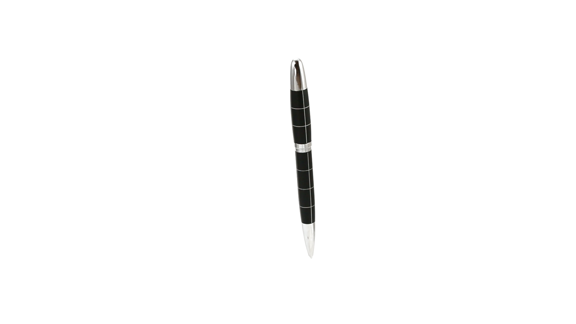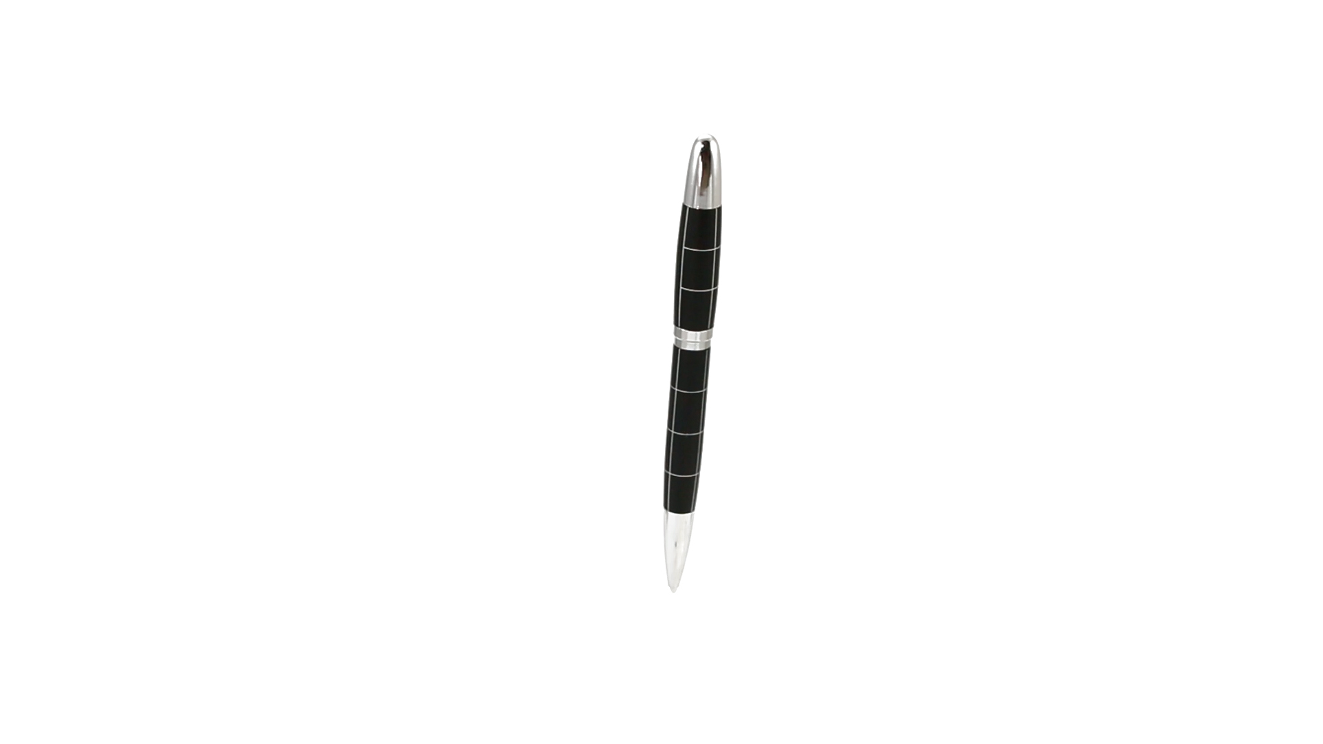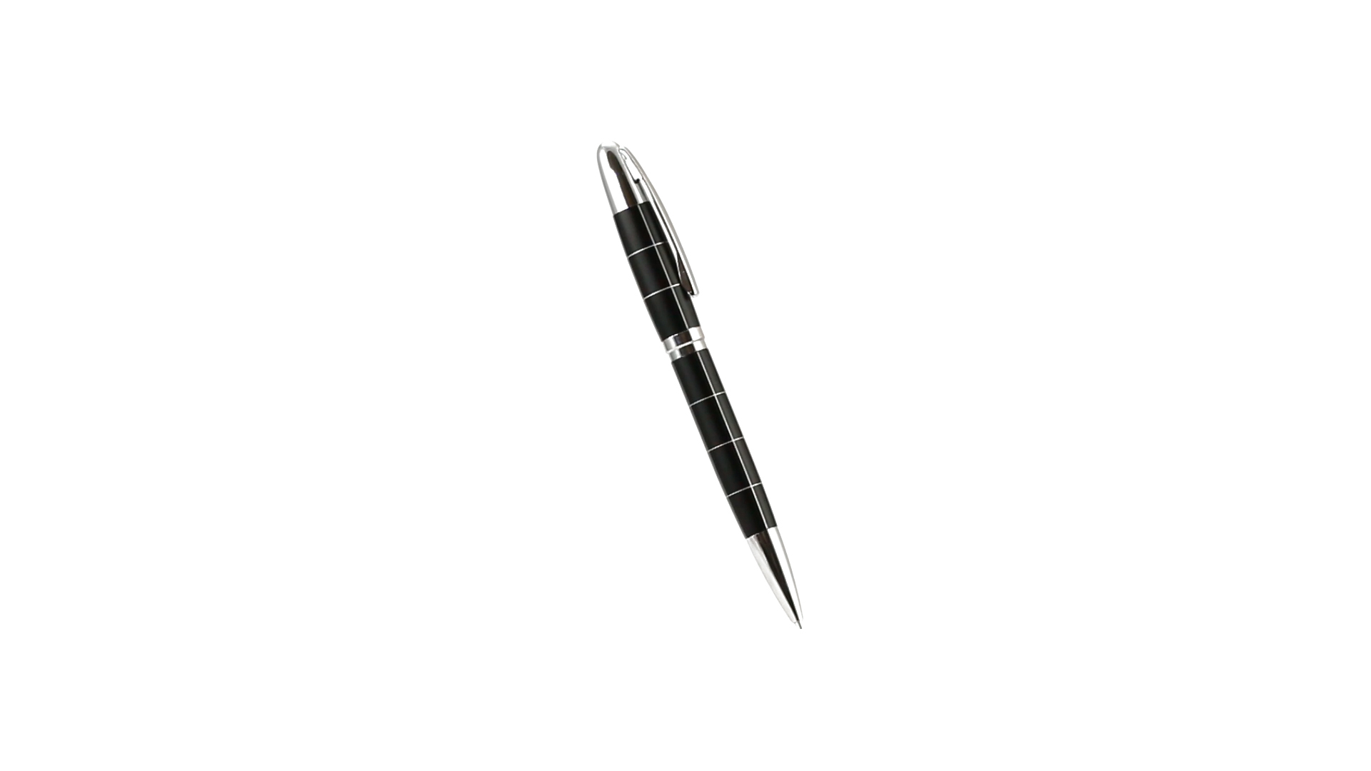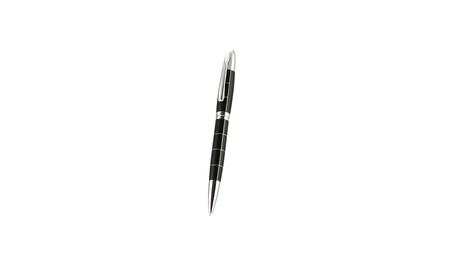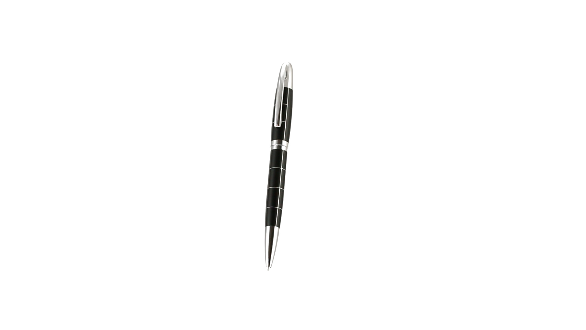 Eleganter Dreh-Kugelschreiber mit schlichtem zweifarbigem Design. Geschmeidiger Metallschaft mit Kontrastdetails in Silber. Präsentiert in einer eleganten, individuellen Box in Schwarz mit Magnetverschluss. Jumbo-Patrone mit blauer Tinte und Ersatzpatrone.