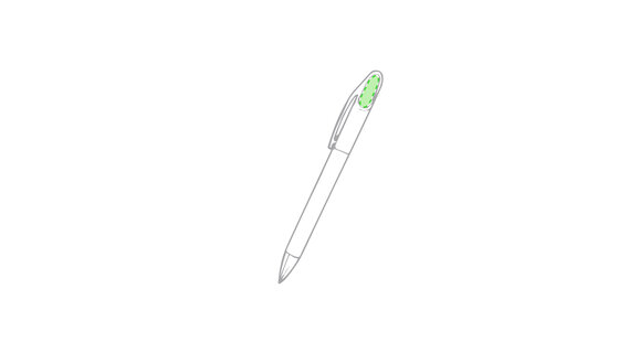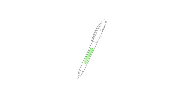 Druck-Kugelschreiber mit originellem minimalistischem Design und geschmeidiger Oberfläche in kräftigen Farben mit Kontrastdetails in Silber. Die obere Spitze wurde speziell entworfen für die Personalisierung mittels Doming / 3D Gel-Aufklebern. Blaue Tinte.