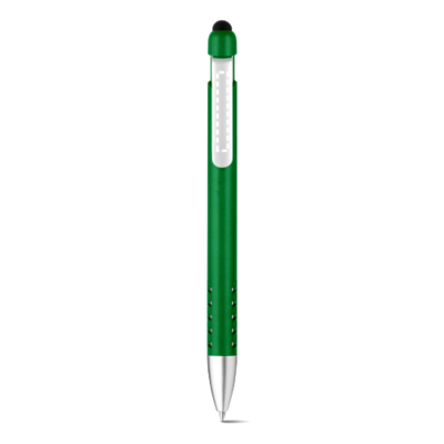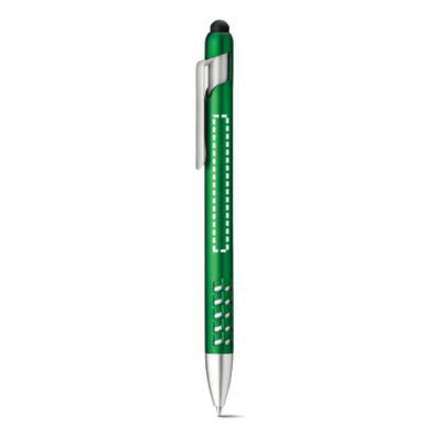 Kugelschreiber mit Touchpen-Funktion und Smartphonehalter. Strukturierte silberne Details an der Spitze. ø11 x 143 mm