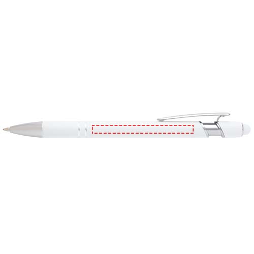 Der Kish Kugelschreiber in Silber hat einen Schaft aus recyceltem Aluminium und einen Stylus aus Silikon. Recyceltes Aluminium reduziert die Menge an Deponiemüll, schont die natürlichen Ressourcen und reduziert die Treibhausgasemissionen. Tintenfarbe: Blau. Schreiblänge: 800 Meter. Schreibspitze: 1 mm.