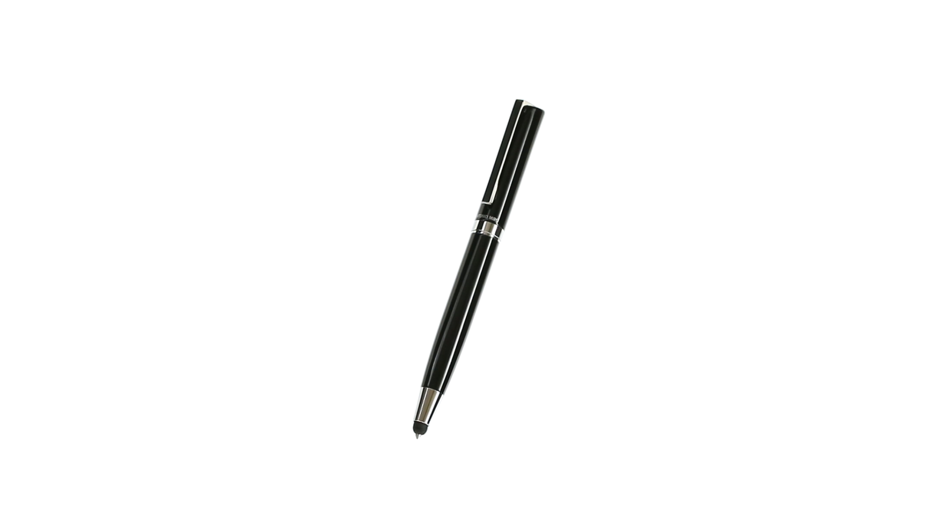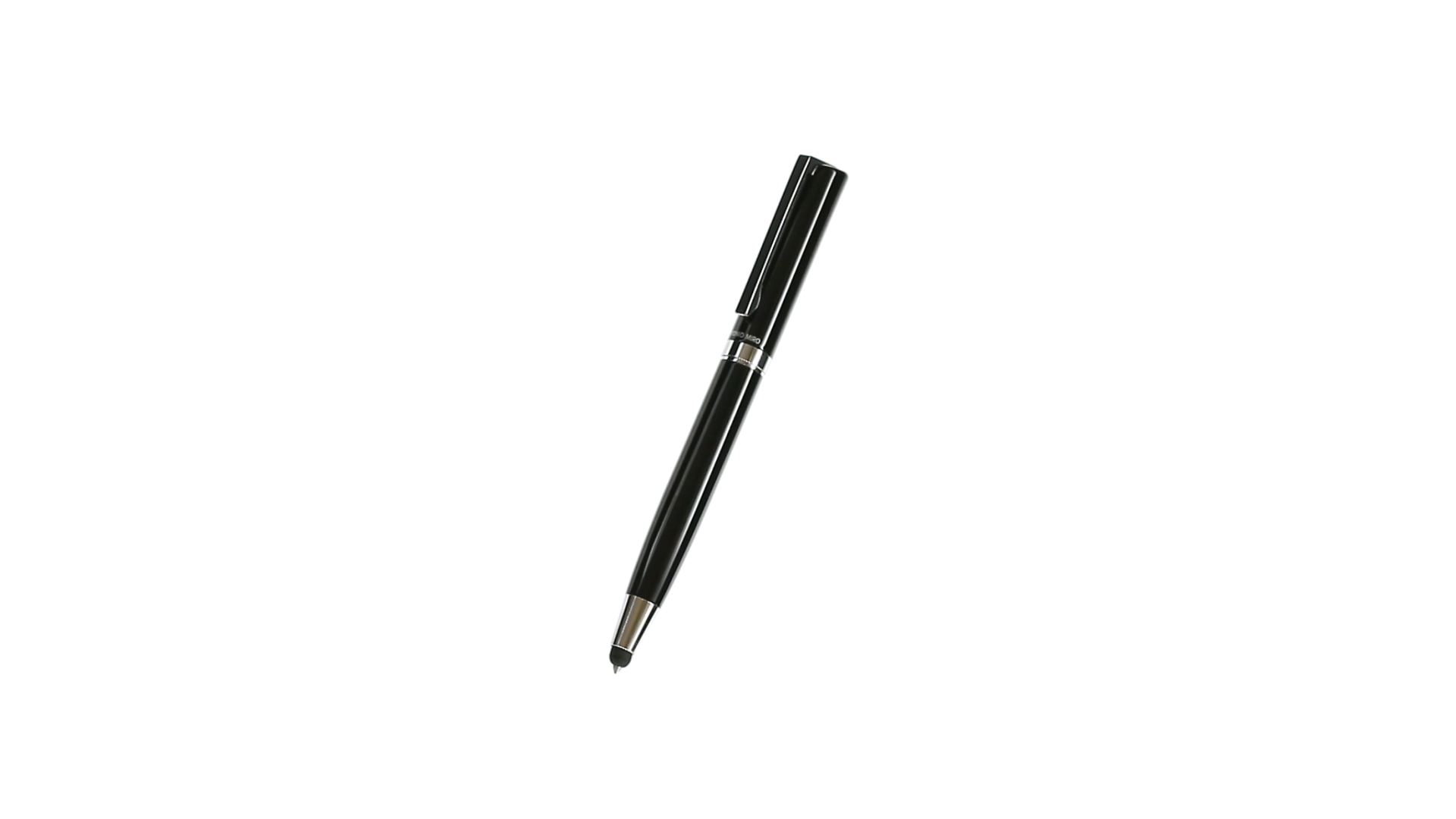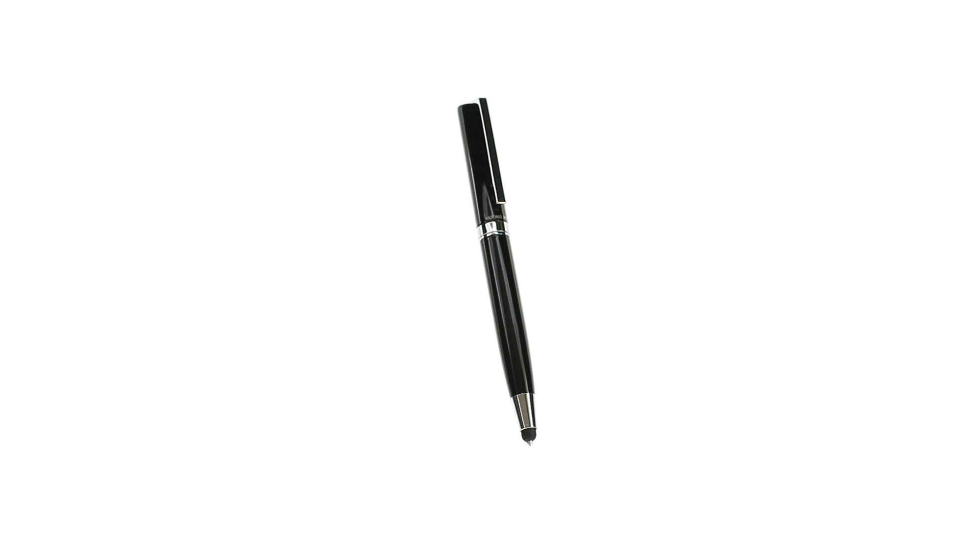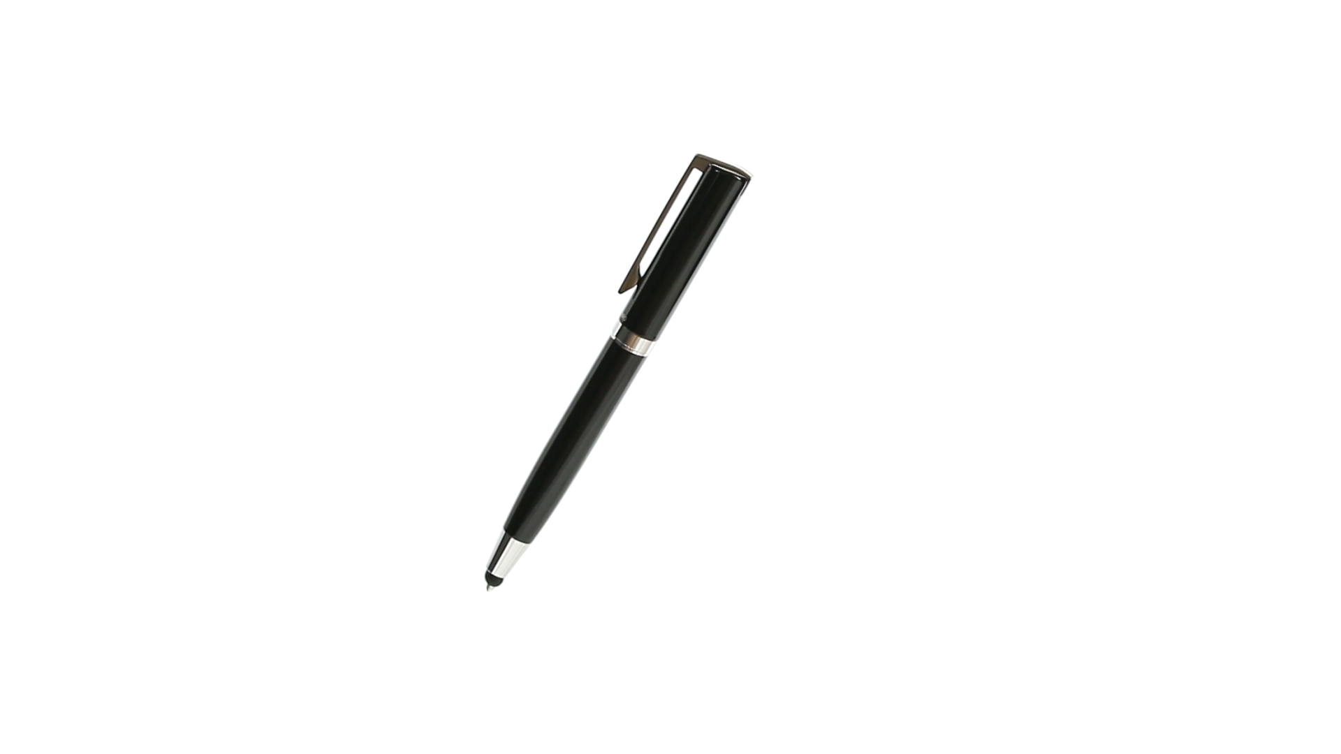 Dreh-Kugelschreiber von Antonio Miró, mit geschmeidigem Metallschaft in elegantem Schwarz. Mit Design-Clip und Spitze in passender Farbe. Präsentiert in einer schwarzen Schachtel mit dem Markenlogo. Blaue Tinte.