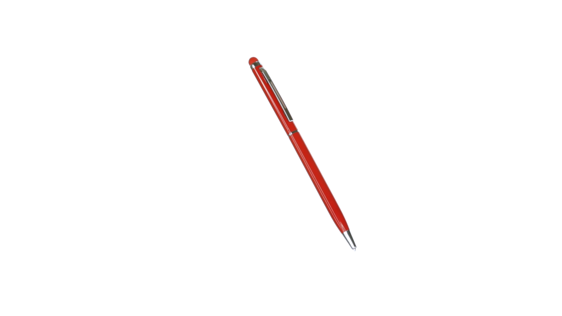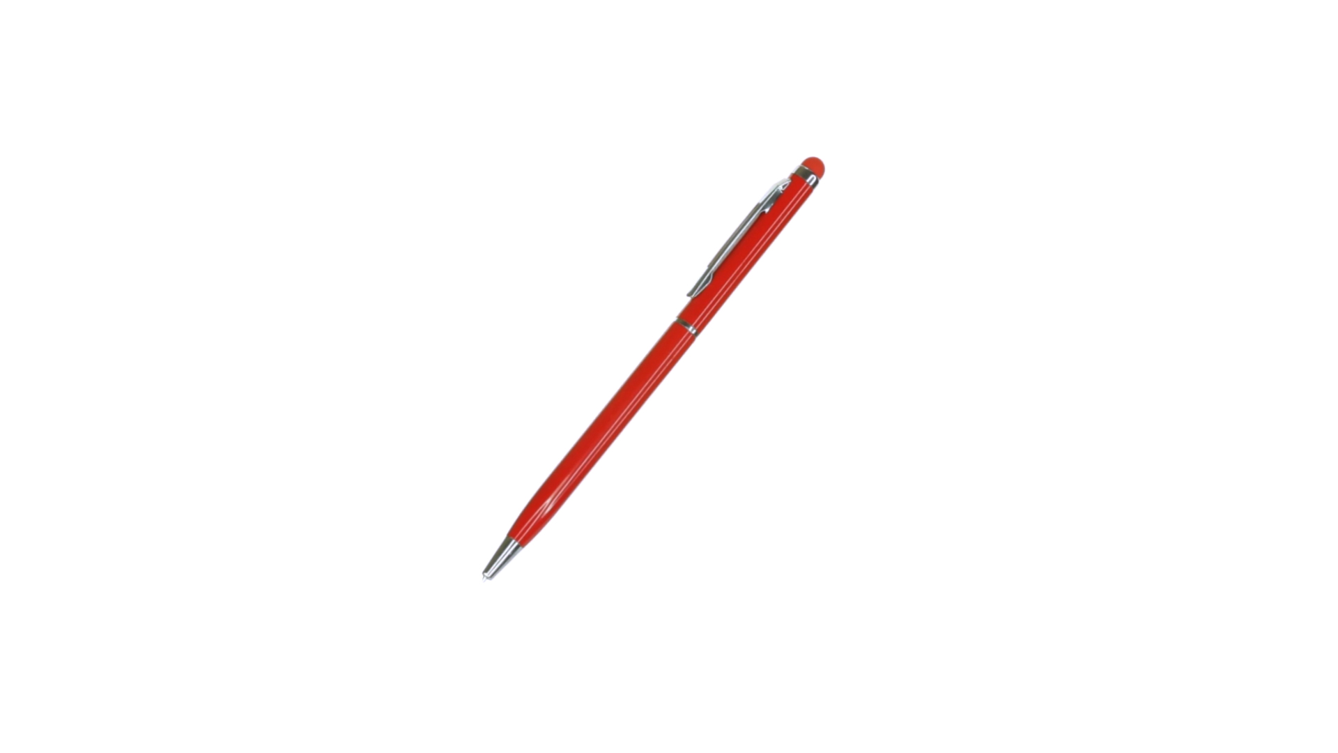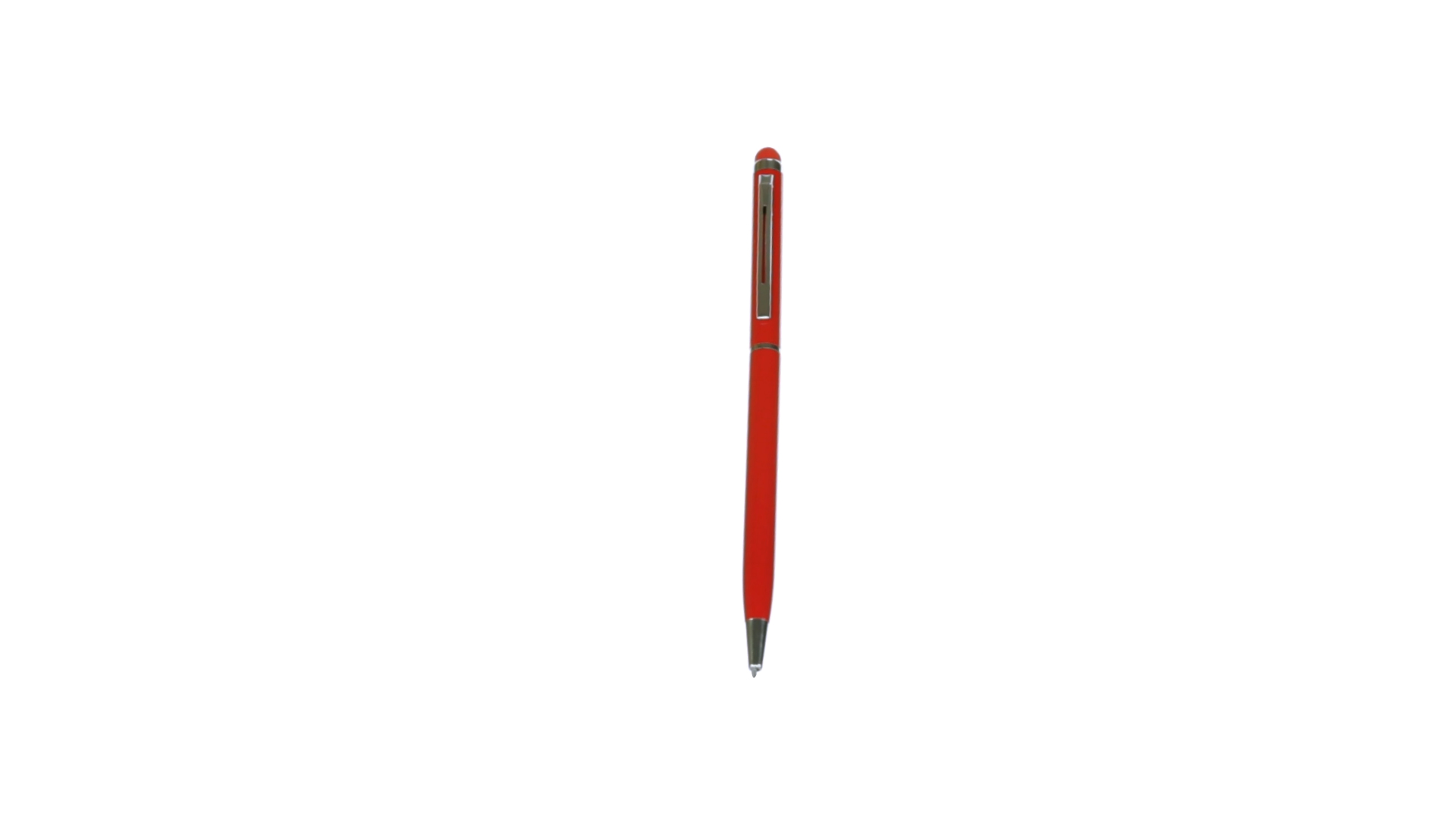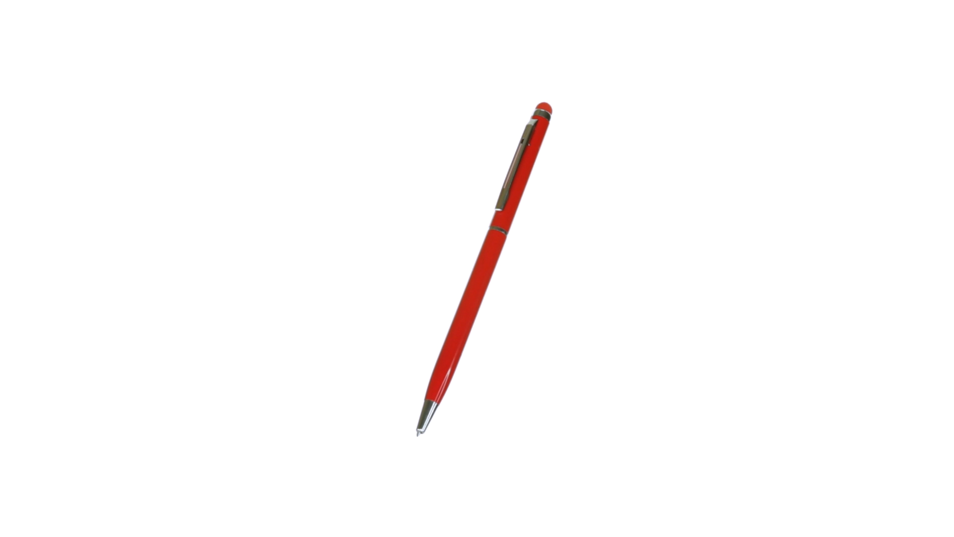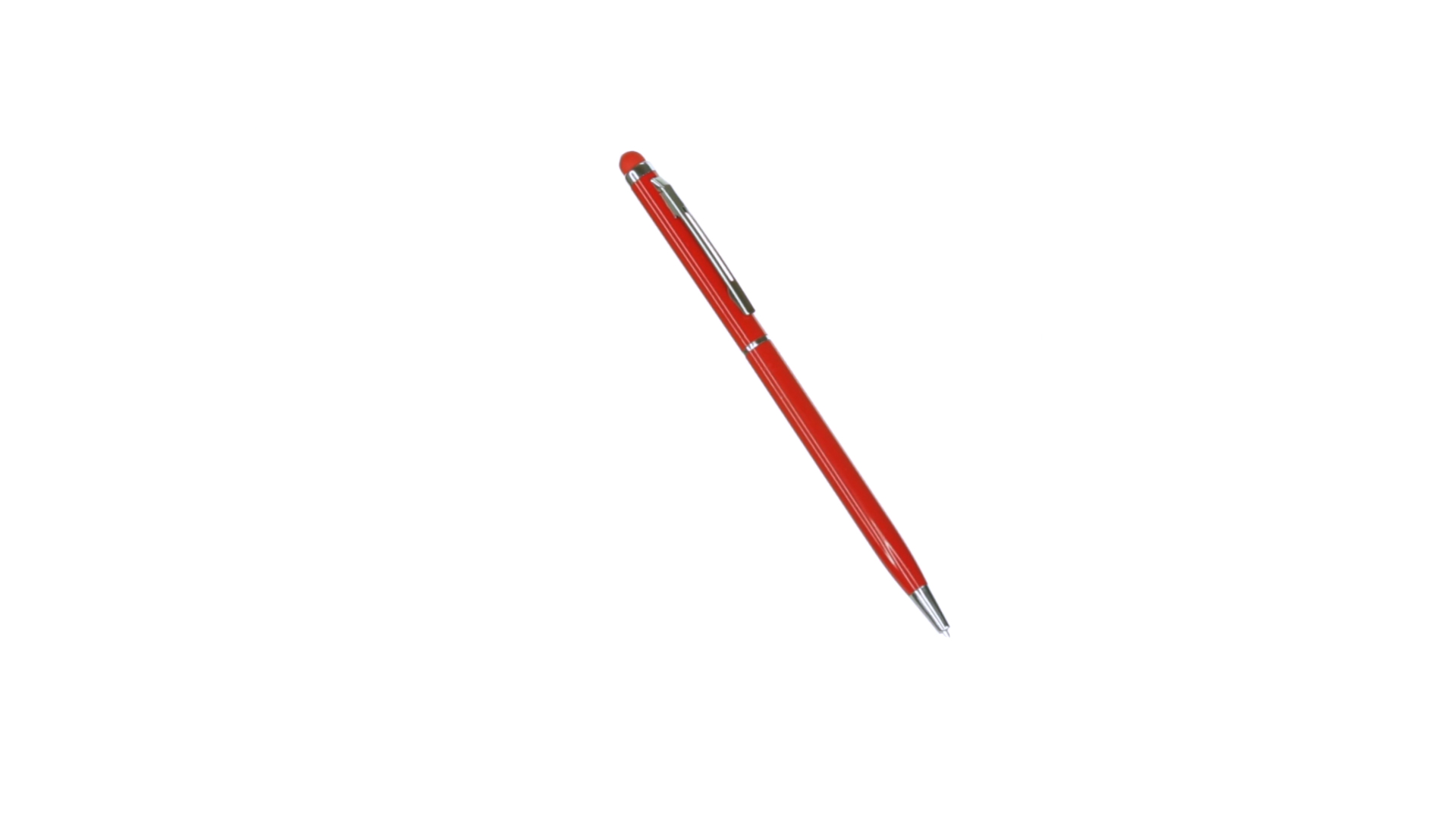 Dreh-Kugelschreiber mit integriertem Stylus und ultradünnem Gehäuse aus Aluminium mit geschmeidigem Metallic-Finish in verschiedenen Farben und farblich passendem Stylus. Kontrastdetails und Ringe in Silber. Blaue Tinte.