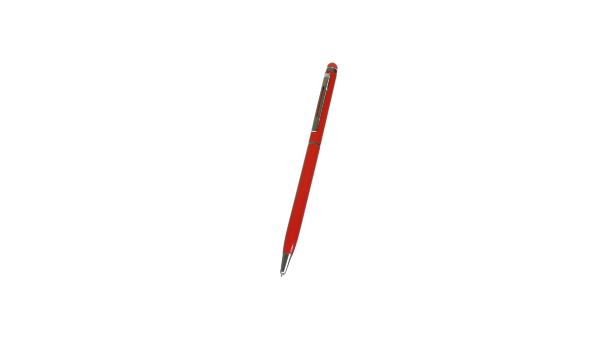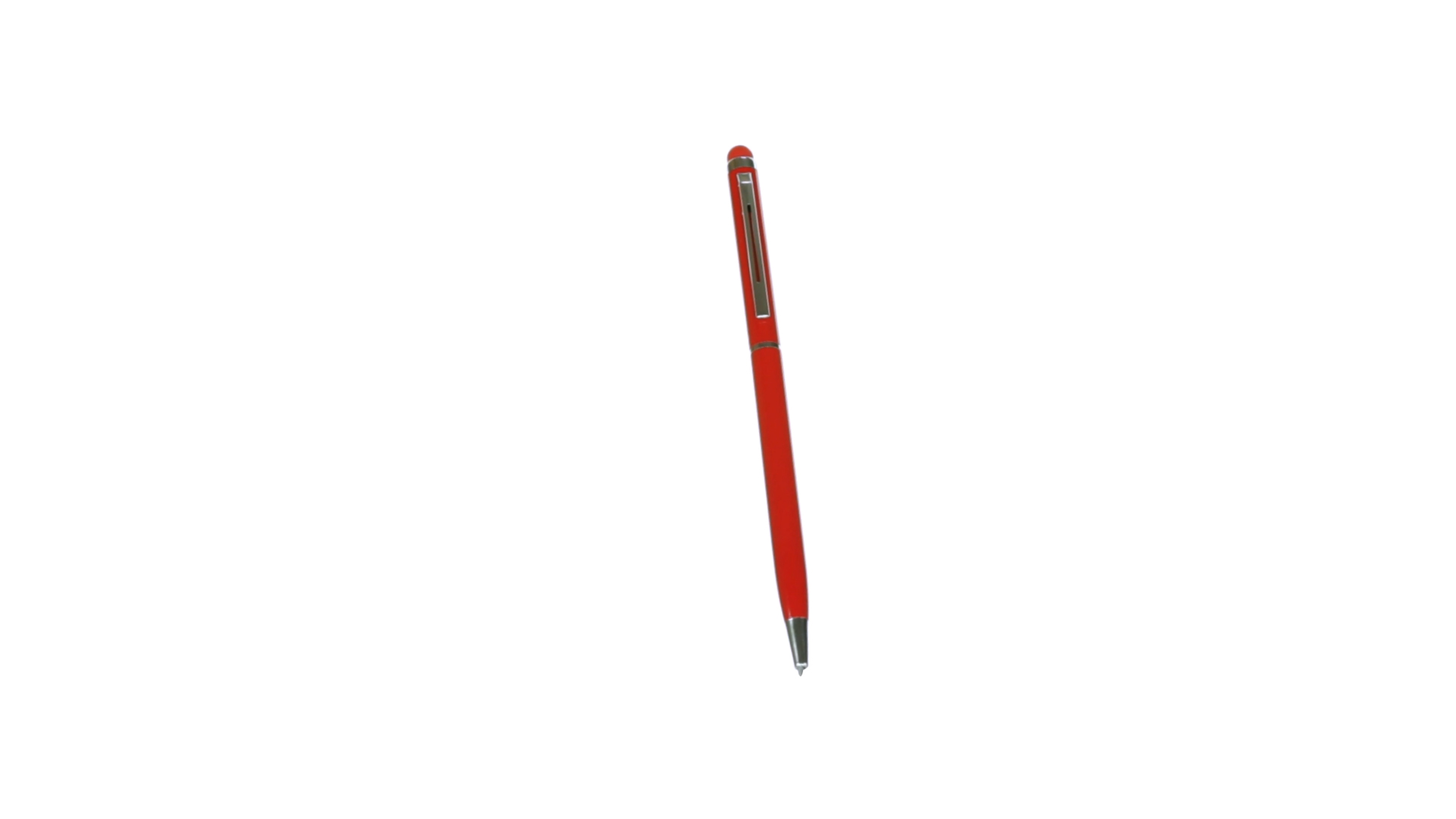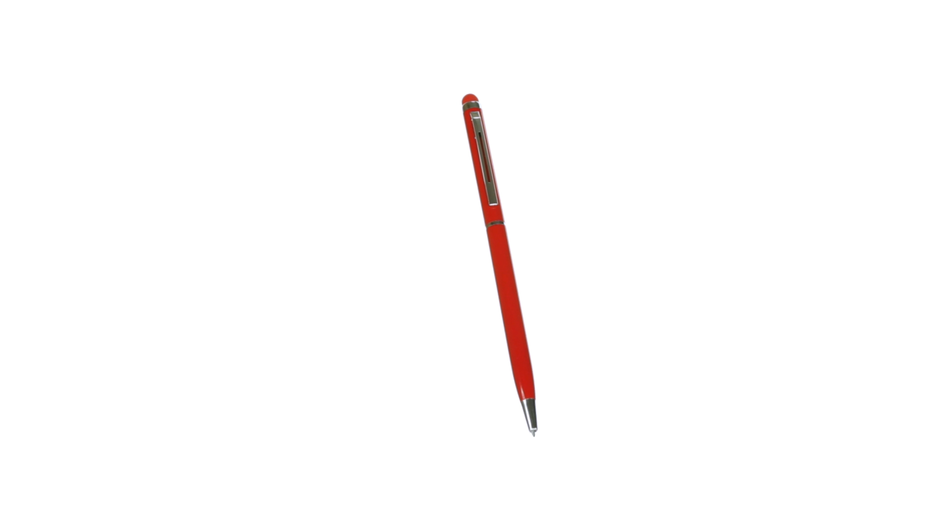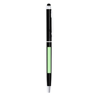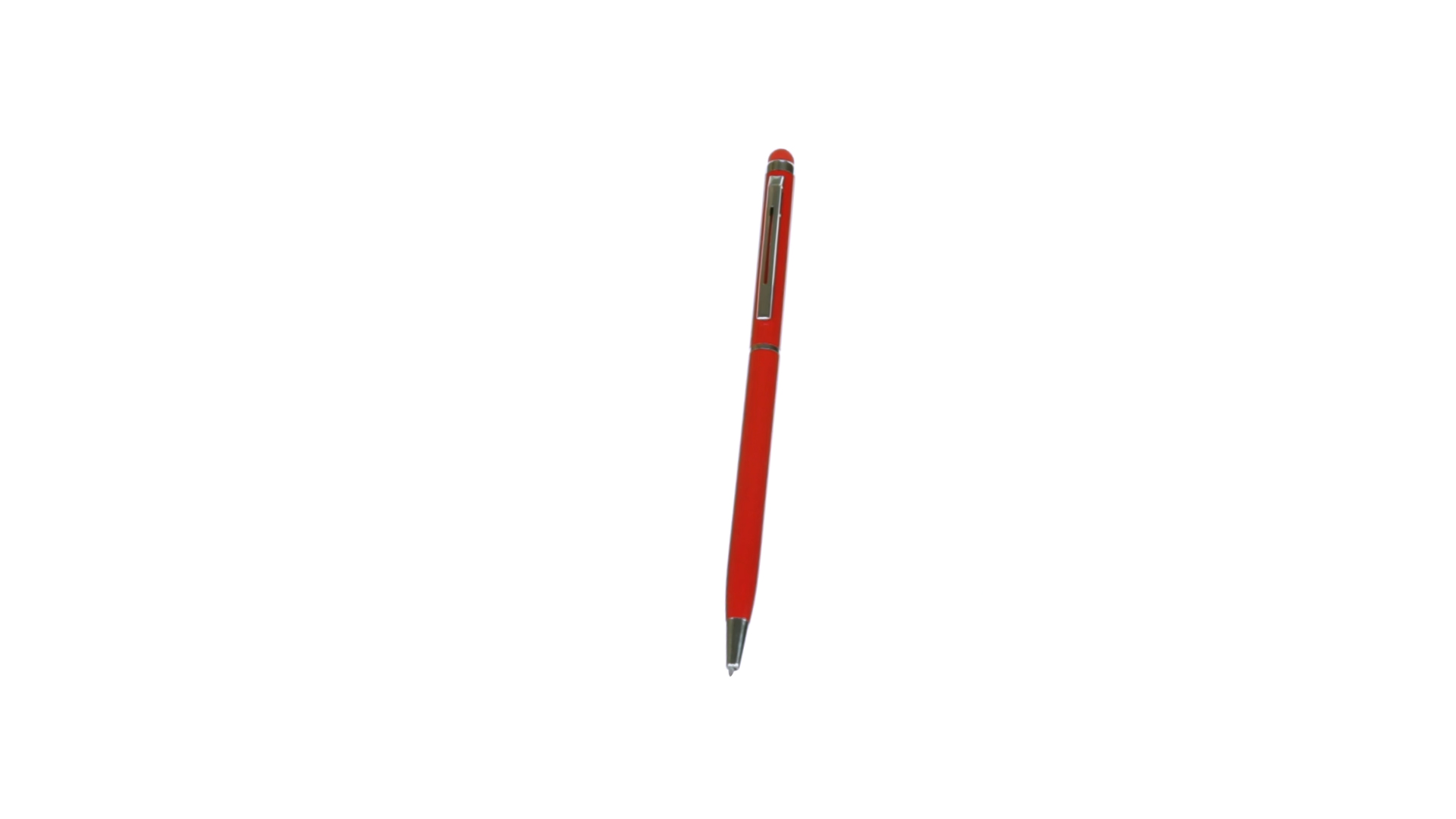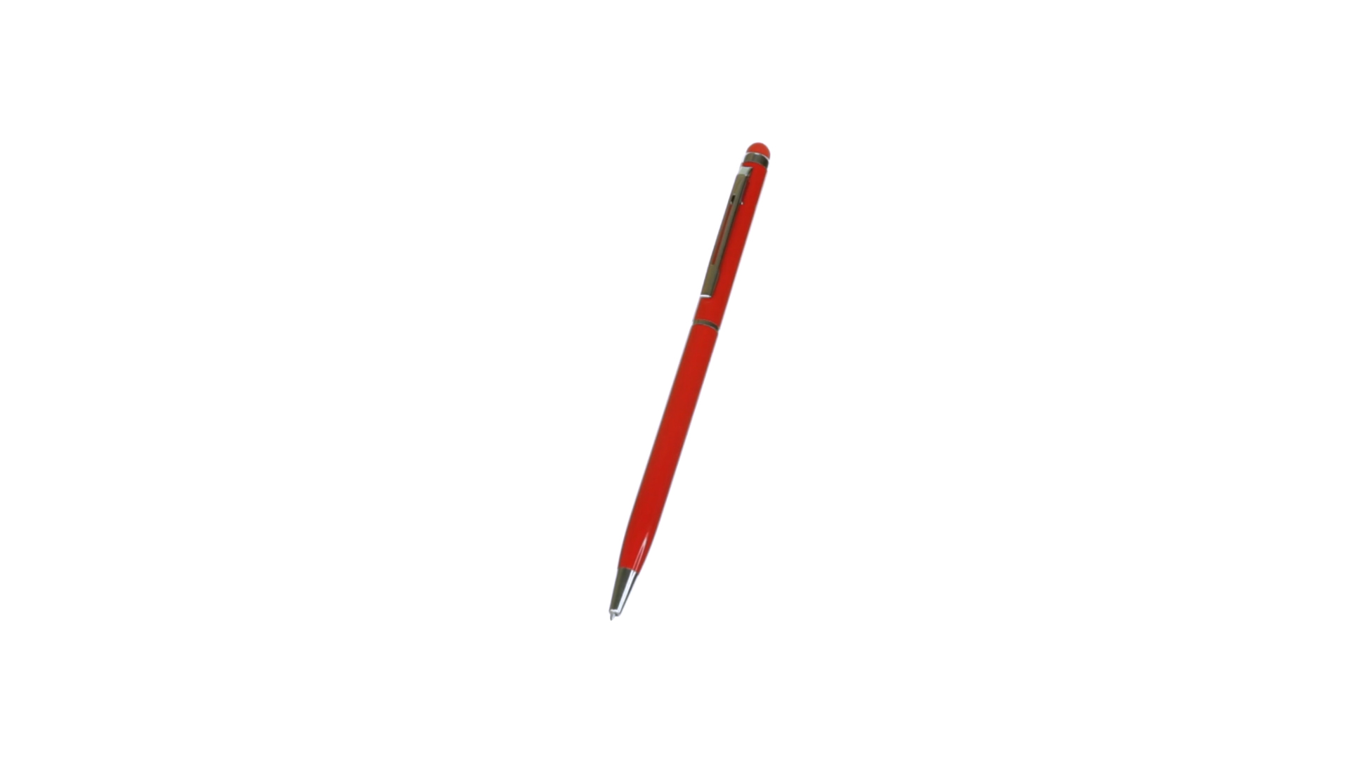 Dreh-Kugelschreiber mit integriertem Stylus und ultradünnem Gehäuse aus Aluminium mit geschmeidigem Metallic-Finish in verschiedenen Farben und farblich passendem Stylus. Kontrastdetails und Ringe in Silber. Blaue Tinte.