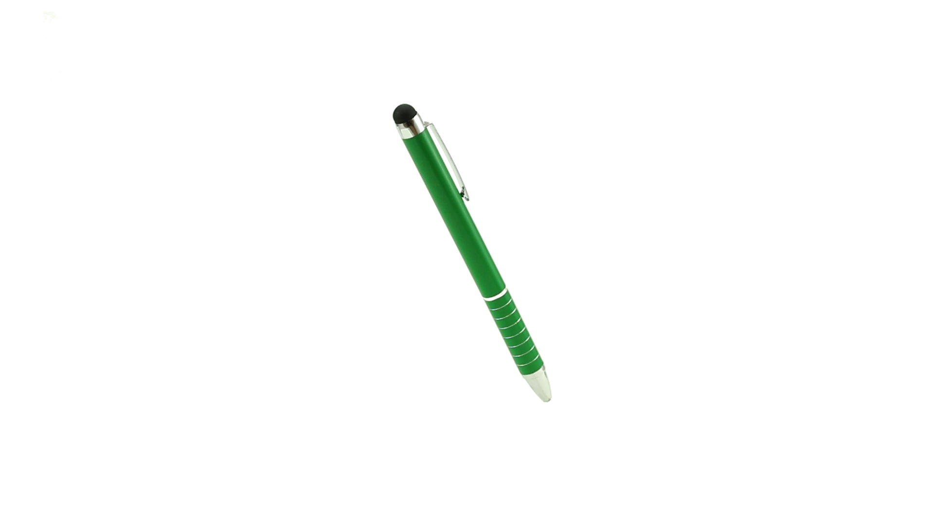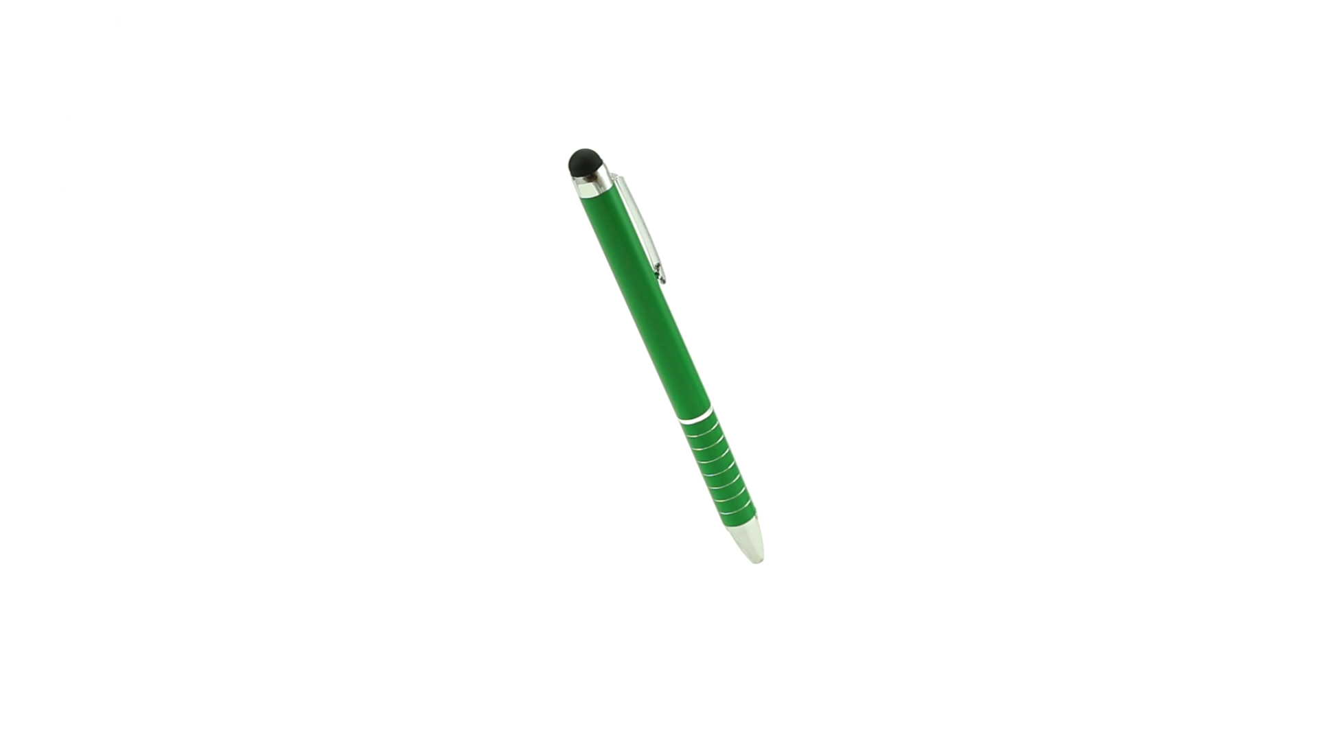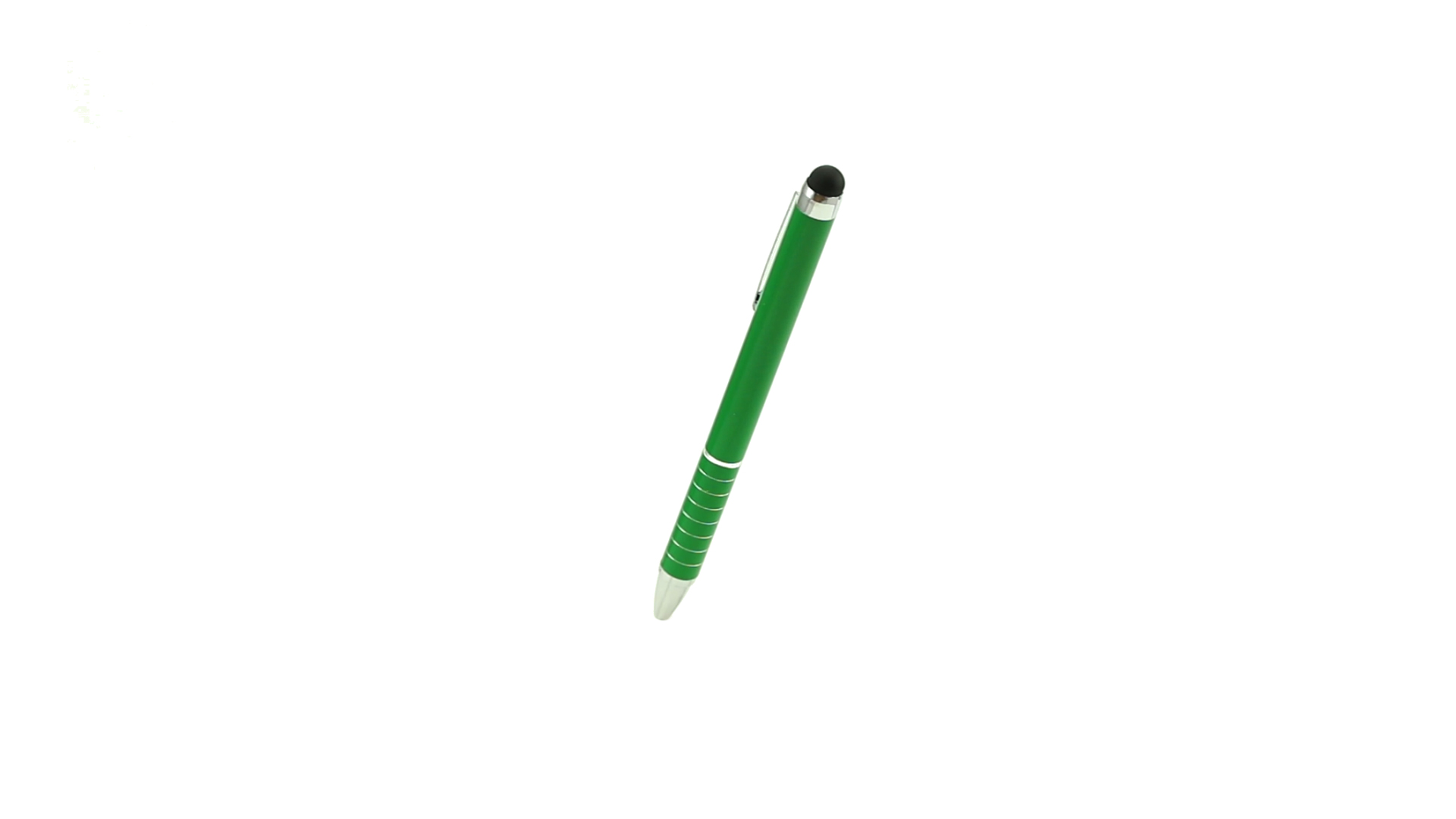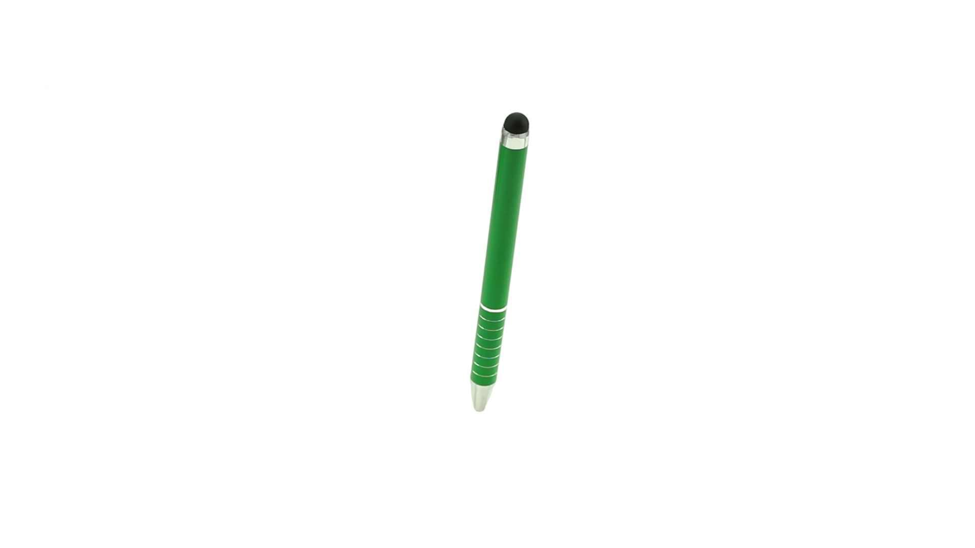 Dreh-Kugelschreiber mit Aluminiumgehäuse in Metallic-Ausführung in kräftigen Farben. Mit Stylus. Kontrastelemente und Ringe in Silber. Origineller Ring-Griff und blaue Tinte.