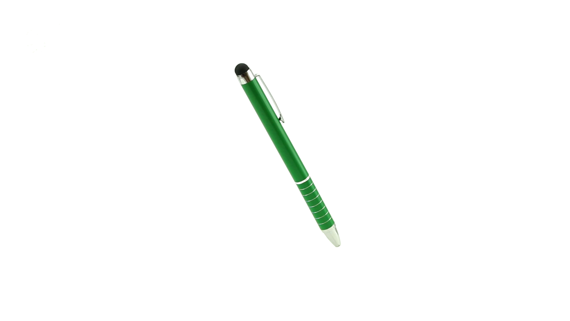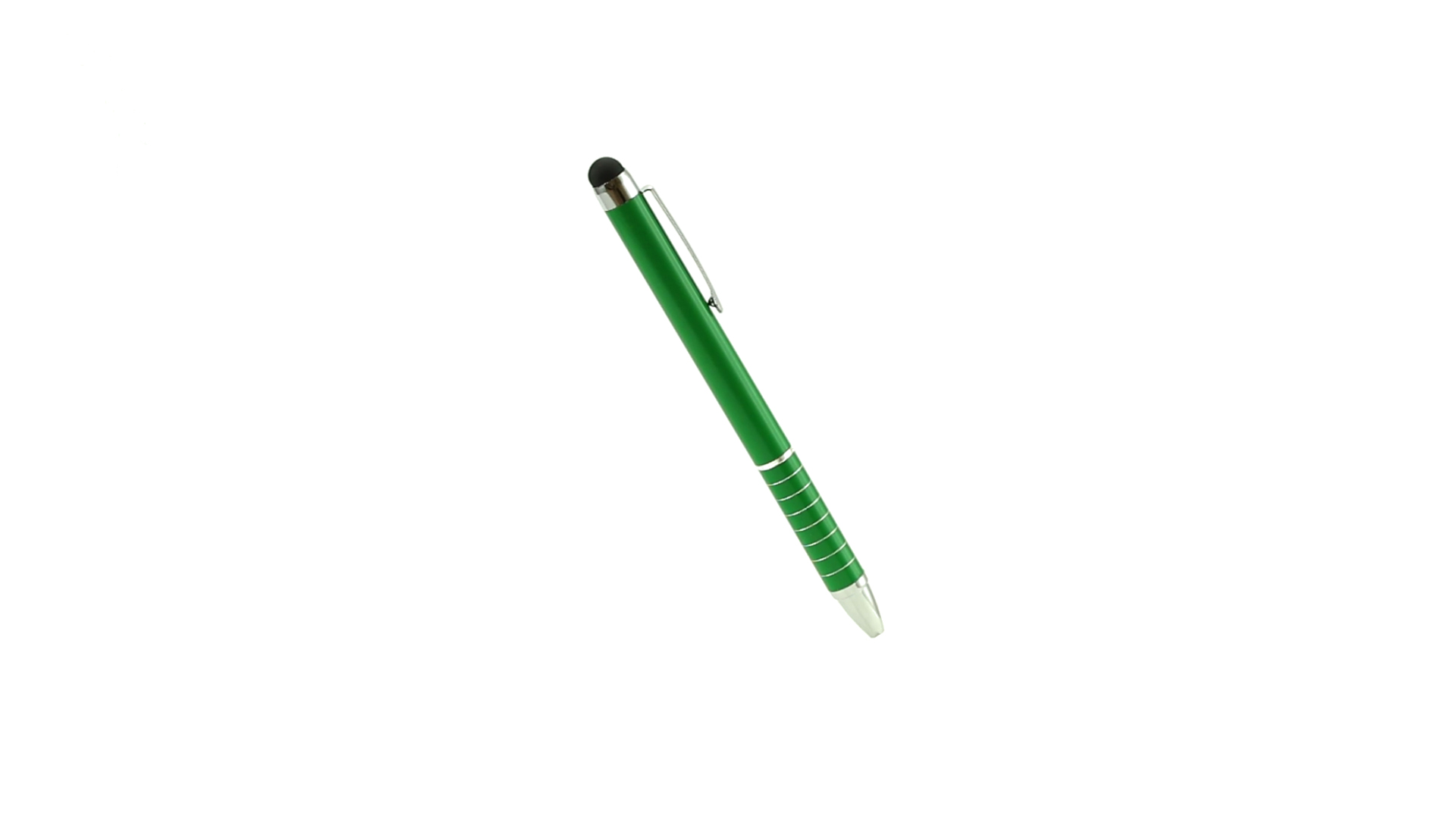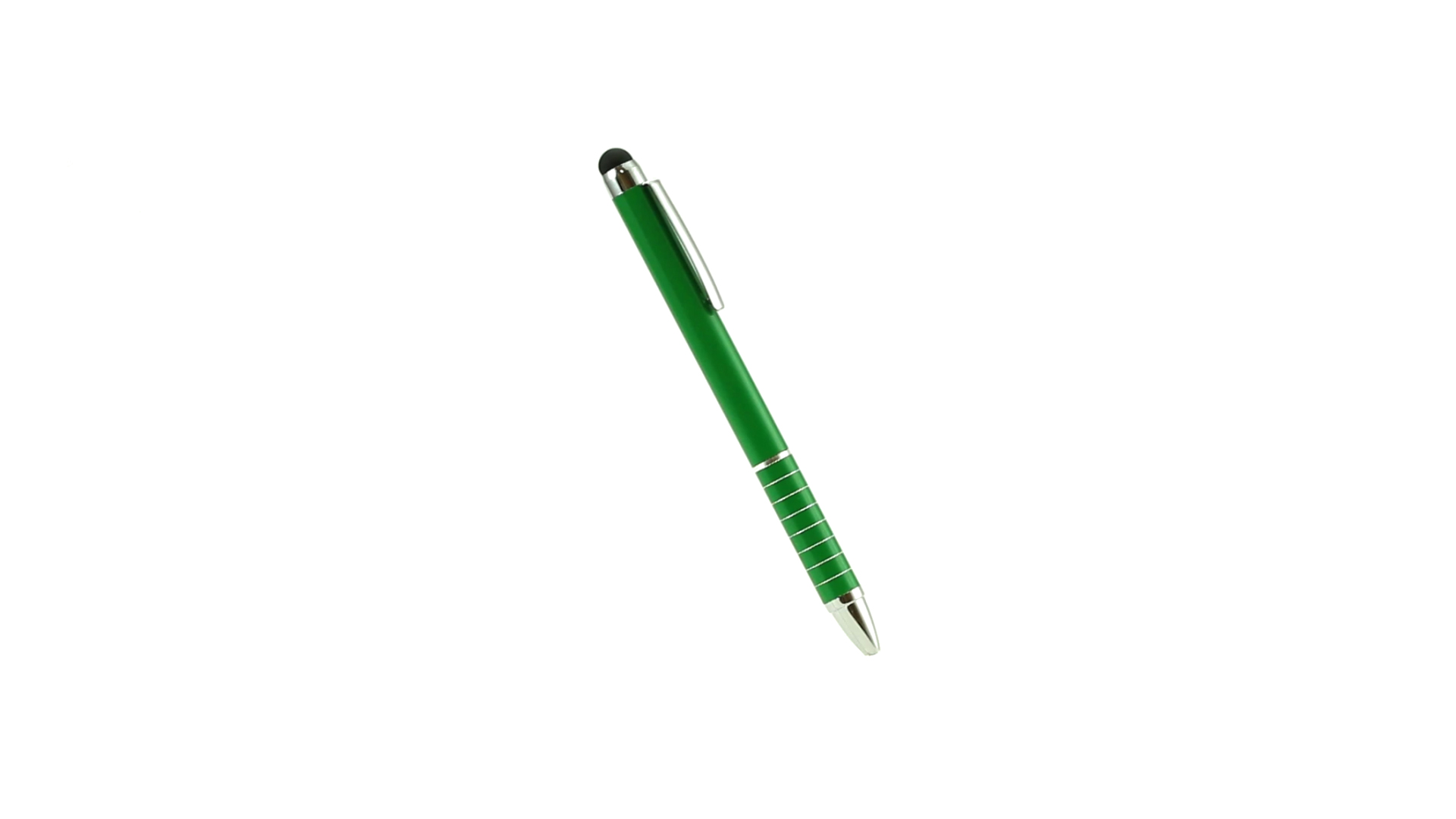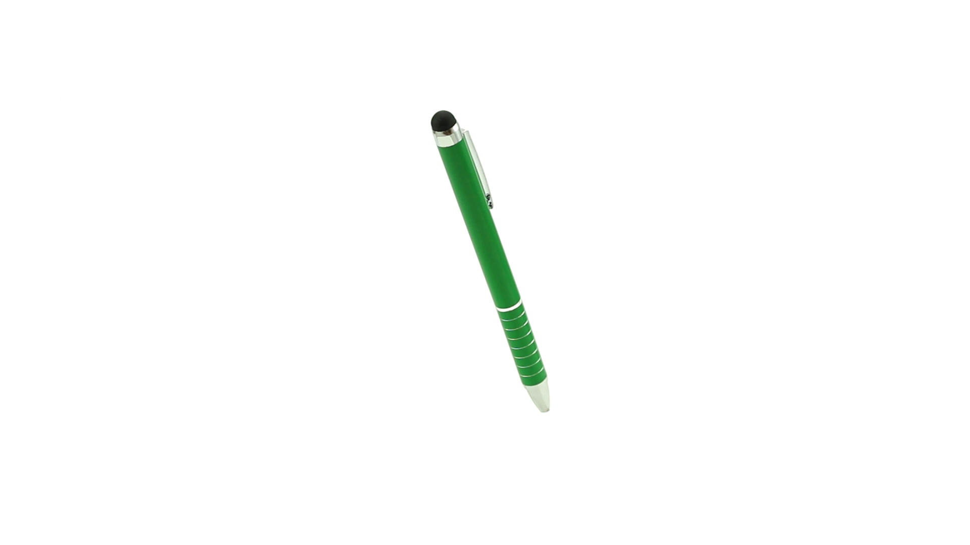 Dreh-Kugelschreiber mit Aluminiumgehäuse in Metallic-Ausführung in kräftigen Farben. Mit Stylus. Kontrastelemente und Ringe in Silber. Origineller Ring-Griff und blaue Tinte.