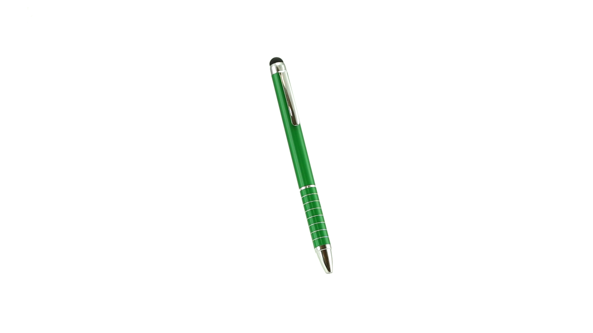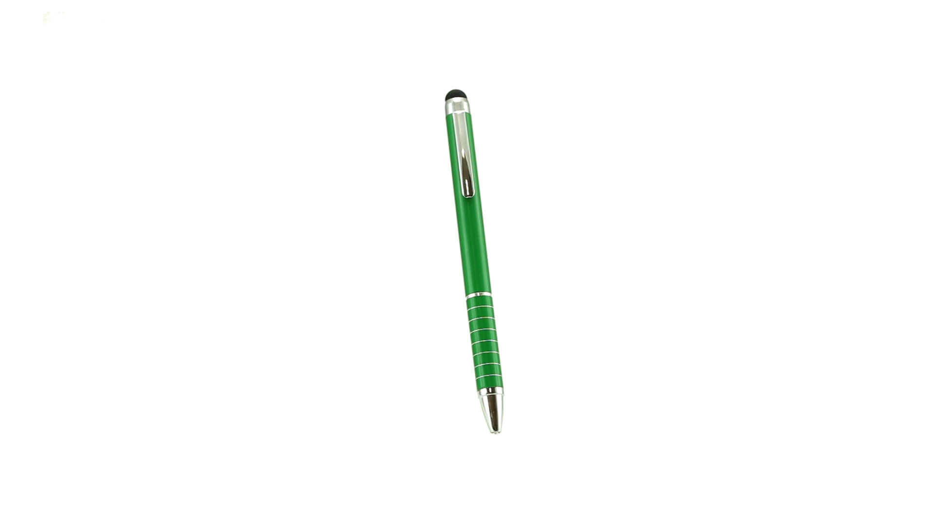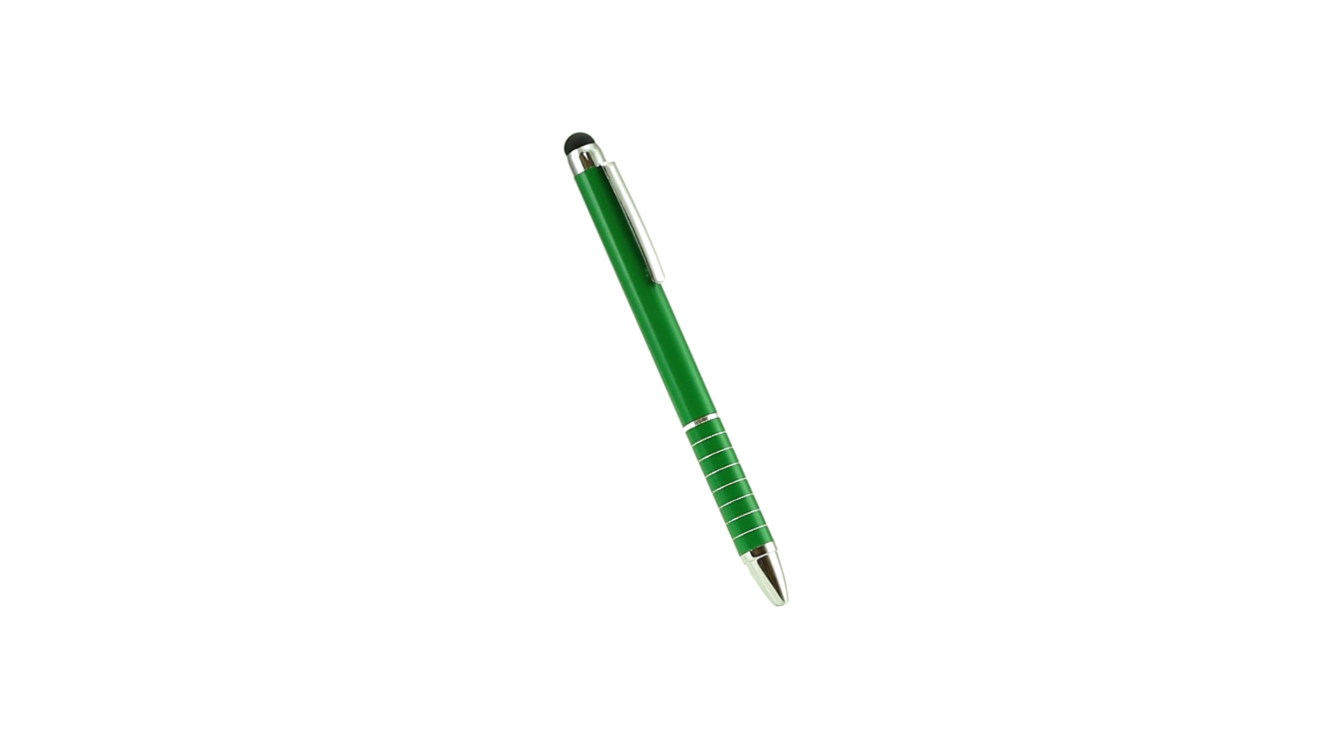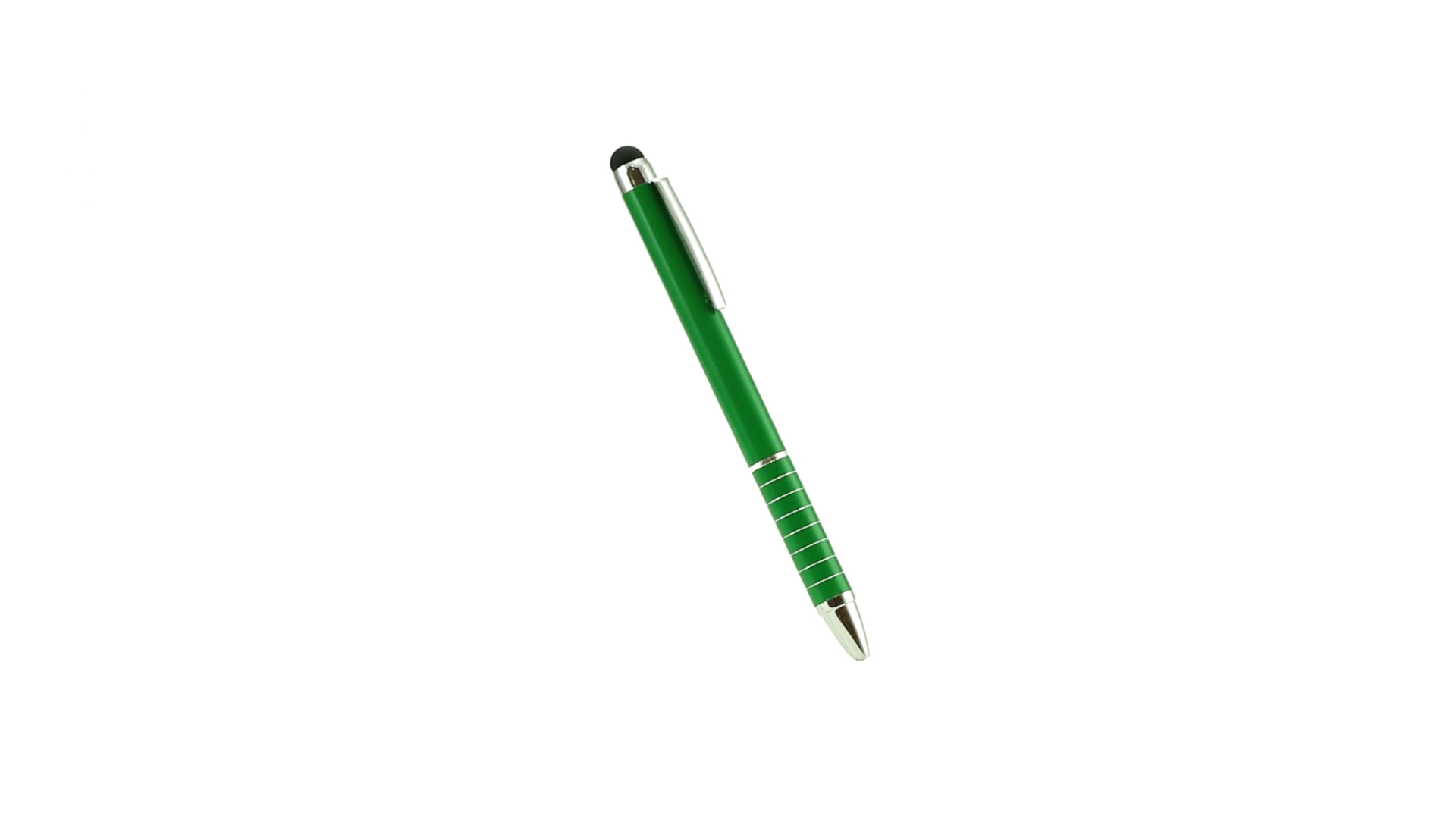 Dreh-Kugelschreiber mit Aluminiumgehäuse in Metallic-Ausführung in kräftigen Farben. Mit Stylus. Kontrastelemente und Ringe in Silber. Origineller Ring-Griff und blaue Tinte.