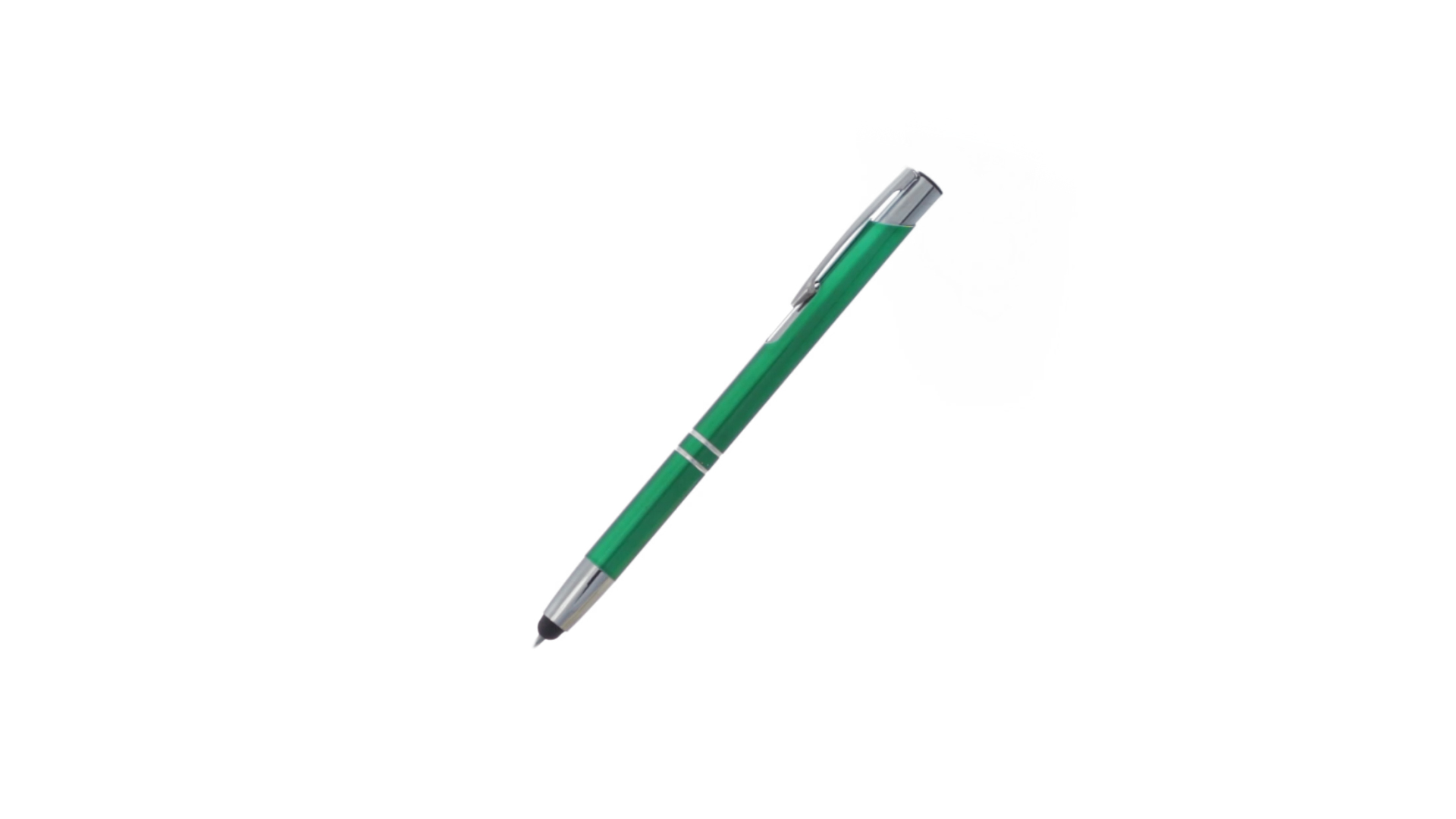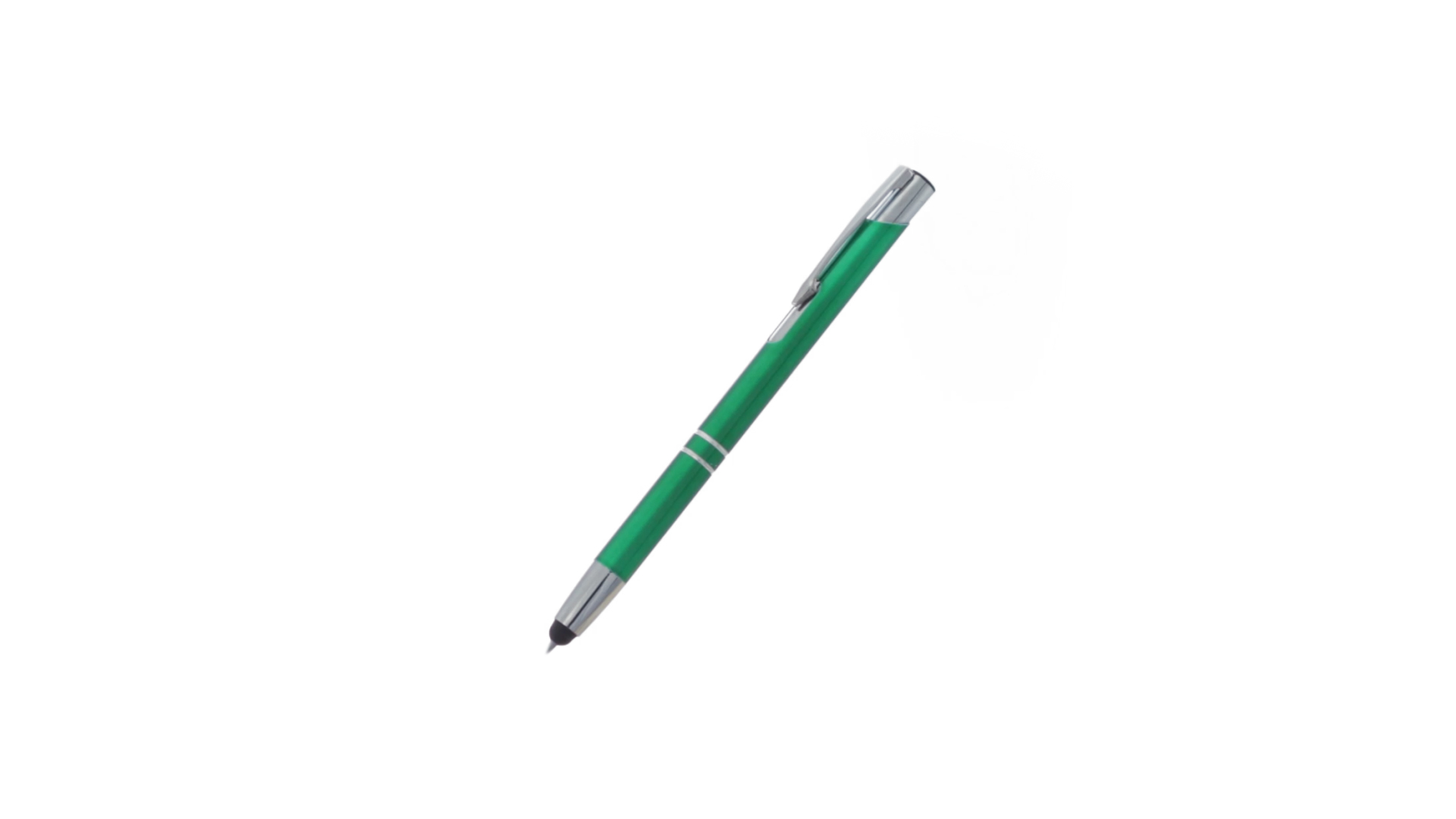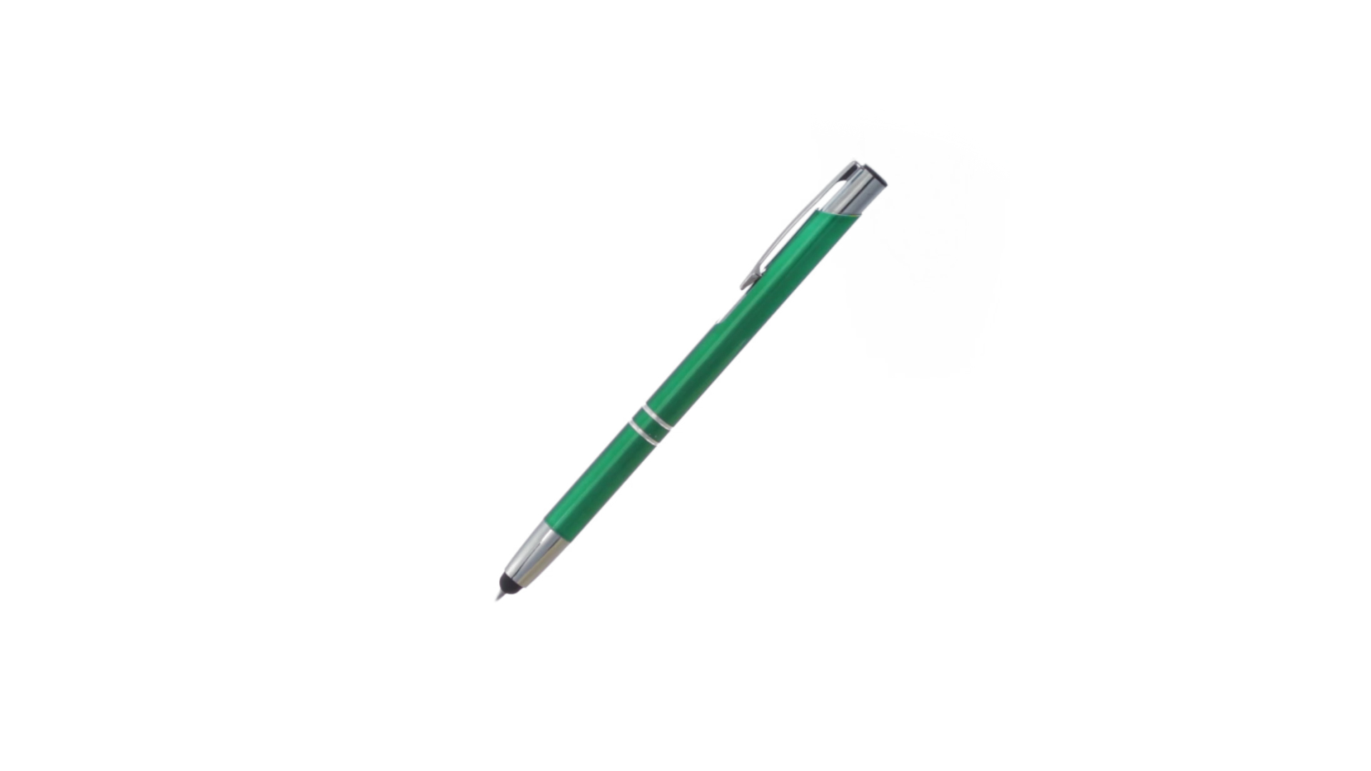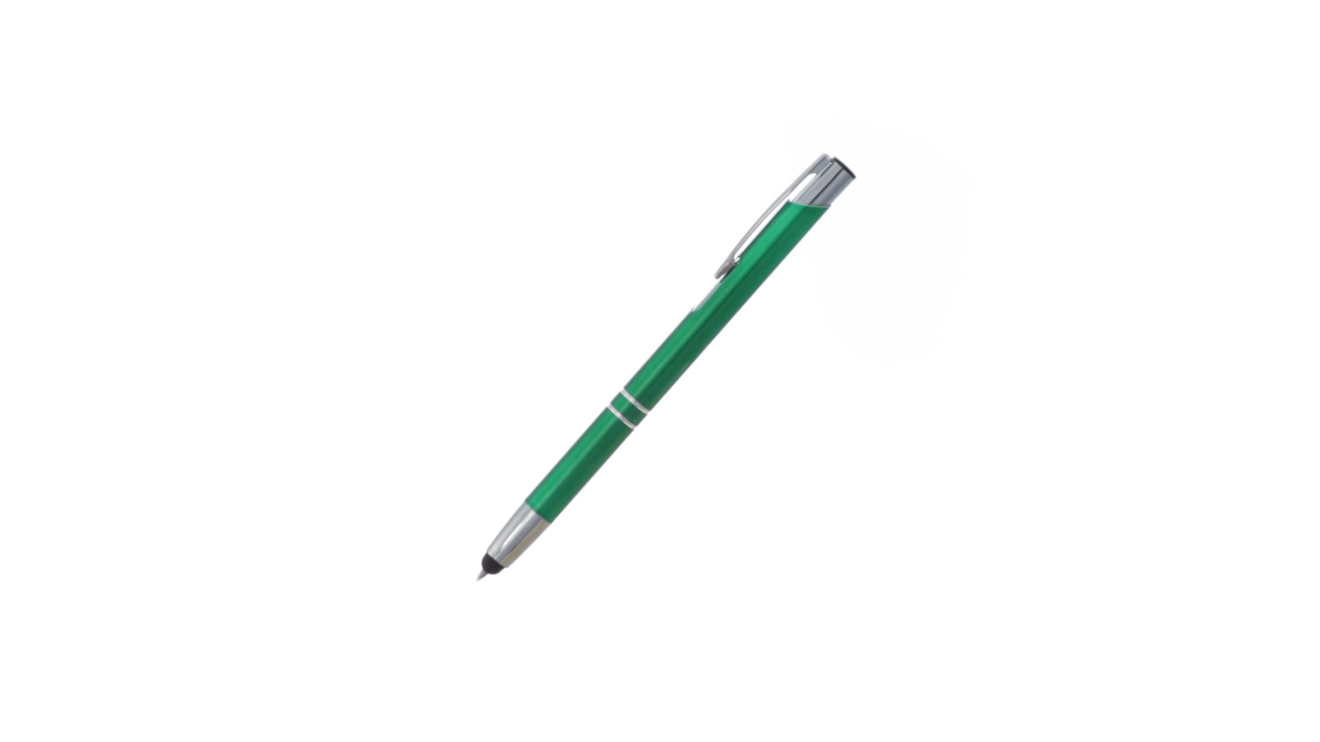 Druck-Kugelschreiber mit Stylus aus glänzendem Aluminium in lebhaften Farben. Jumbo-Patrone mit blauer Tinte.