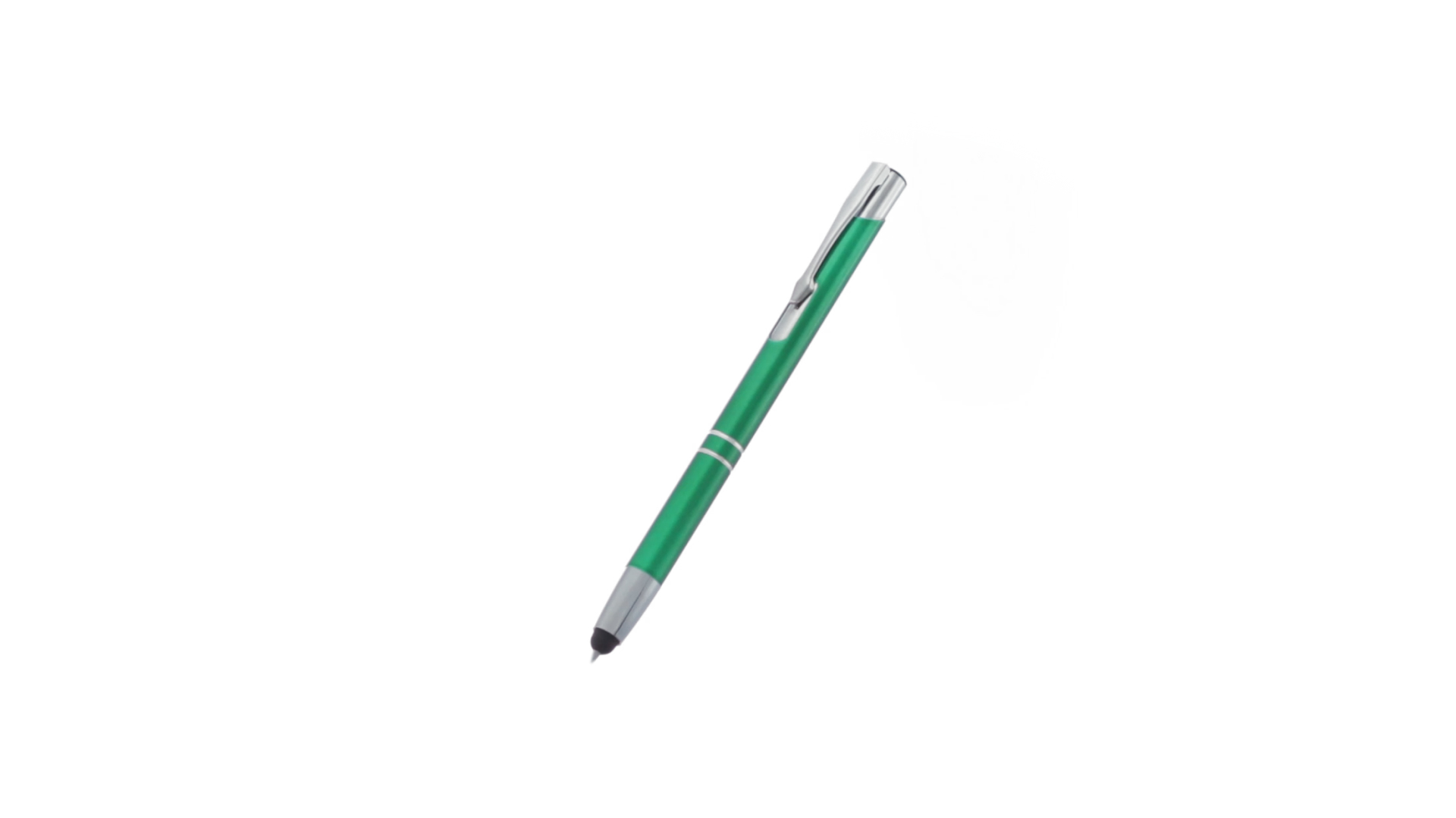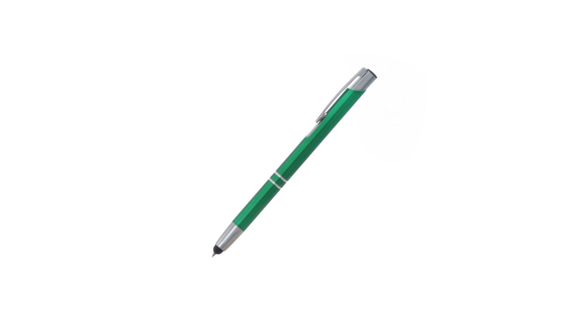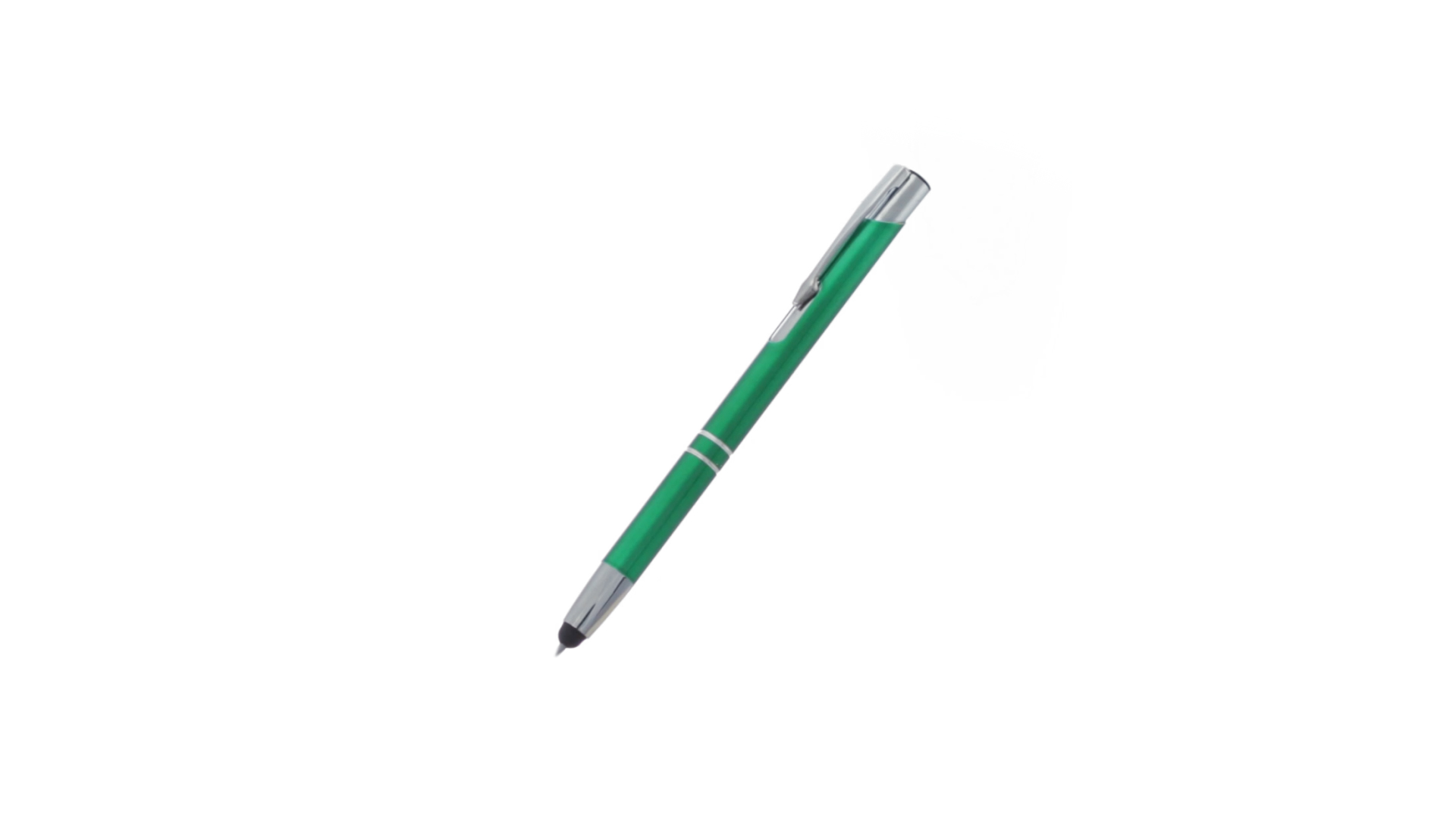 Druck-Kugelschreiber mit Stylus aus glänzendem Aluminium in lebhaften Farben. Jumbo-Patrone mit blauer Tinte.