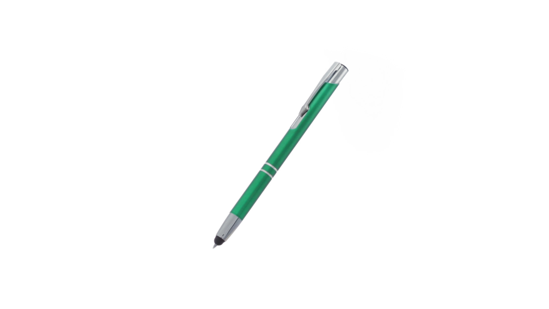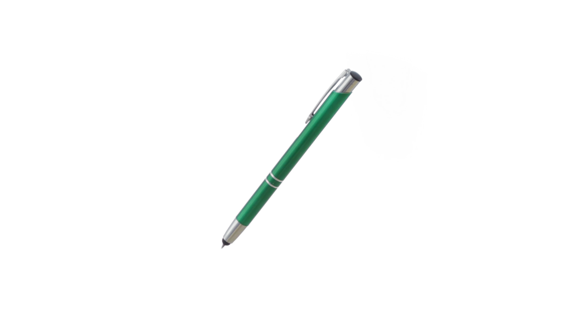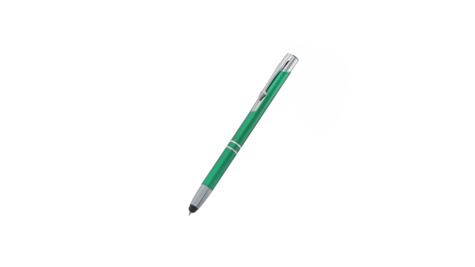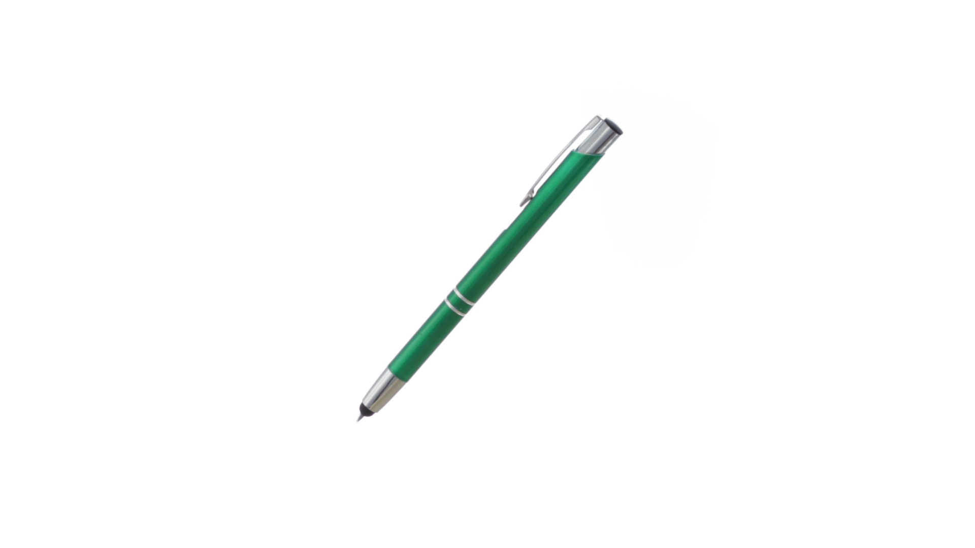 Druck-Kugelschreiber mit Stylus aus glänzendem Aluminium in lebhaften Farben. Jumbo-Patrone mit blauer Tinte.