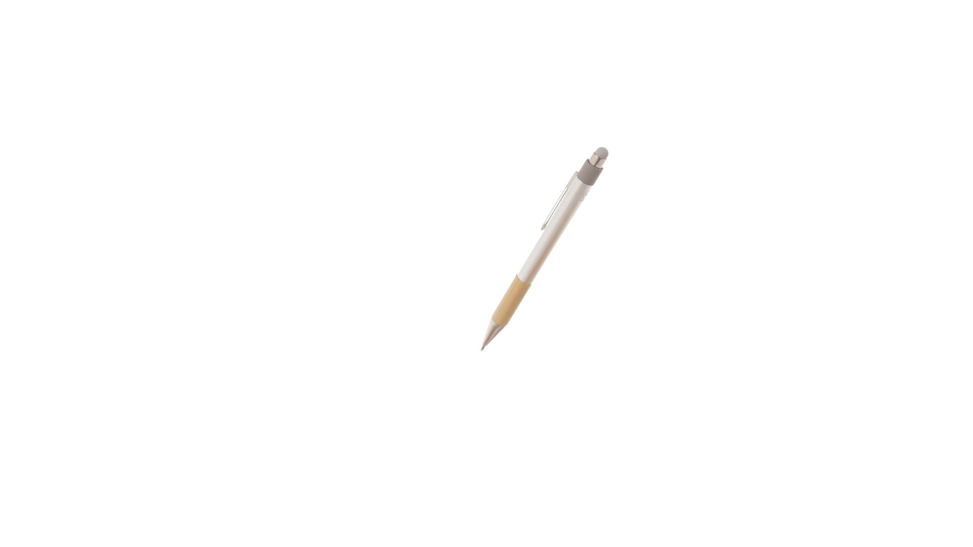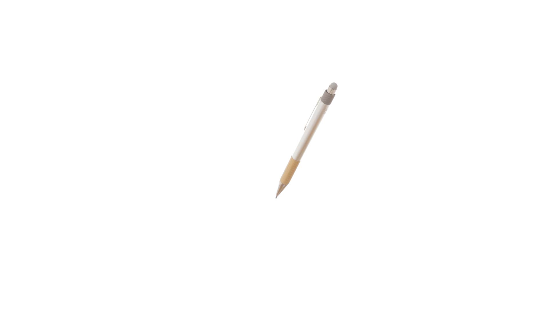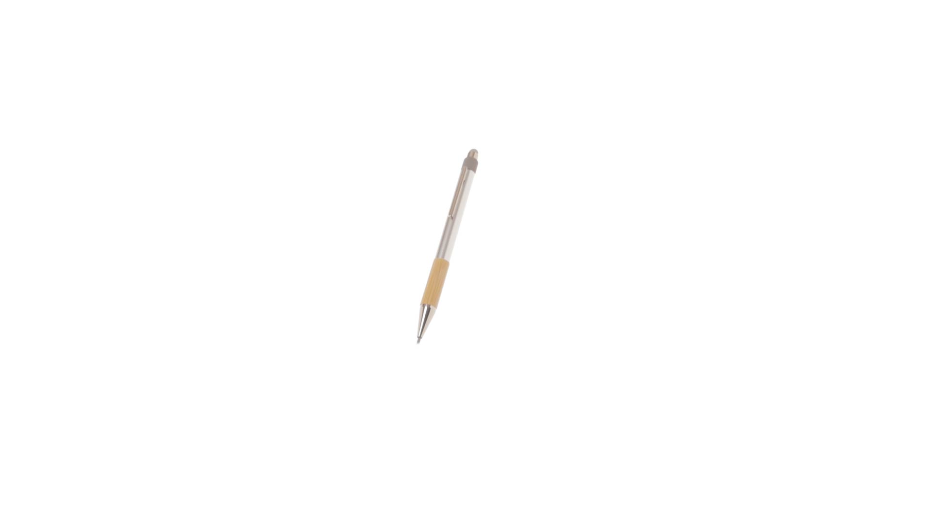 Stilvoller Kugelschreiber aus recyceltem Aluminium und Bambus mit Druckknopfmechanismus. Robuster Schaft aus recyceltem Aluminium mit mattem Finish, mit Bambusgriff und grauem Zeiger oben. Metallclip, mit blauer Tinte und mit Grossraummine. Präsentiert in einer einzelnen recycelten Tasche.