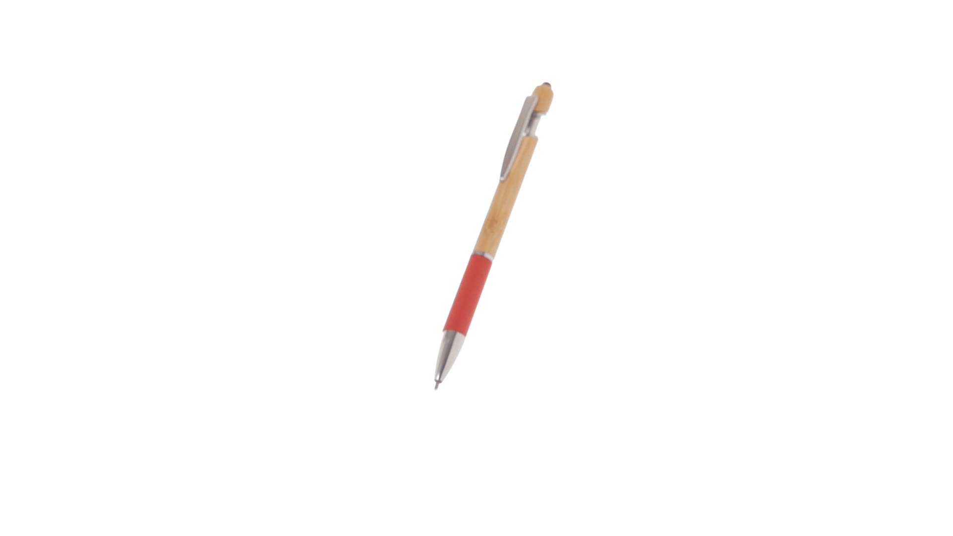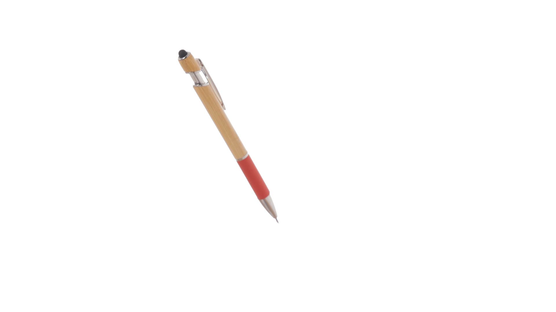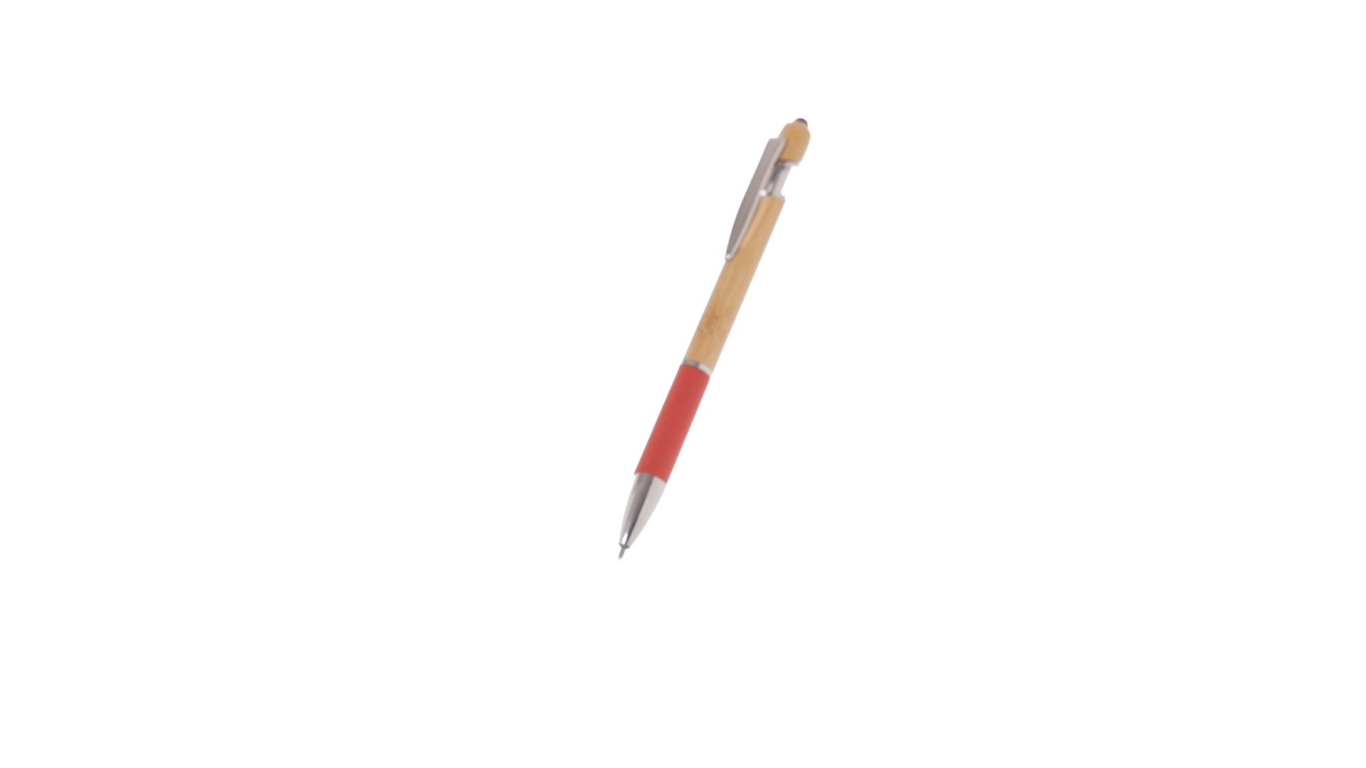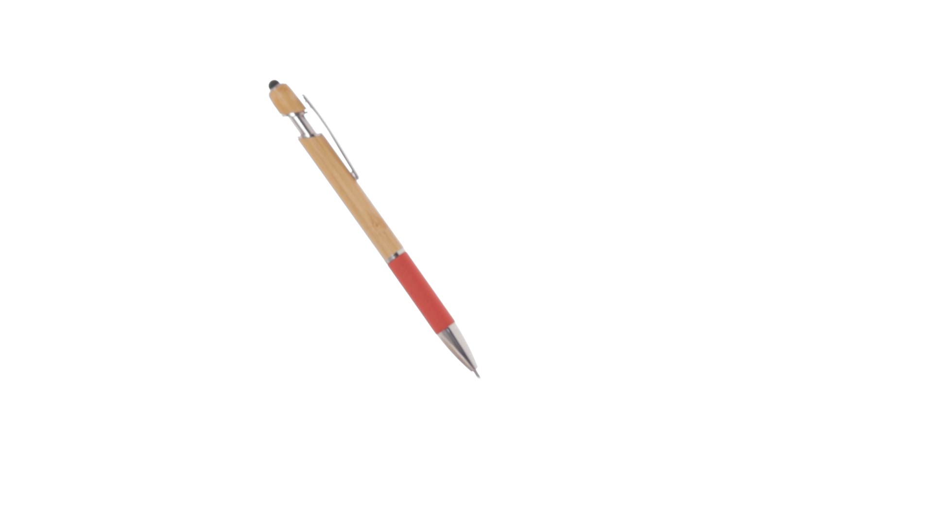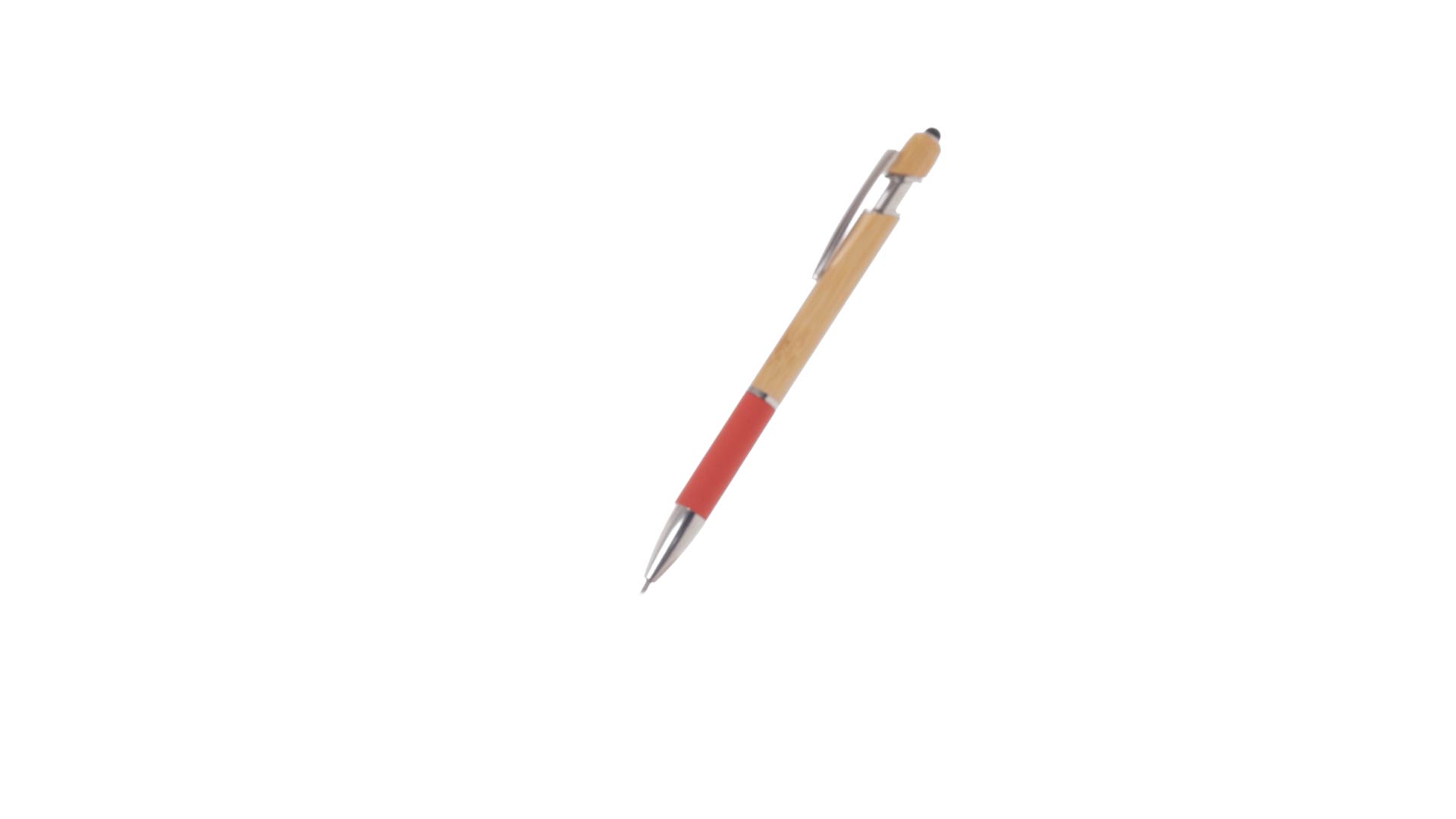 Kugelschreiberzeiger mit Bambusschaft. und Griff aus recyceltem Strukturkarton, in verschiedenen Farben. Oben schwarzer Zeiger, mit Metallclip und verchromten Beschlägen. Druckknopfmechanismus und blaue Tinte. Hergestellt aus pflanzlichen Bestandteilen, um die Verwendung natürlicher Rohstoffe zu fördern und Schadstoffemissionen zu reduzieren.