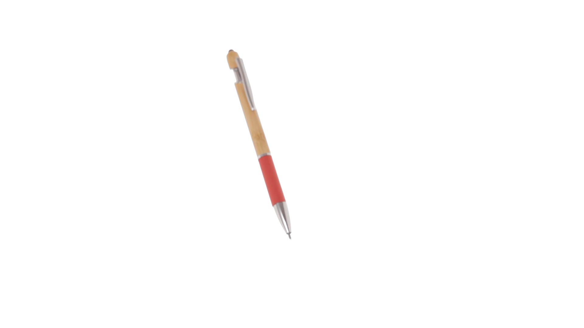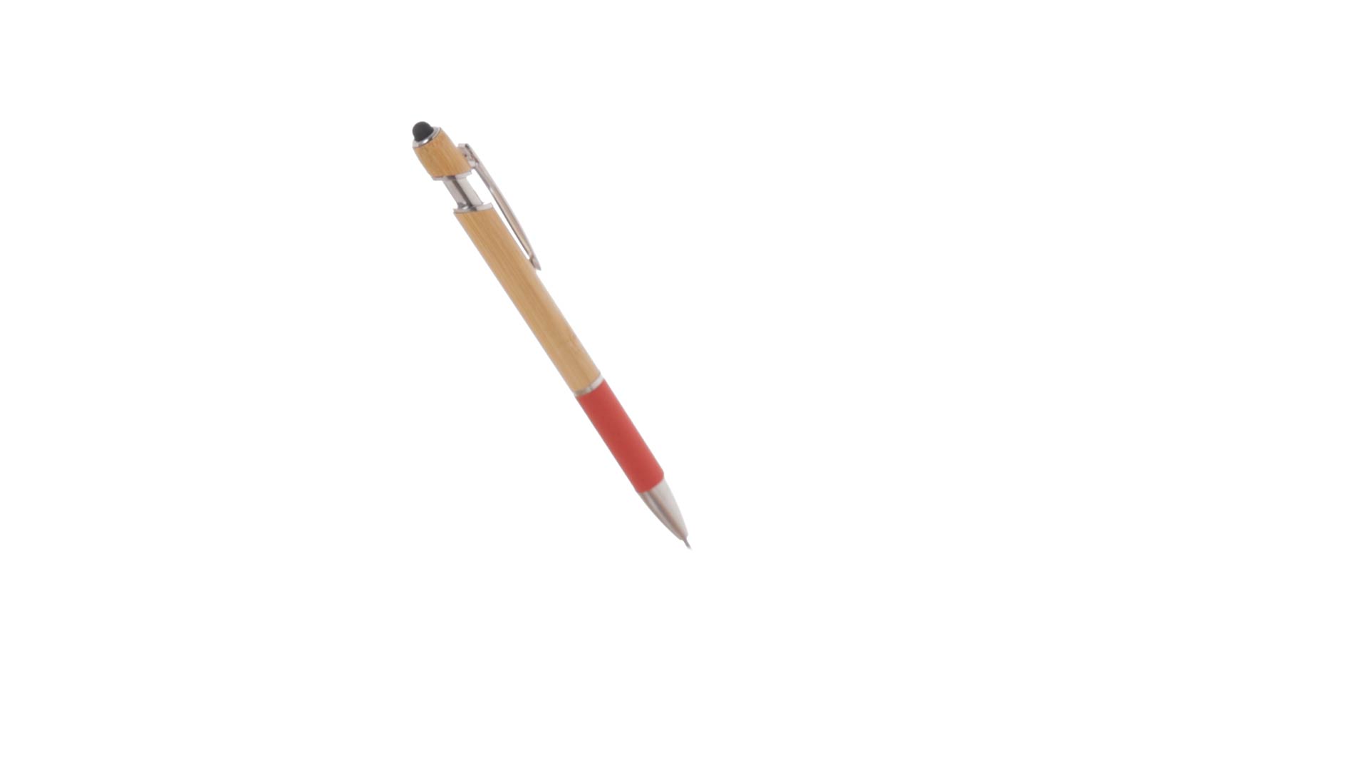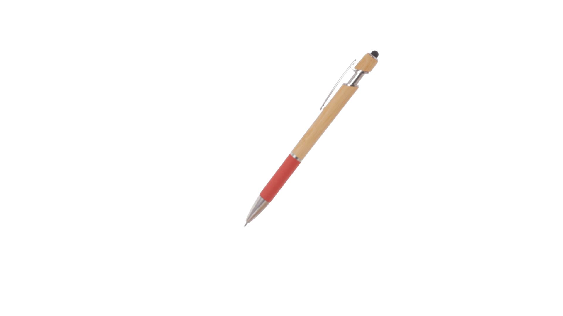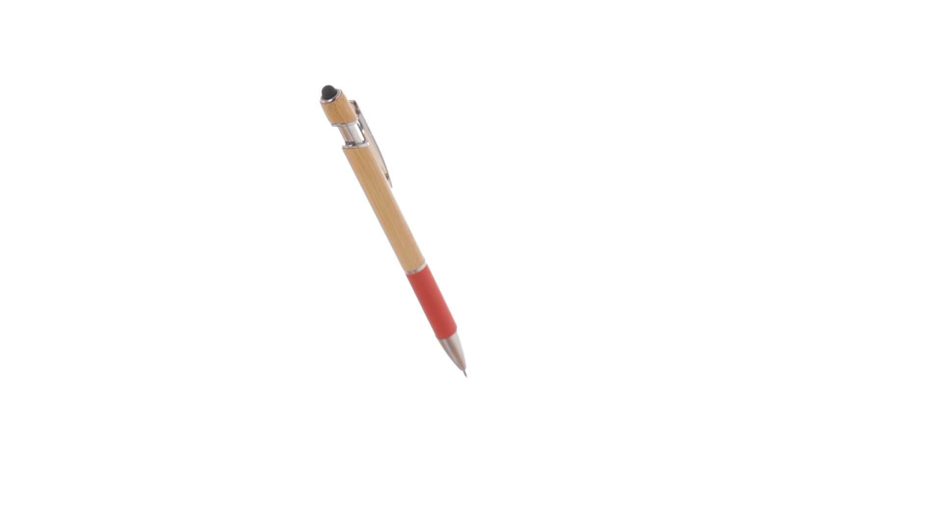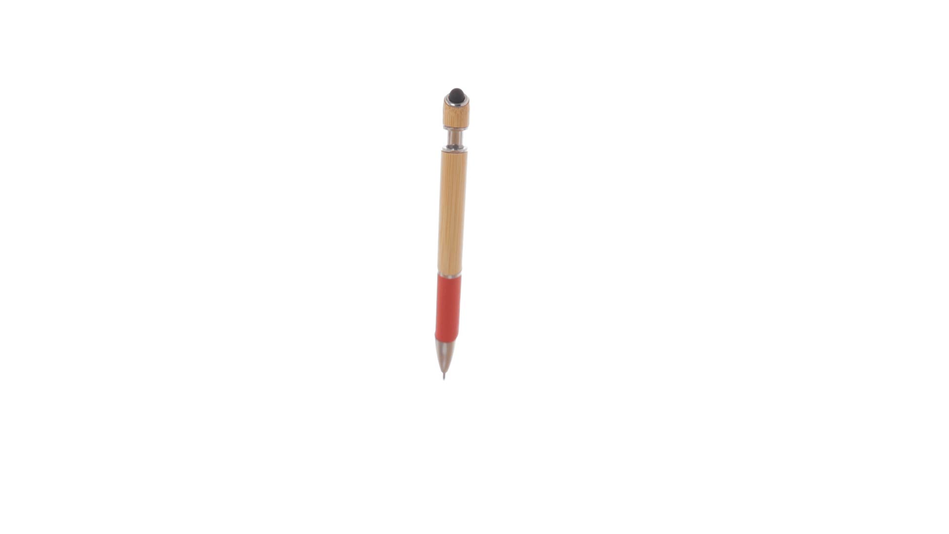 Kugelschreiberzeiger mit Bambusschaft. und Griff aus recyceltem Strukturkarton, in verschiedenen Farben. Oben schwarzer Zeiger, mit Metallclip und verchromten Beschlägen. Druckknopfmechanismus und blaue Tinte. Hergestellt aus pflanzlichen Bestandteilen, um die Verwendung natürlicher Rohstoffe zu fördern und Schadstoffemissionen zu reduzieren.