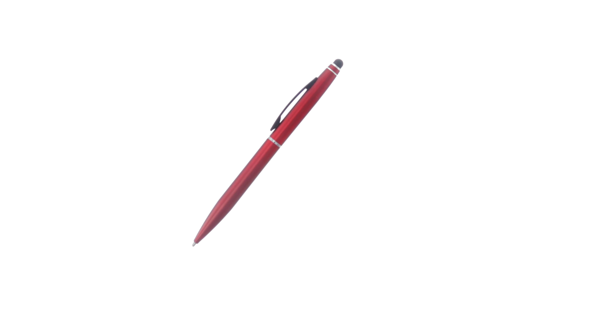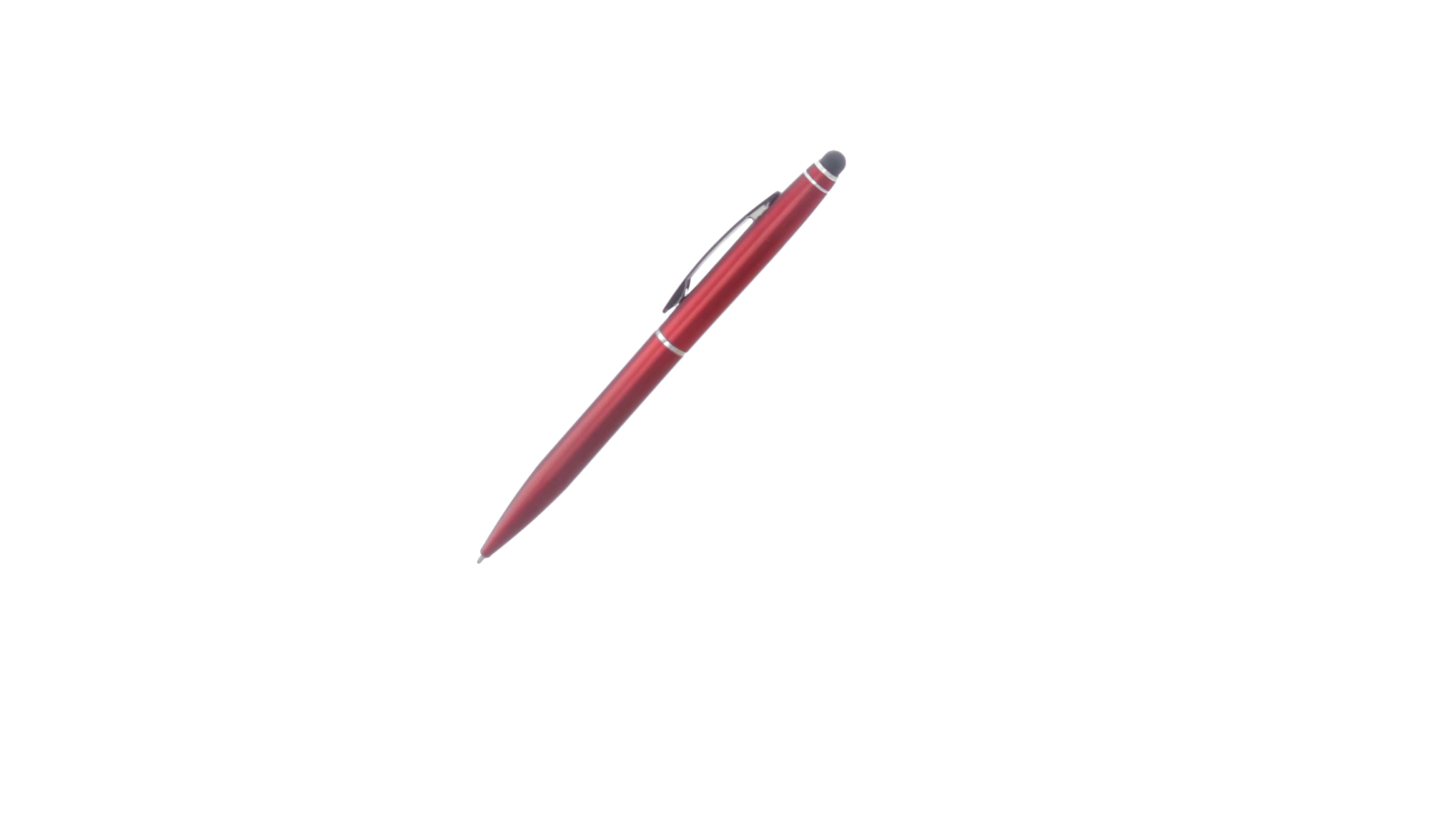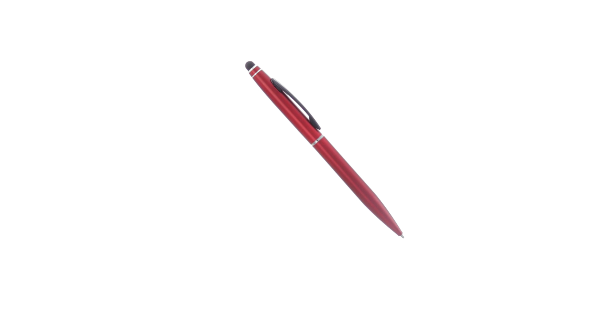 Dreh-Kugelschreiber mit Stylus und Aluminiumgehäuse mit geschmeidigem Metallic-Finish in verschiedenen Farben. Kontrastdetails in Schwarz und Ringe in Silber. Blaue Tinte.