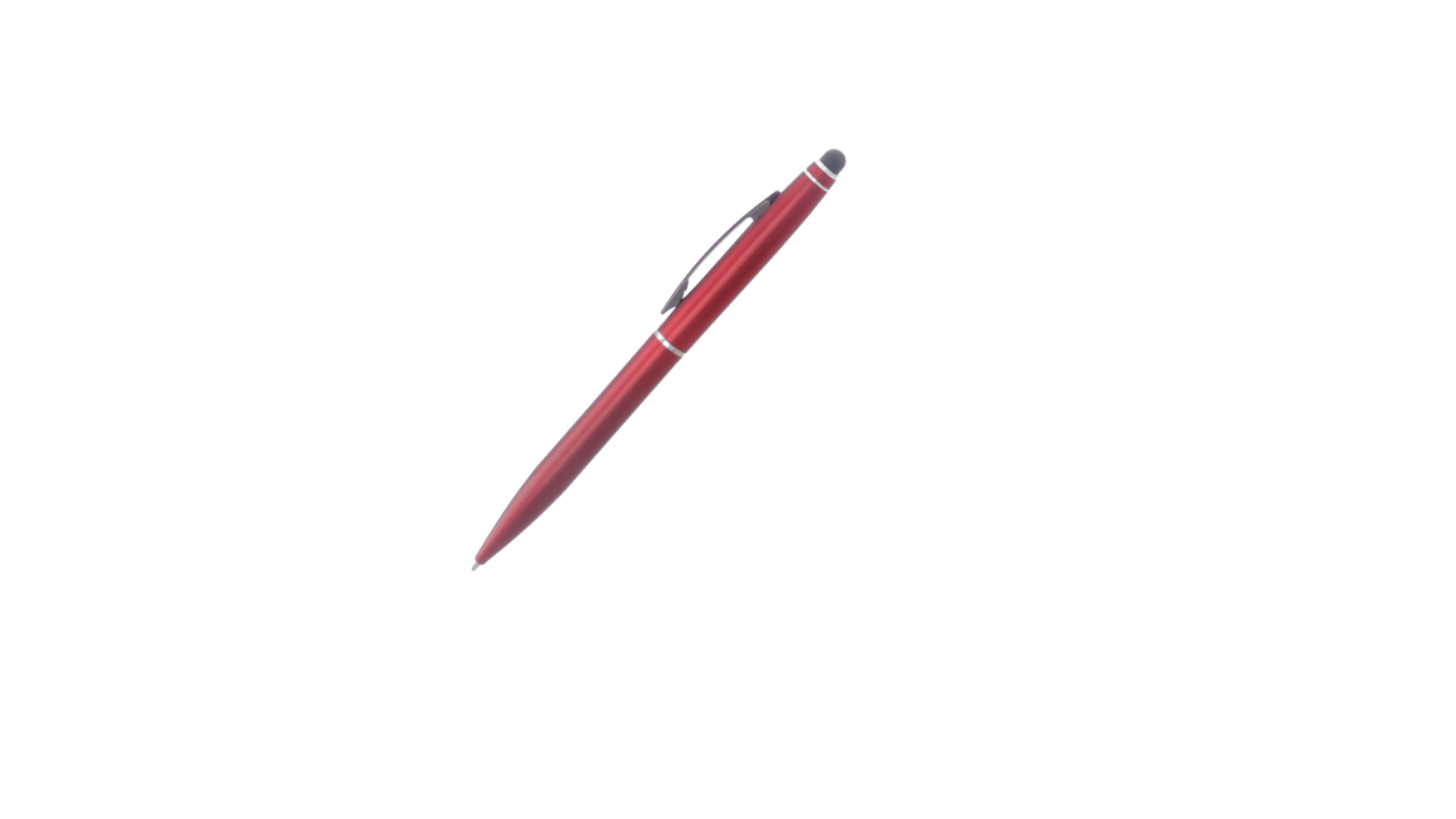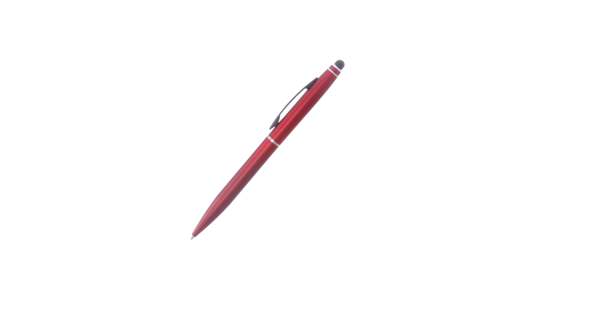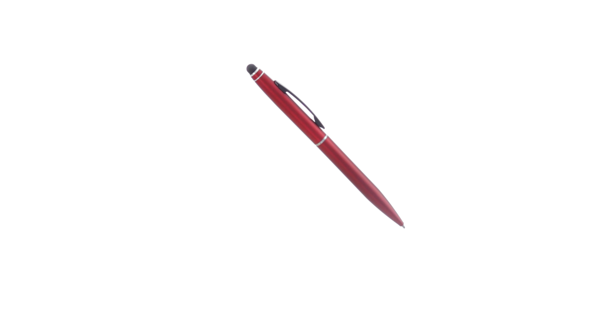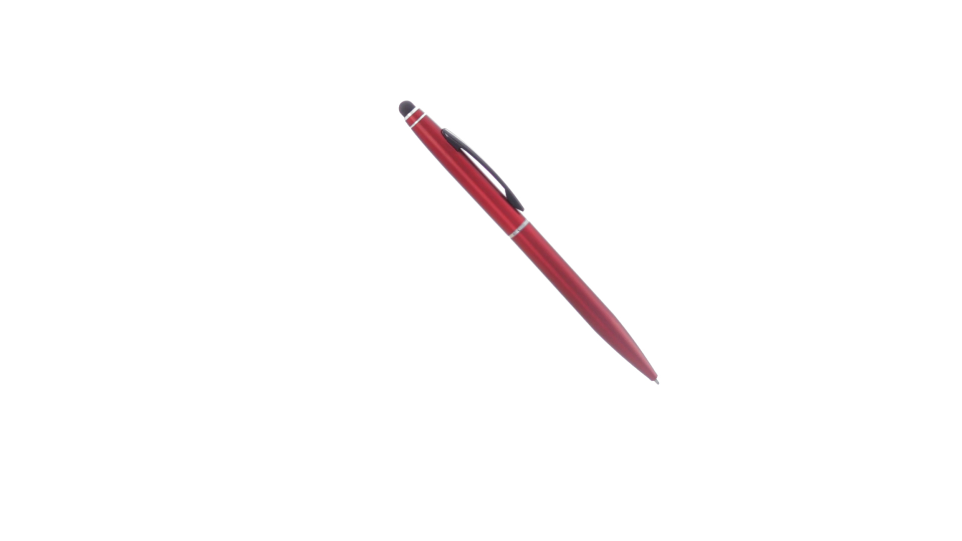 Dreh-Kugelschreiber mit Stylus und Aluminiumgehäuse mit geschmeidigem Metallic-Finish in verschiedenen Farben. Kontrastdetails in Schwarz und Ringe in Silber. Blaue Tinte.