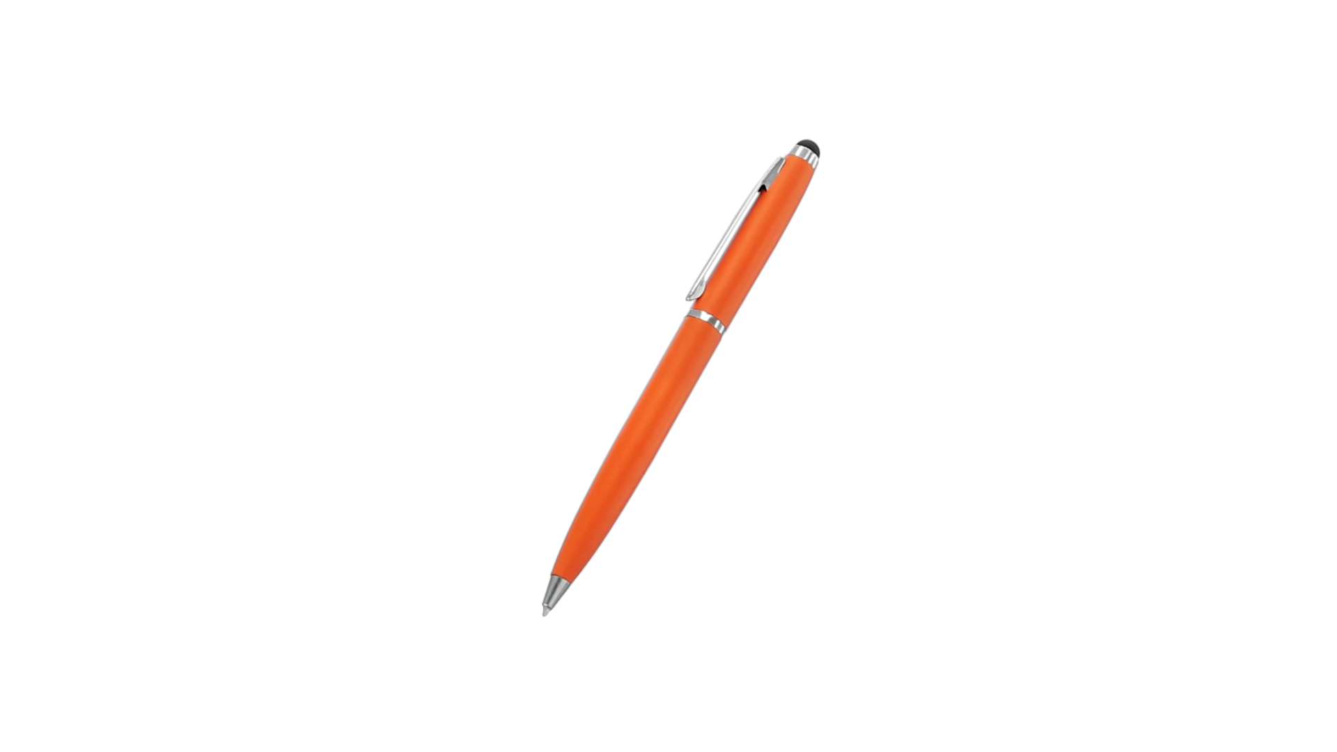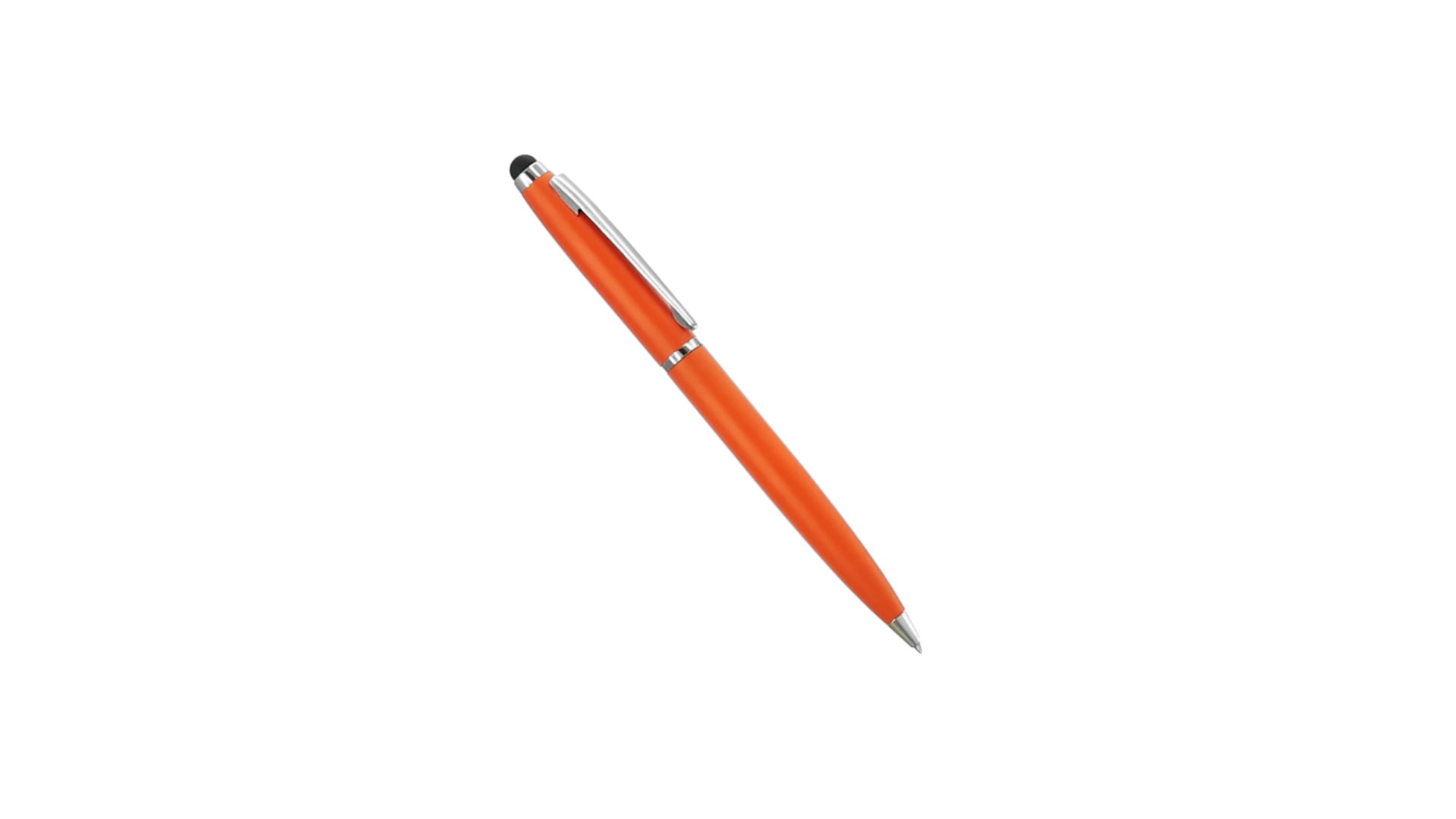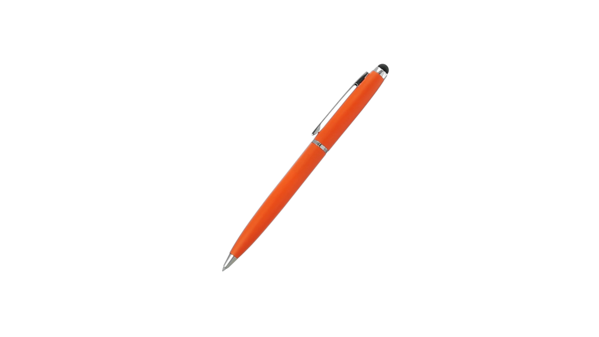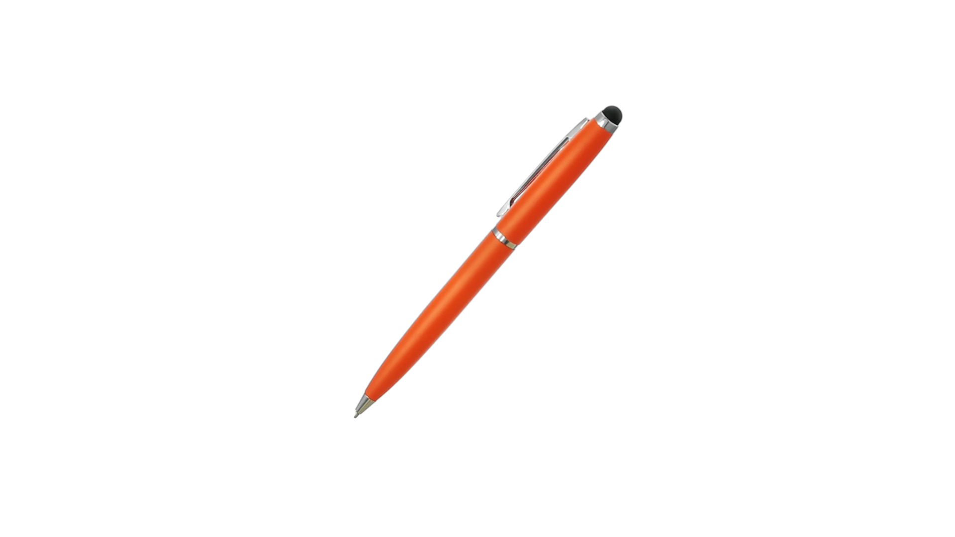 Dreh-Kugelschreiber mit Stylus und Metallgehäuse in kräftigen Farben. Kontrastdetails und Ringe in Silber. Blaue Tinte.