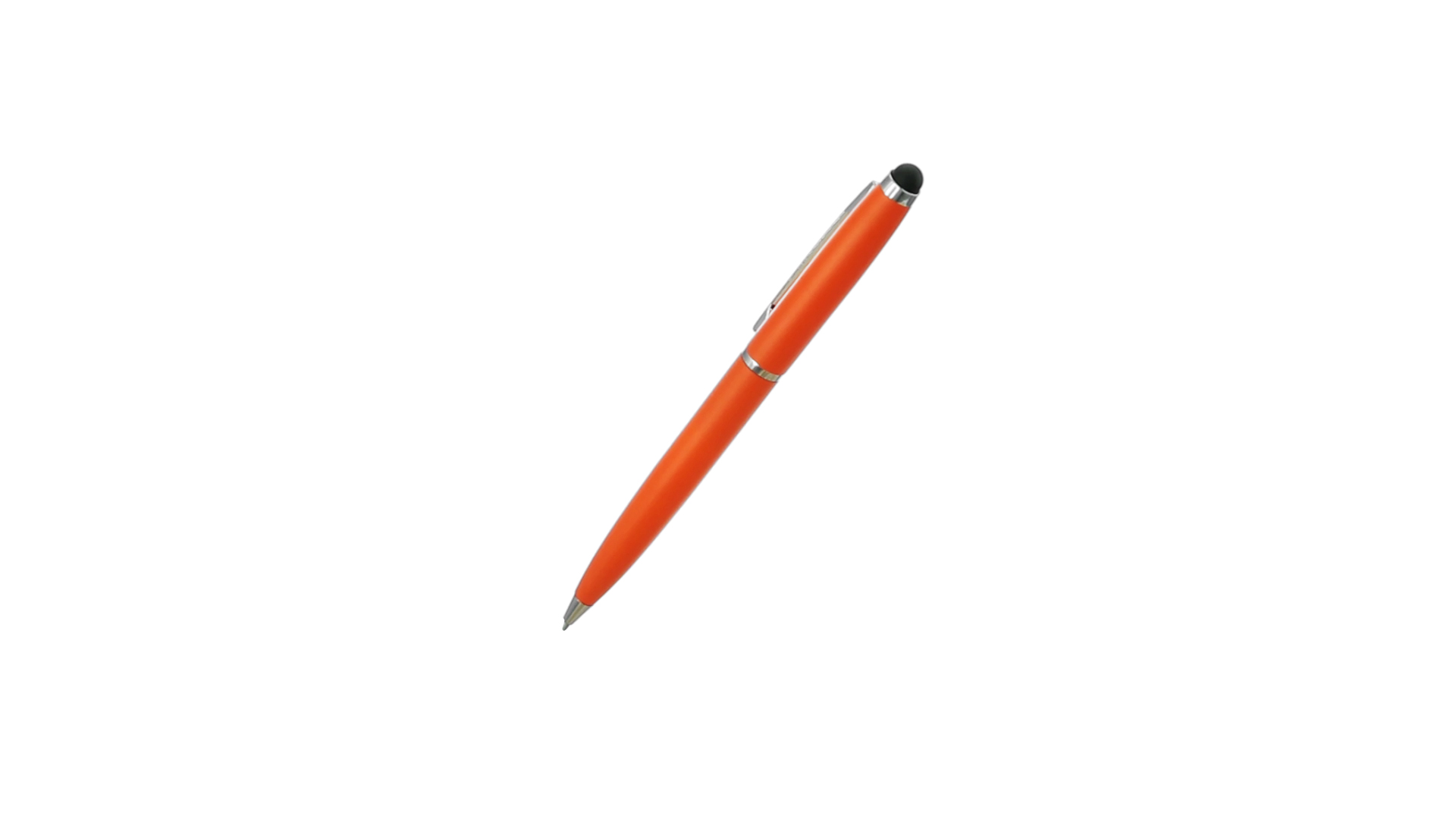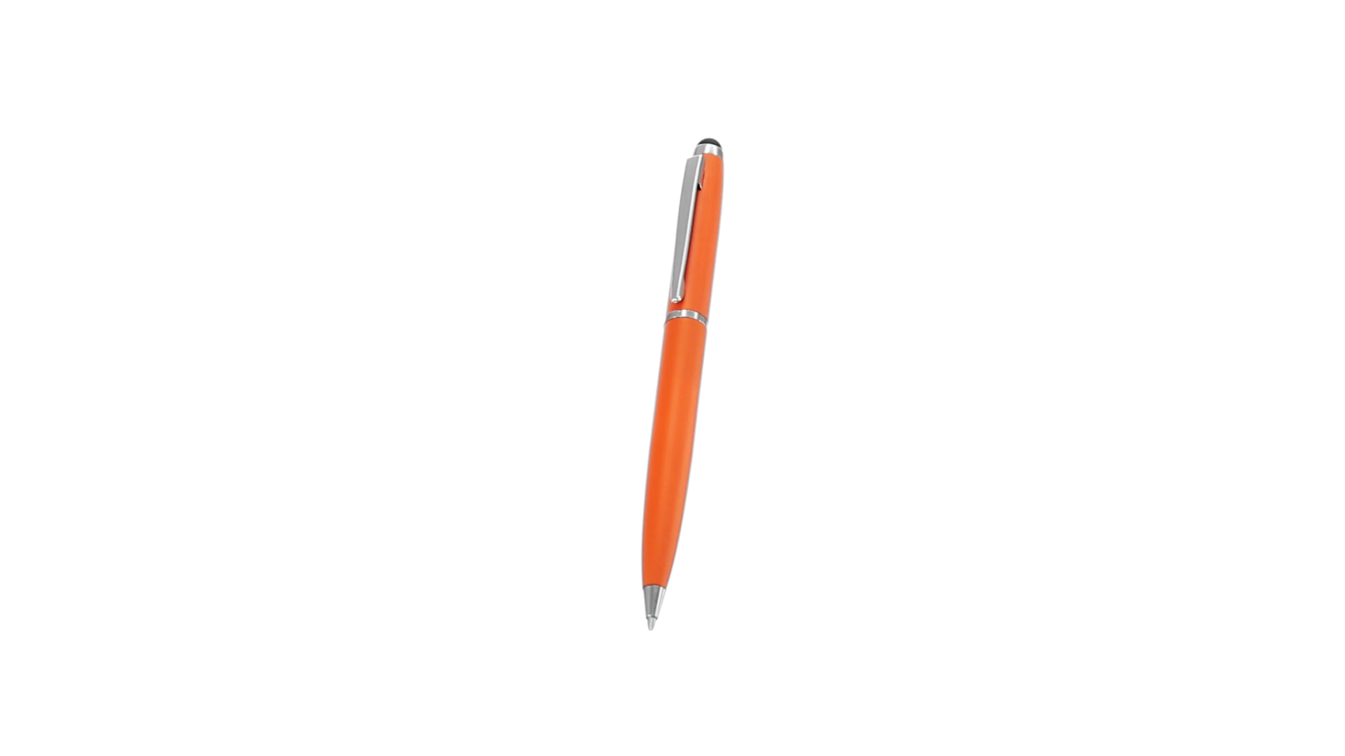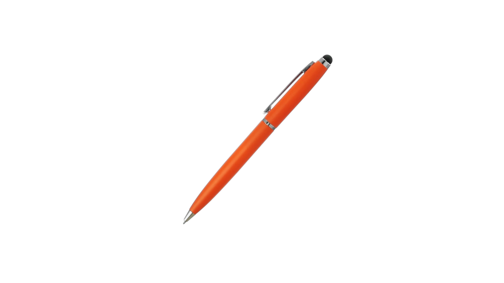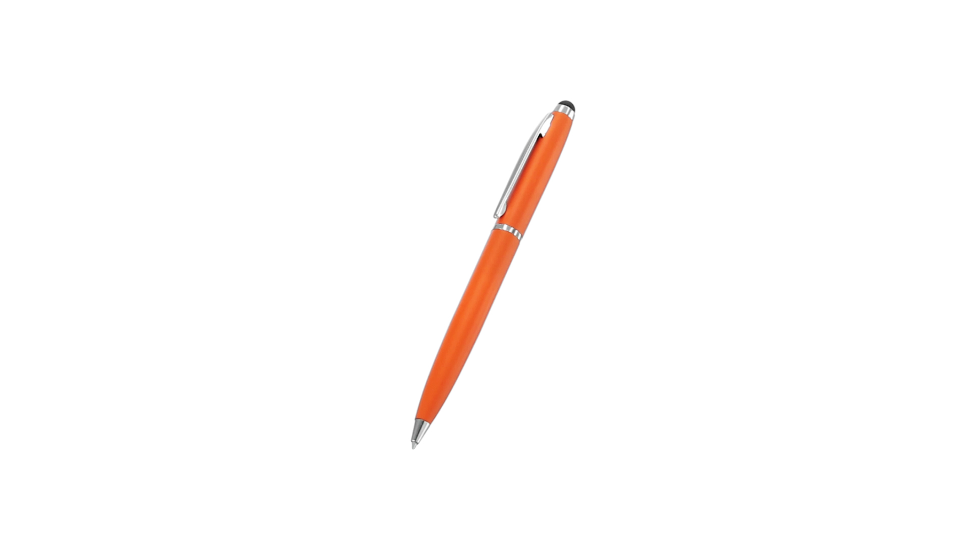 Dreh-Kugelschreiber mit Stylus und Metallgehäuse in kräftigen Farben. Kontrastdetails und Ringe in Silber. Blaue Tinte.