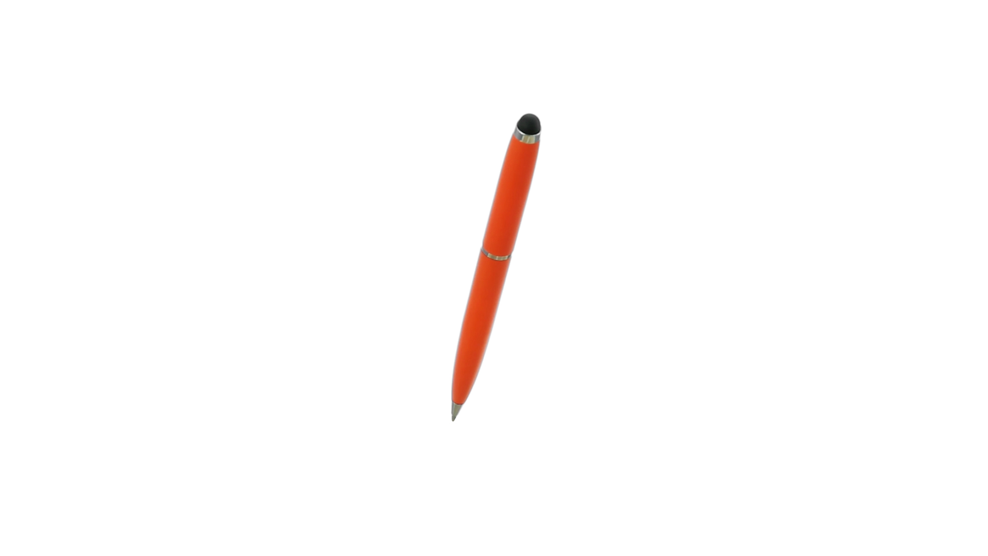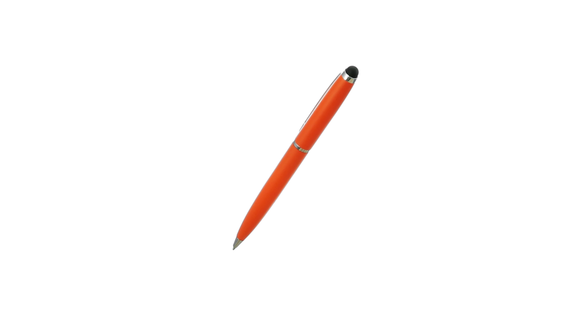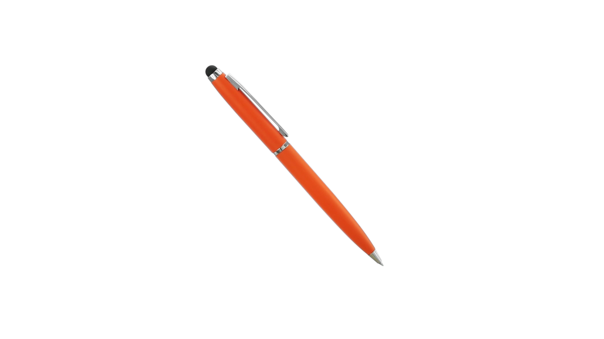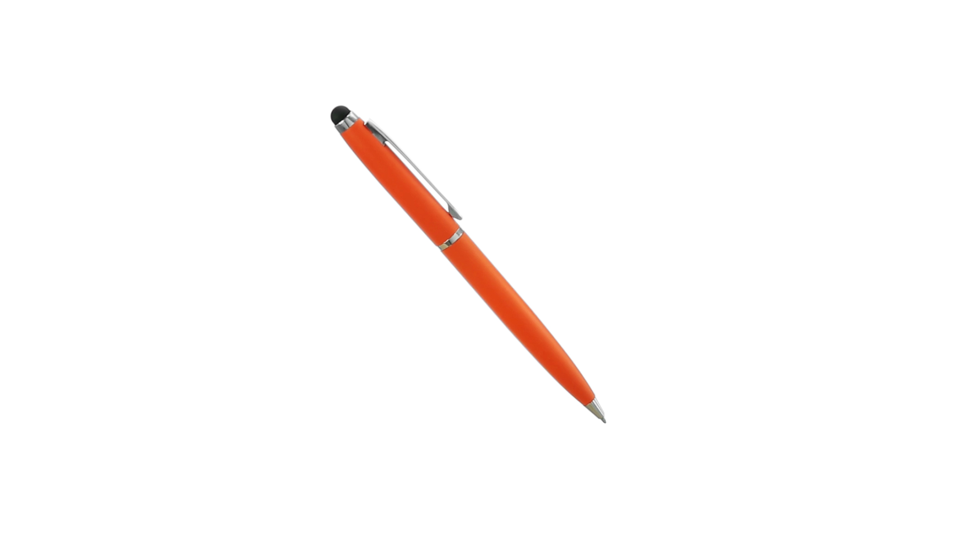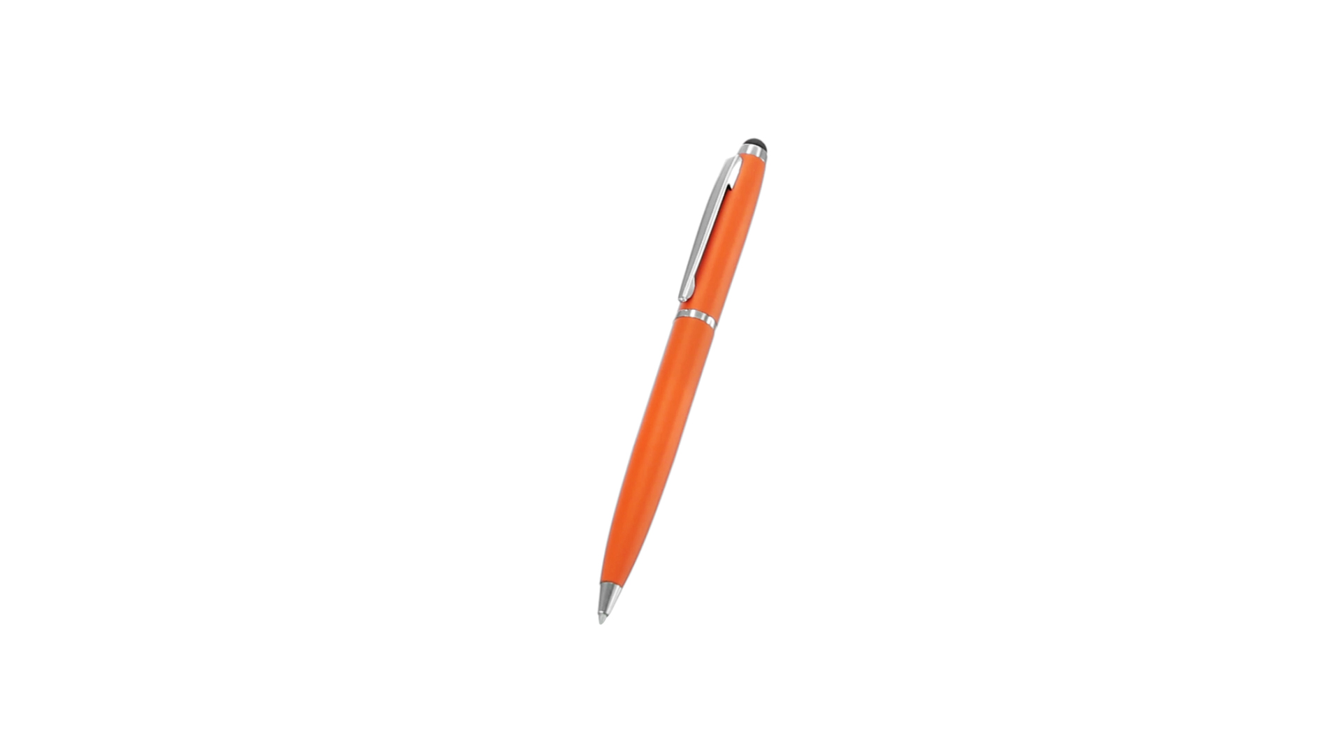 Dreh-Kugelschreiber mit Stylus und Metallgehäuse in kräftigen Farben. Kontrastdetails und Ringe in Silber. Blaue Tinte.