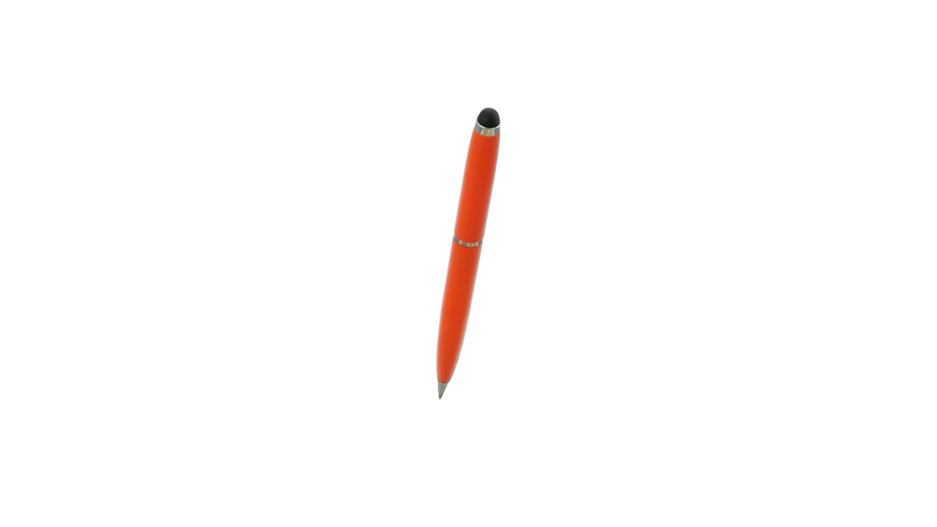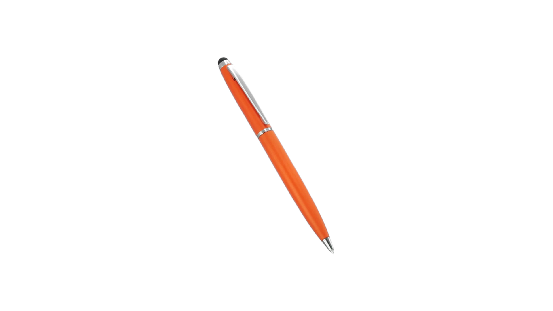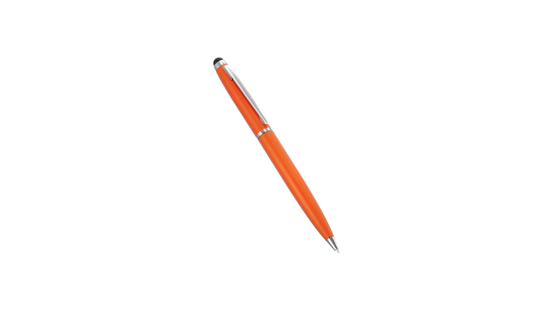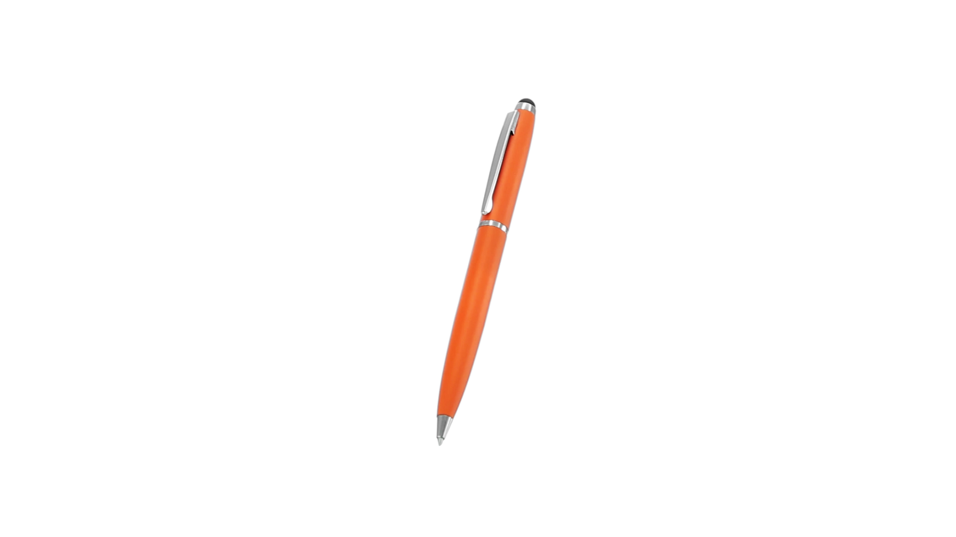 Dreh-Kugelschreiber mit Stylus und Metallgehäuse in kräftigen Farben. Kontrastdetails und Ringe in Silber. Blaue Tinte.