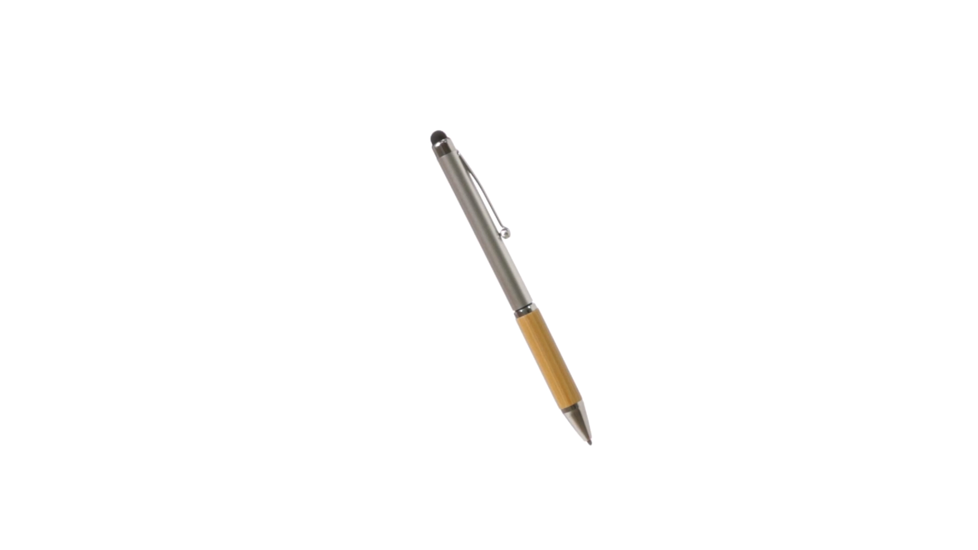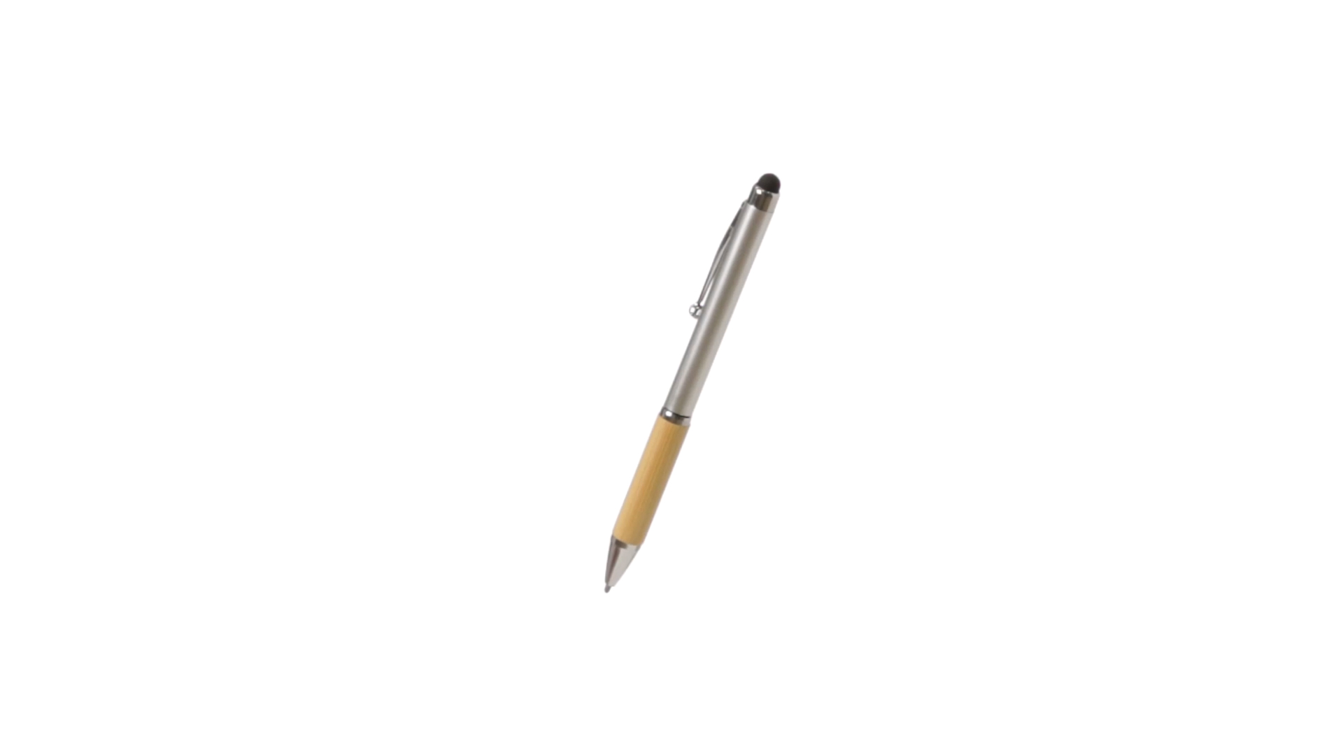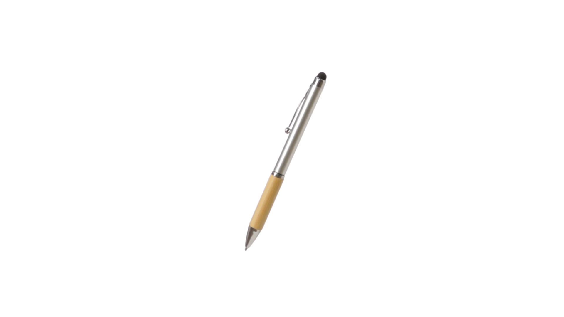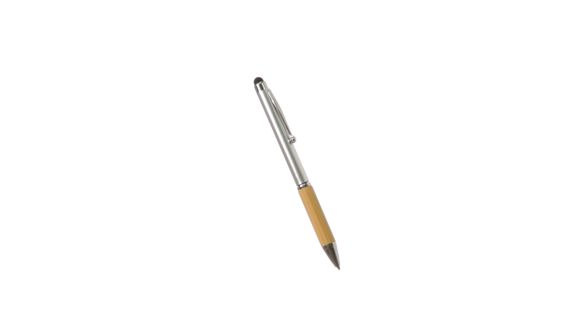 Eleganter Stylus-Kugelschreiber der Linie Natur mit Drehmechanik. ABS-Körper mit glänzender Oberfläche und Bambusgriff, mit passendem Zubehör. Metallischer Clip und blaue Tinte.