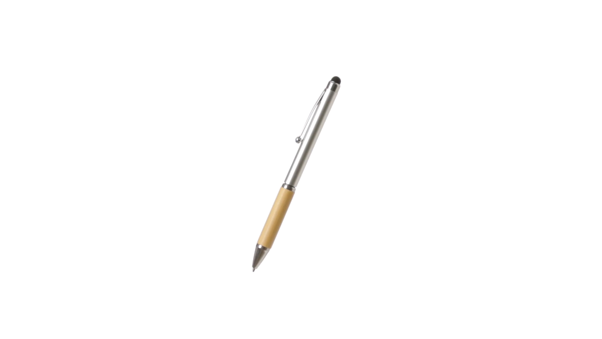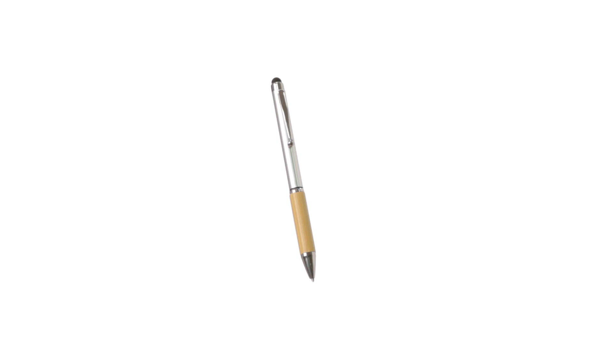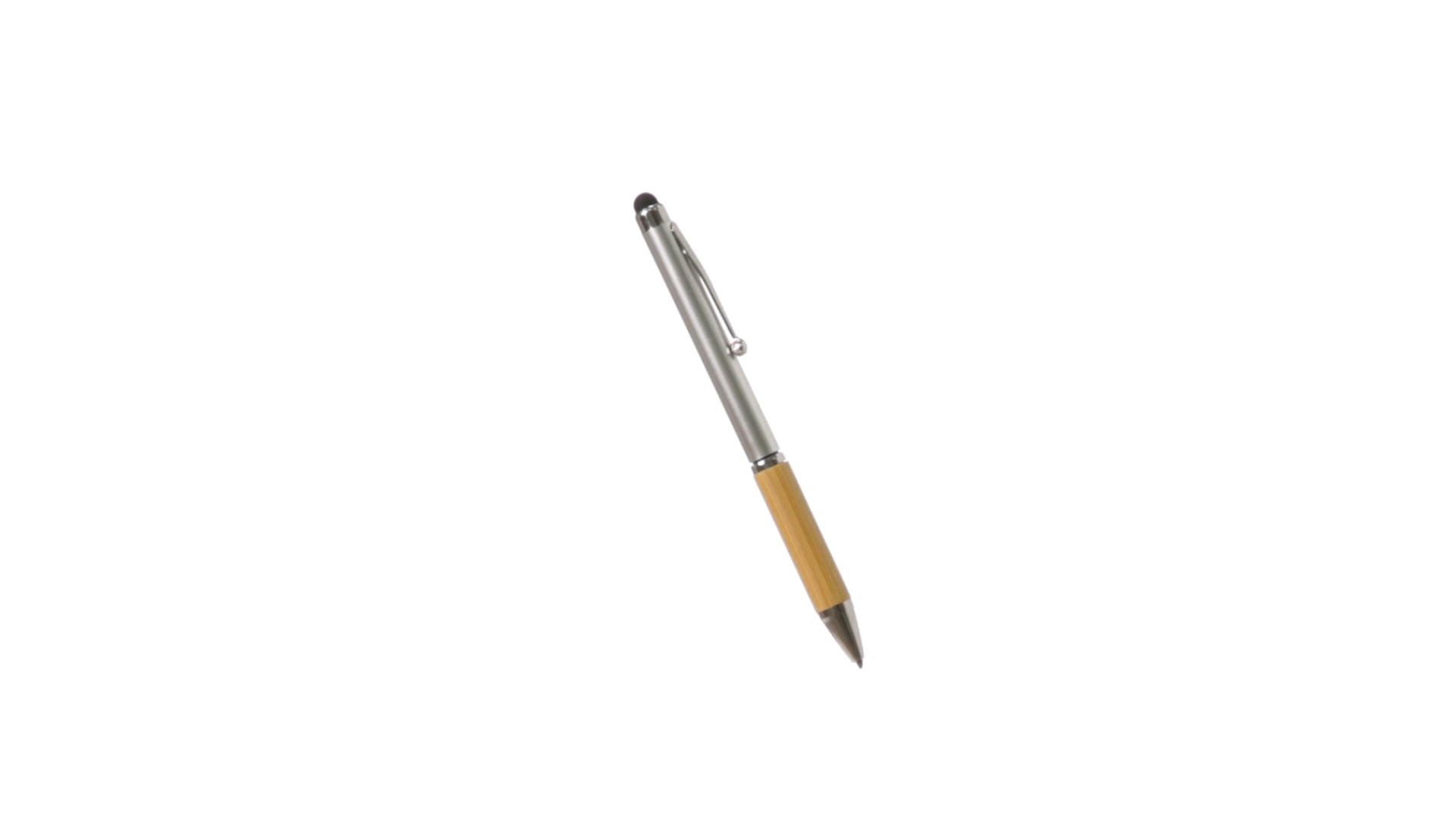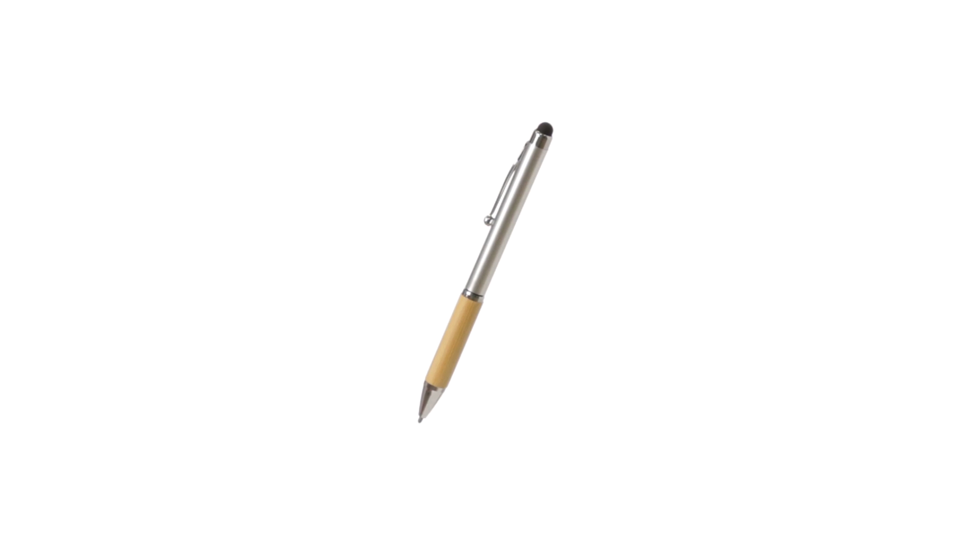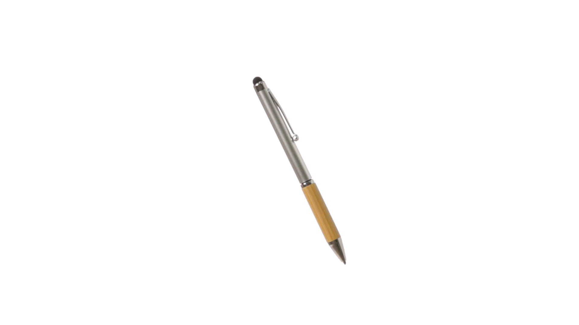 Eleganter Stylus-Kugelschreiber der Linie Natur mit Drehmechanik. ABS-Körper mit glänzender Oberfläche und Bambusgriff, mit passendem Zubehör. Metallischer Clip und blaue Tinte.