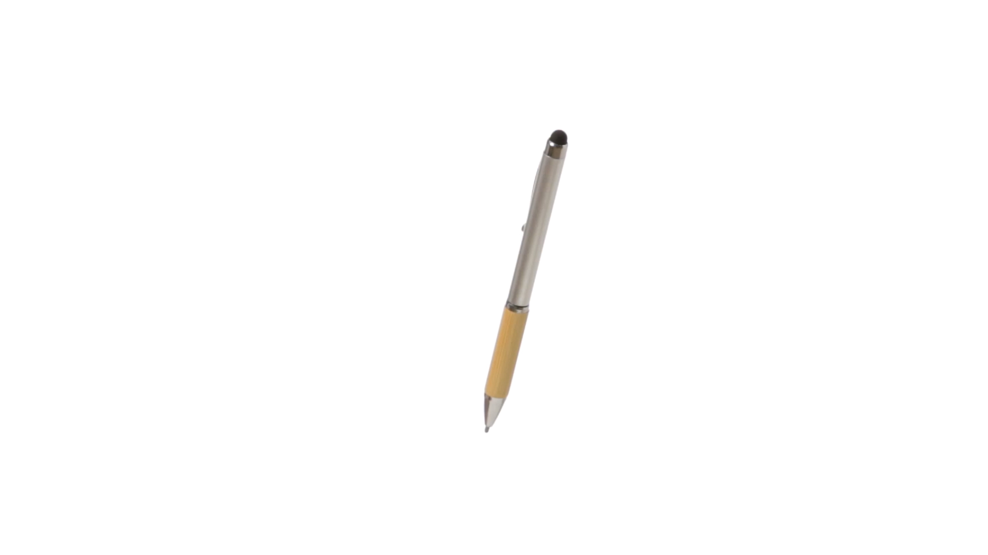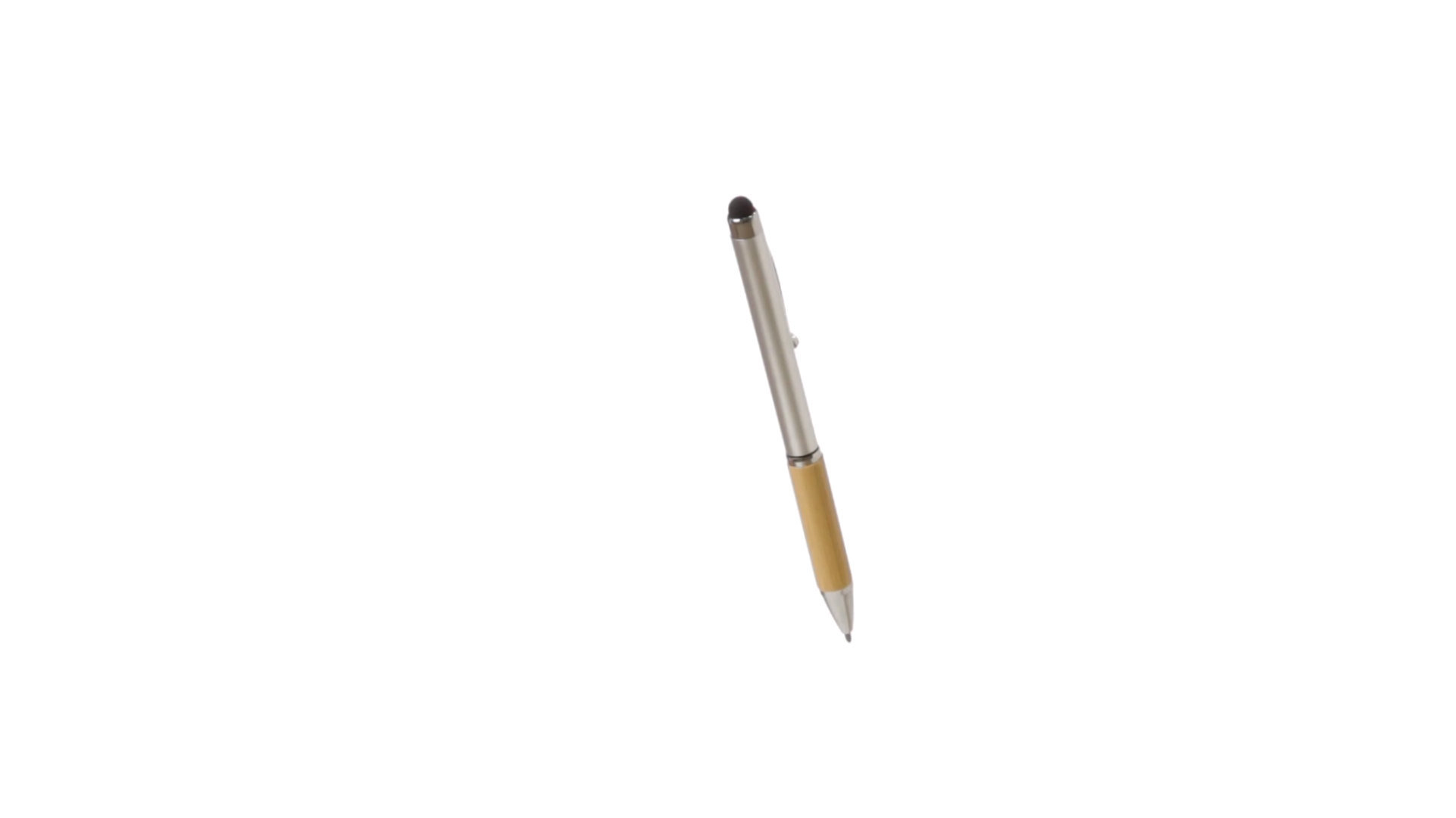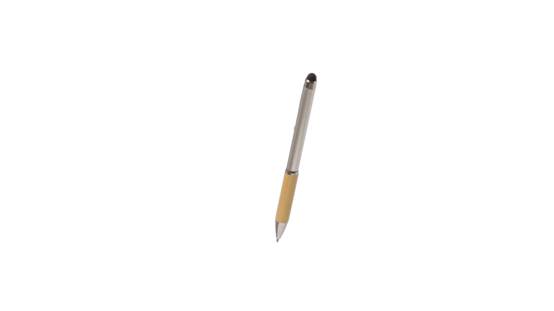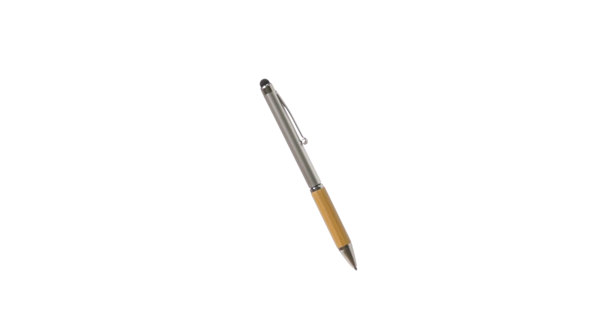 Eleganter Stylus-Kugelschreiber der Linie Natur mit Drehmechanik. ABS-Körper mit glänzender Oberfläche und Bambusgriff, mit passendem Zubehör. Metallischer Clip und blaue Tinte.