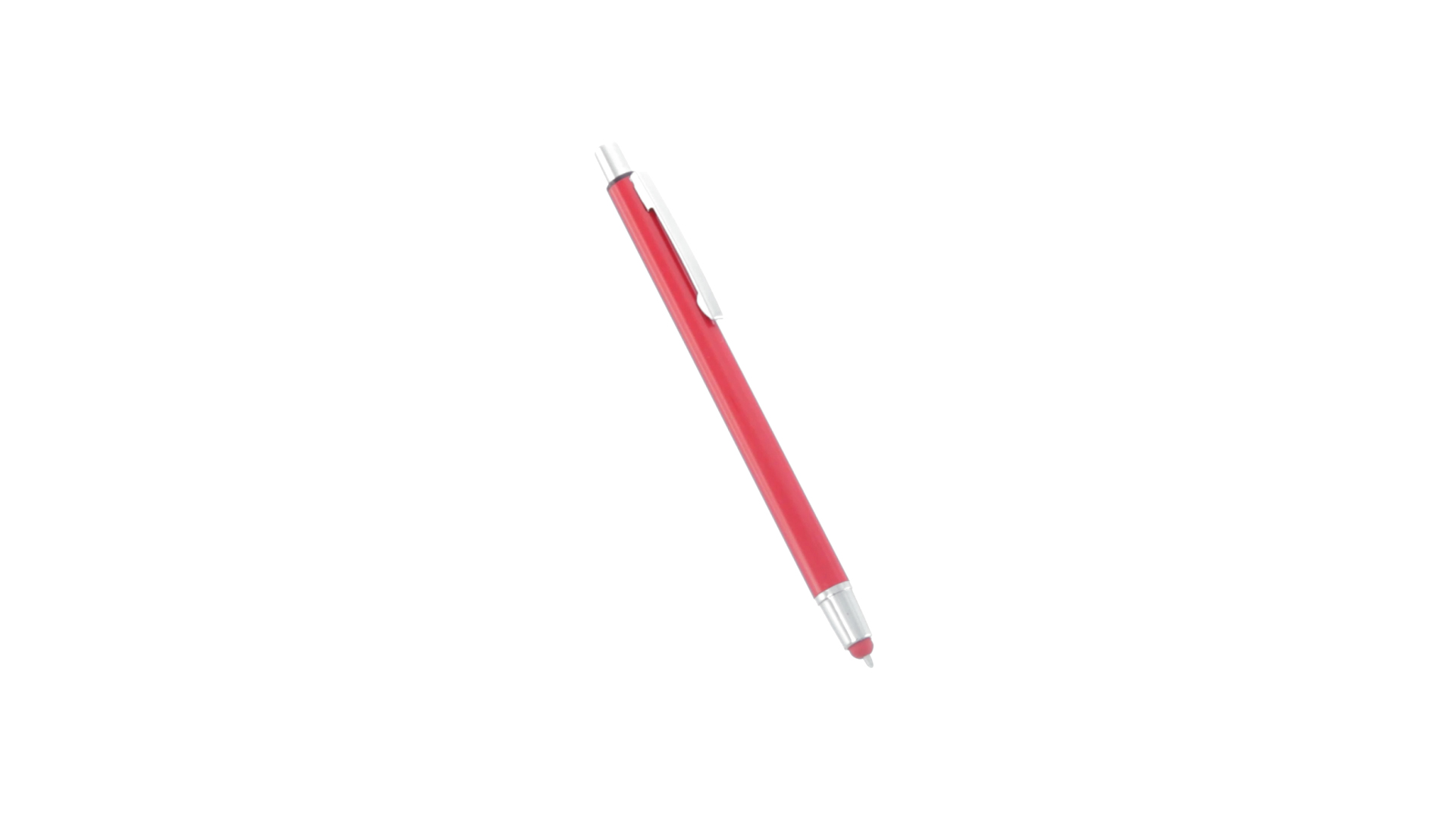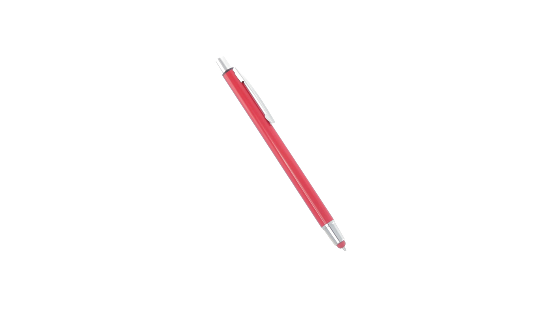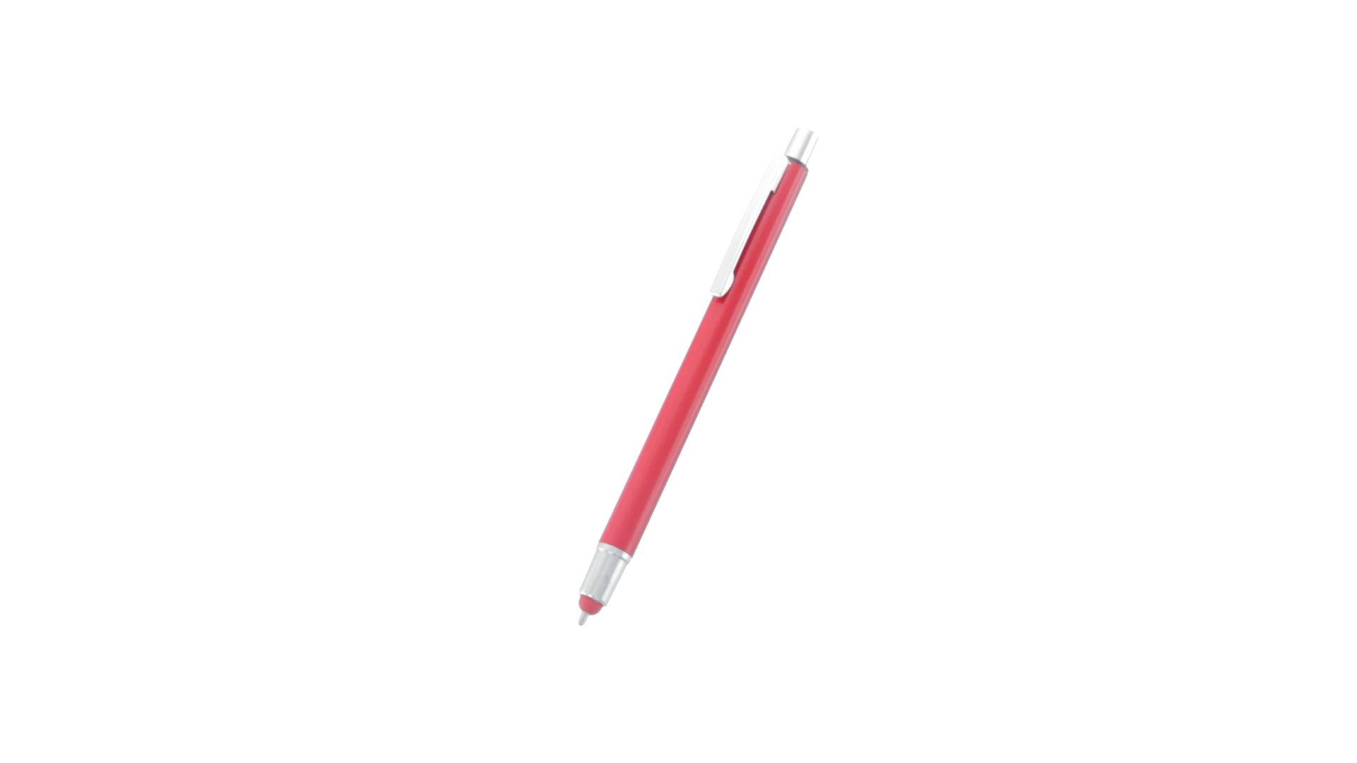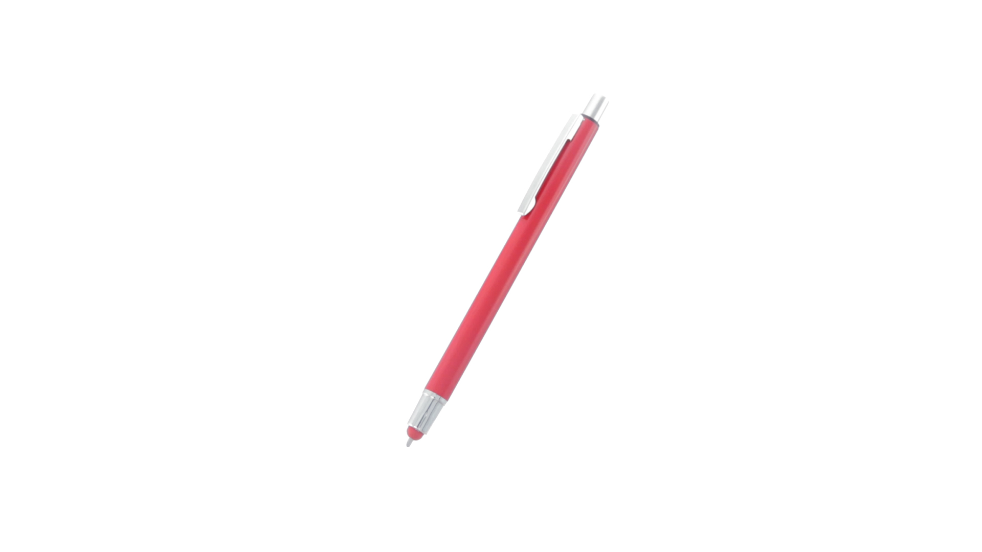Druck-Kugelschreiber aus glänzendem Aluminium in coolen Farben, mit farblich passendem Stylus. Schwarze Tinte.