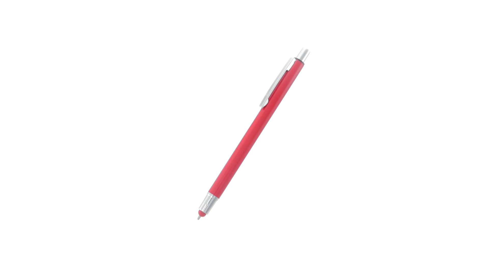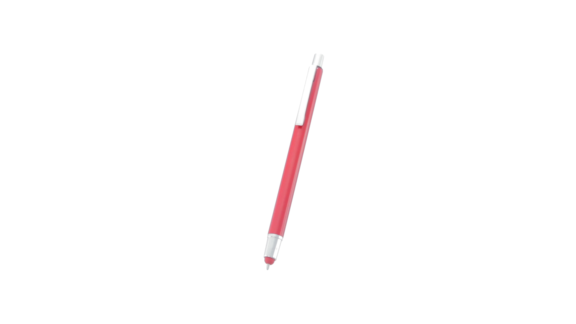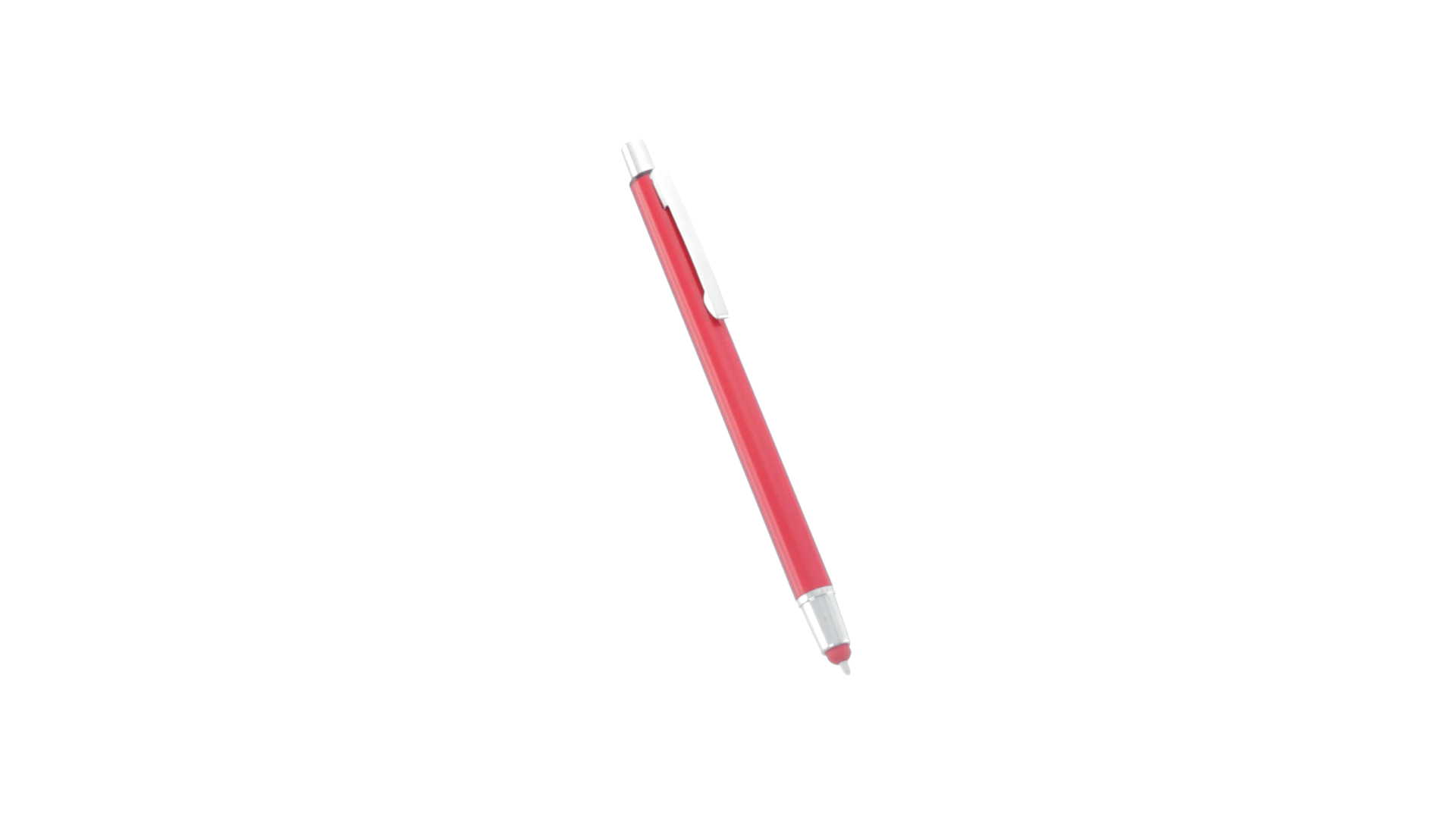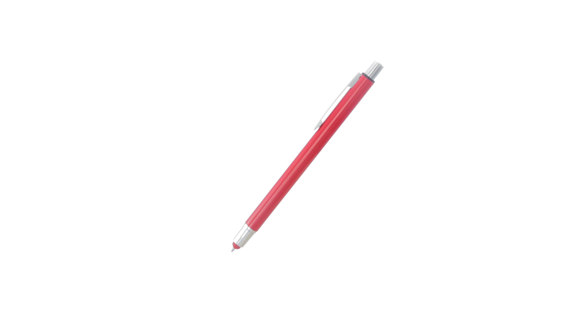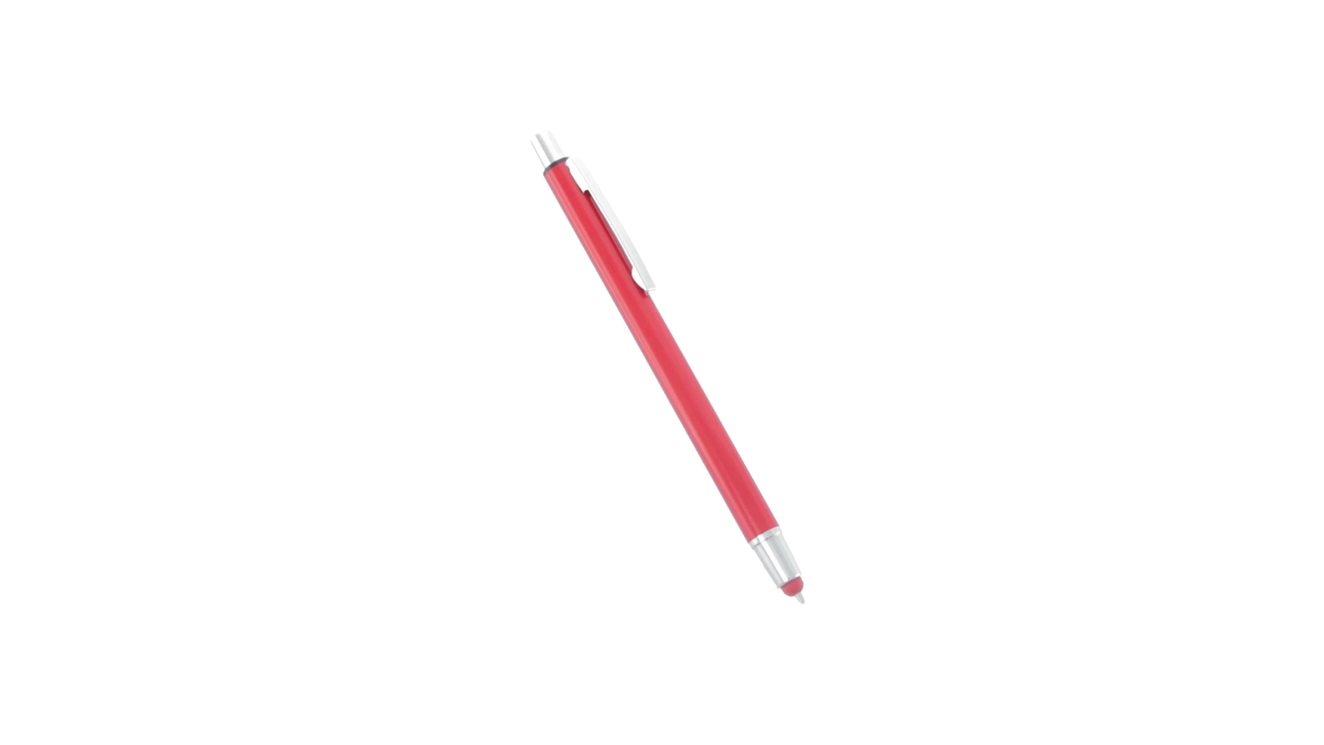 Druck-Kugelschreiber aus glänzendem Aluminium in coolen Farben, mit farblich passendem Stylus. Schwarze Tinte.