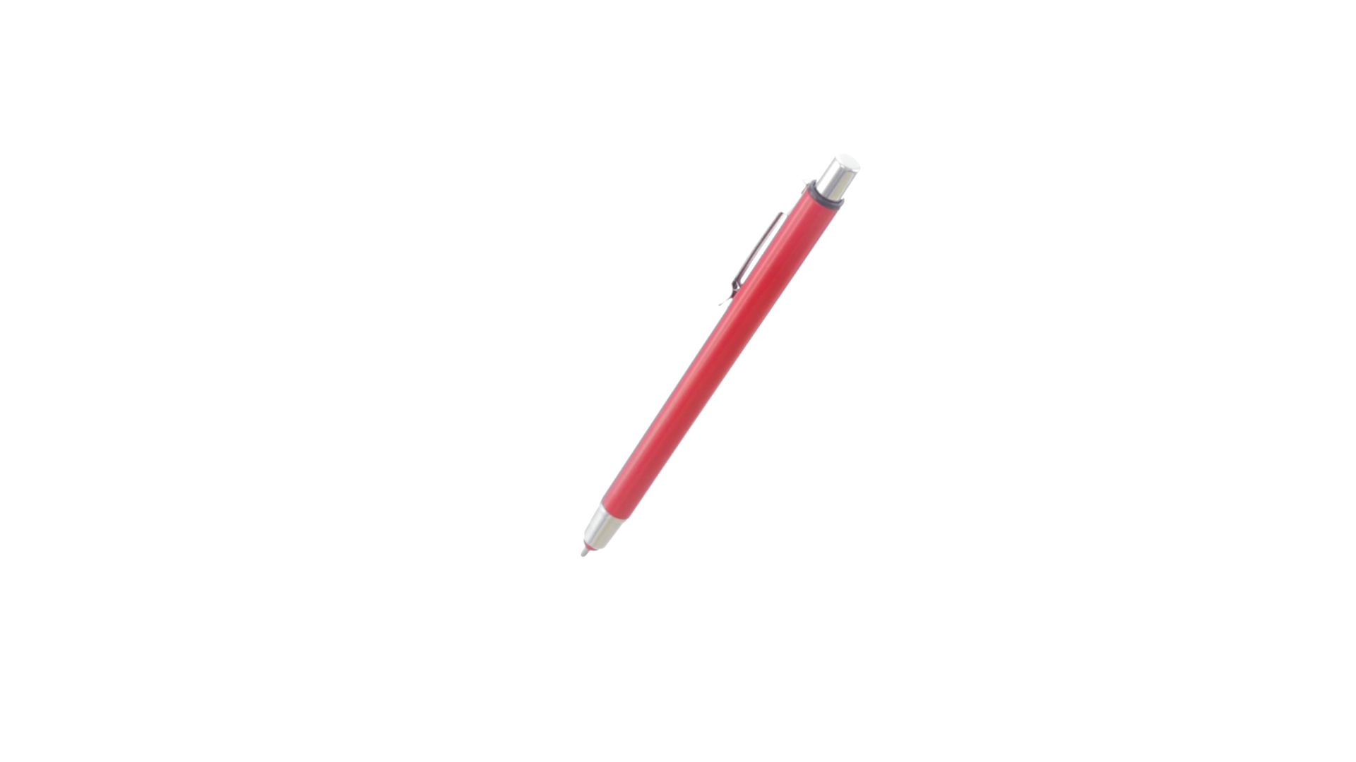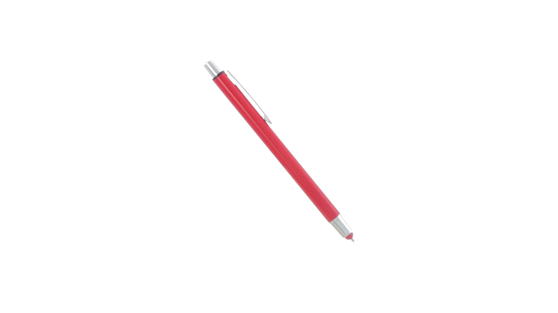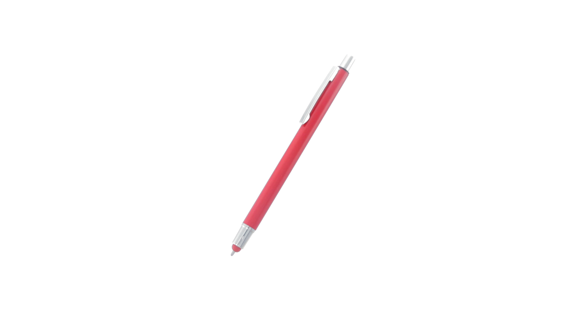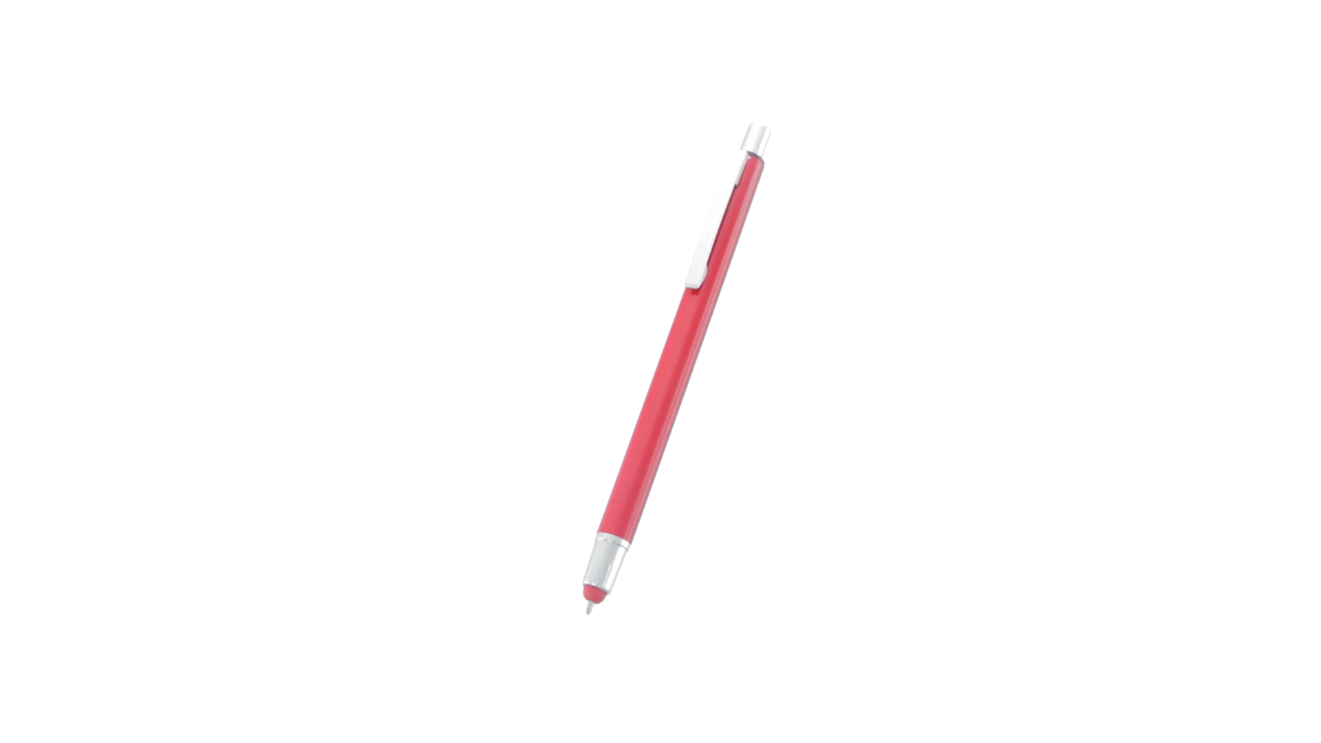 Druck-Kugelschreiber aus glänzendem Aluminium in coolen Farben, mit farblich passendem Stylus. Schwarze Tinte.