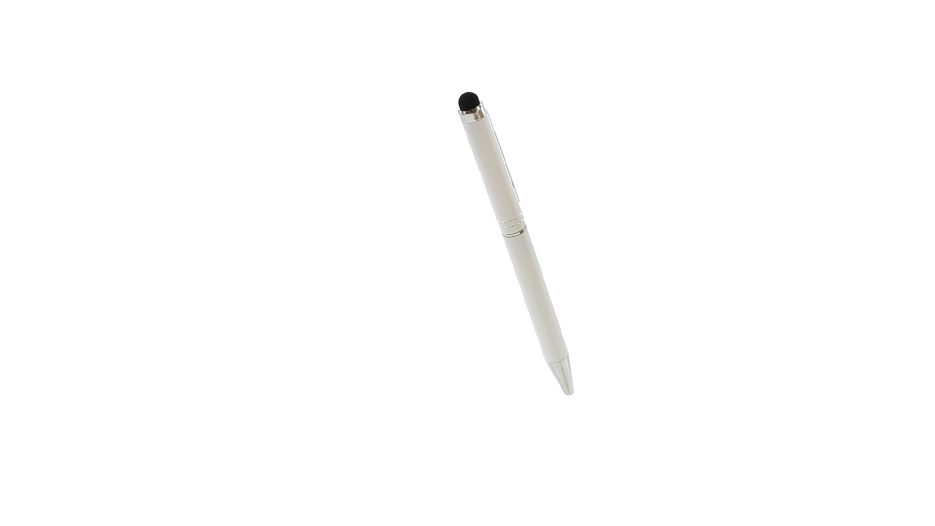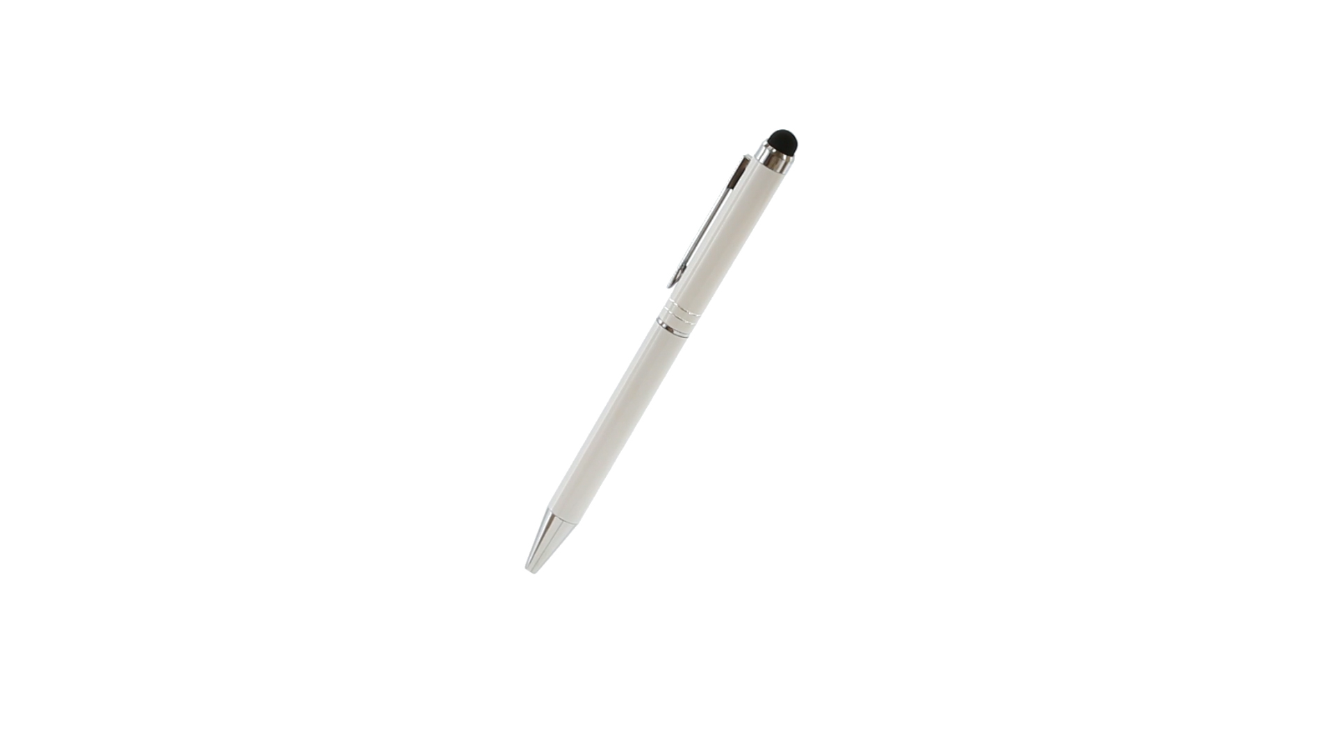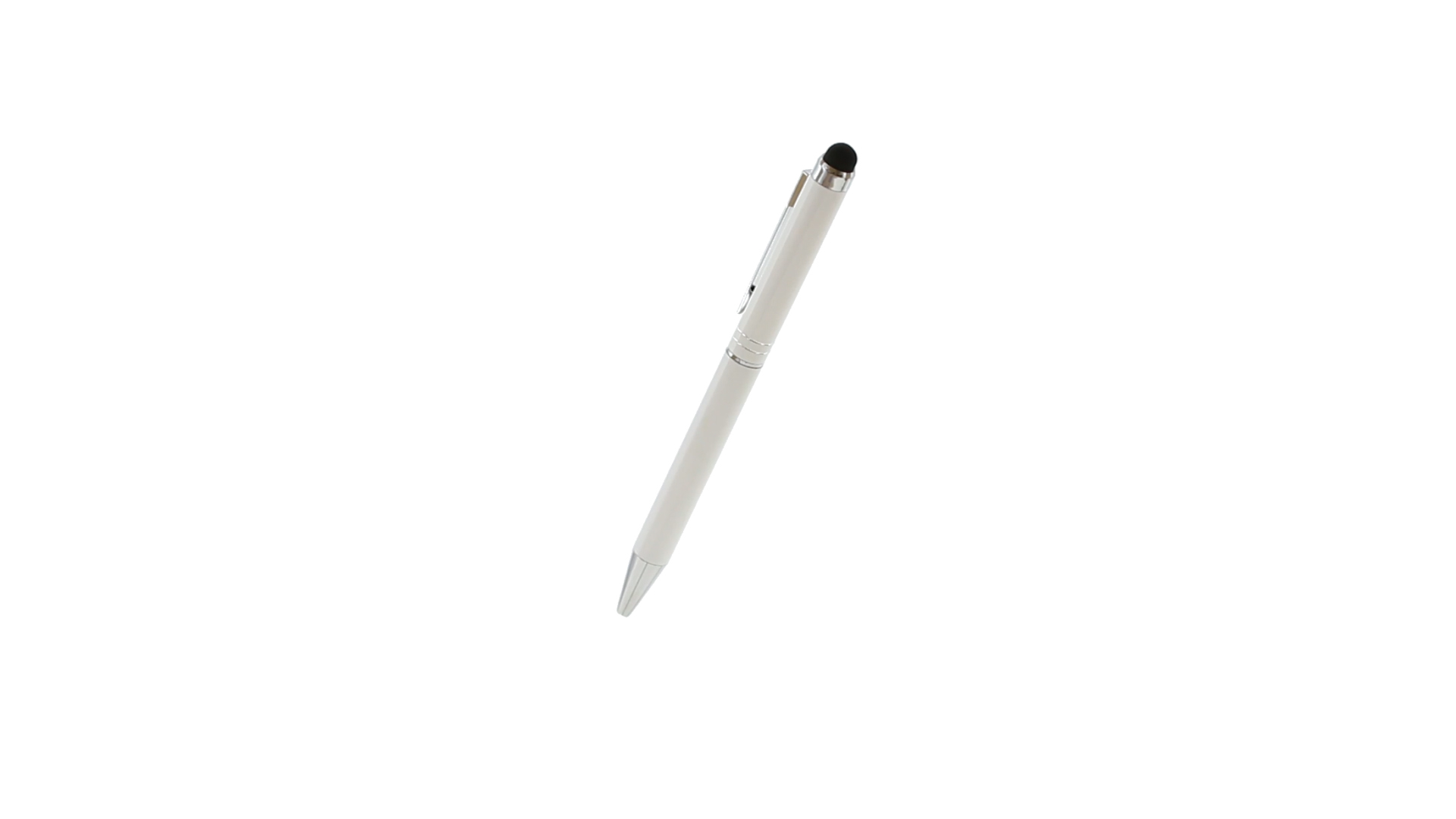 Dreh-Kugelschreiber mit Aluminiumgehäuse in weicher Metallic-Ausführung in verschiedenen Farben. Kontrastdetails und Ringe in Silber. Blaue Tinte.
